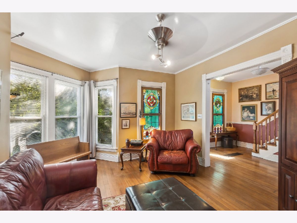 The moment you see this home, you will know you have arrived somewhere very special. This fabulous Victorian farmhouse is one of Old Irving Park's original homes built c. 1872 as a peony farm. Set on an oversized 50 foot wide corner lot, this home features stunning architectural details. Offset bay windows on both floors are crowned by a 20 foot spire. All original moulding is still intact and in excellent condition framing full height windows in every room. First floor features 10 foot ceilings, a gracious foyer/ gallery, double parlor living room and separate dining room, beautiful and spacious renovated kitchen, and stunning front and side porches. Second floor features 3 enormous bedrooms plus potential 4th bedroom or cozy nursery, a separate den/ library and a true Victorian sleeping porch. Handsomely patinated original hardwood floors throughout and front and back double staircases. Full clear span attic (28 x 43) currently used as storage with 15' ceilings at its peak is accessed by its own staircase. Wrap around yard space with romantic gardens and large entertaining space blend together seamlessly creating the perfect outdoor oasis. This house is the perfect package- Visit and fall in love!