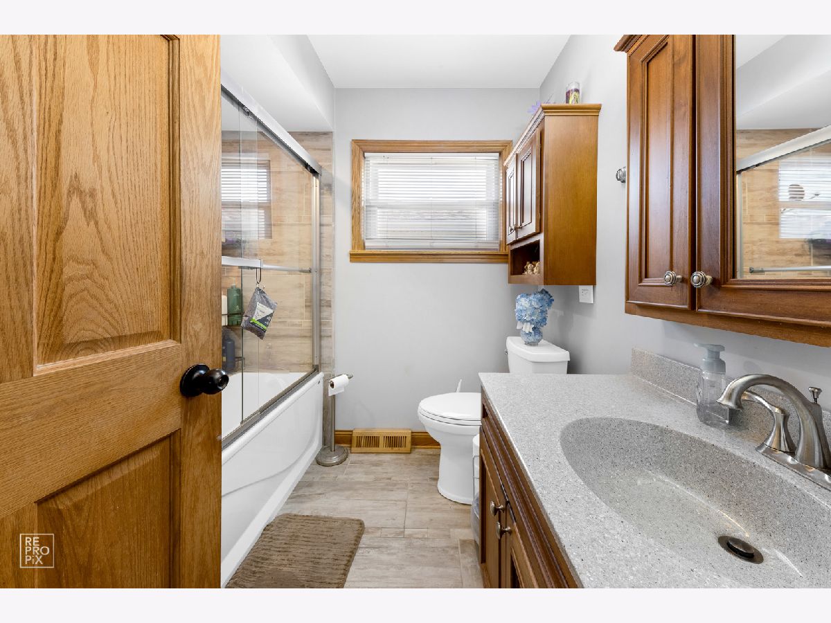 Very nice solid brick home with full basement. Most of the big ticket items have been done. Large kitchen remodeled in 2019 complete with all new cabinetry, quartz countertops, porcelain tile floor. All stainless steel appliances. Both bathrooms remodeled in 2019 as well. All hardwood floors. All Excel windows. Full finished basement with a custom built in TV and aquarium. Plenty of space to entertain. Additional room in basement which can be used as an office or hobby room. Step outside and enjoy the nice size yard with a paver patio, concrete drive leading to the 2 car garage. Roof is 4 years old. Both furnace and A/C replaced in 2016. New installation in attic. Great home located in great area close to all amenities including Midway Airport, public transportation and area expressway.