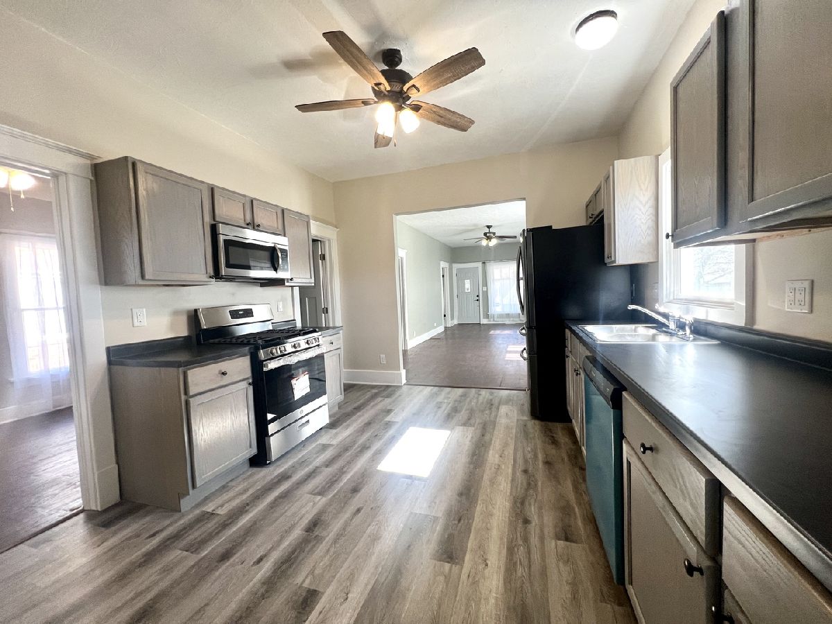 West Kankakee is waiting for you! Recently updated 3 bedroom home with great screened in porch and a huge detached garage/workshop. The spacious family room along with the bedrooms all have original hardwood flooring. This updated kitchen has all stainless appliances, including a cherished dishwasher, all new in 2023 except the refrigerator. The walk in pantry could also double as the perfect coffee bar. Additional updates include the bathroom with ceramic tile flooring, shower surround and cabinetry. New light fixtures, ceiling fans, vinyl plank flooring, double hung windows, exterior doors/storm doors and screens. Newer Payne furnace recently installed. There is plenty of storage space or room to expand with a full unfinished basement. 2022- New AC, exterior paint, new roof, gutters and downspouts. Schedule your showing today!