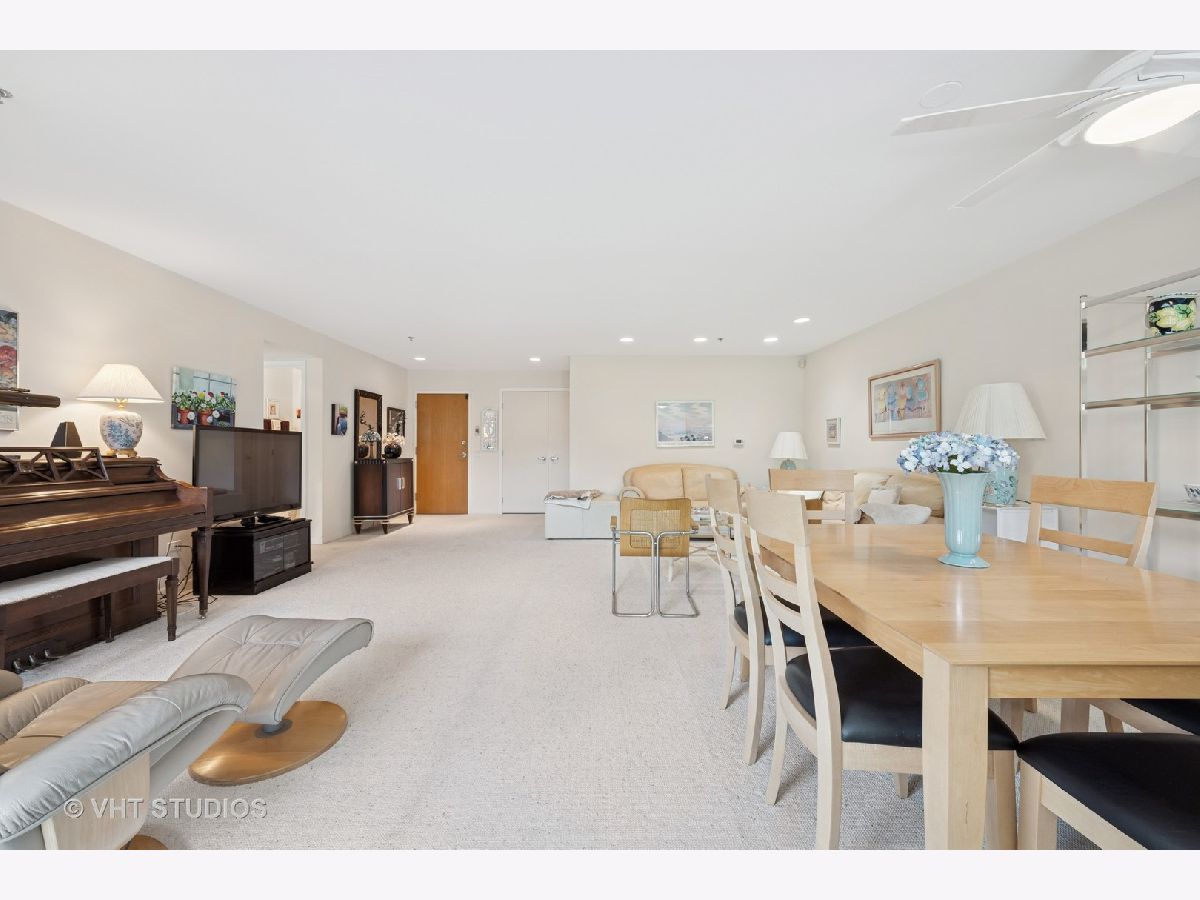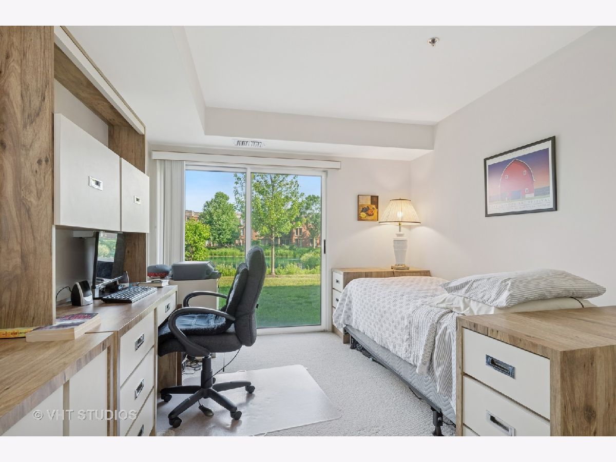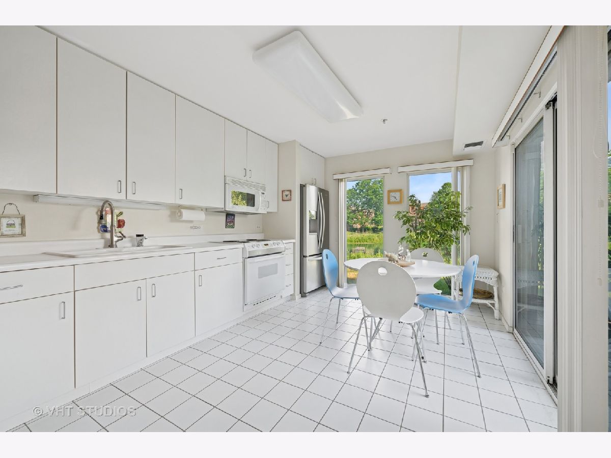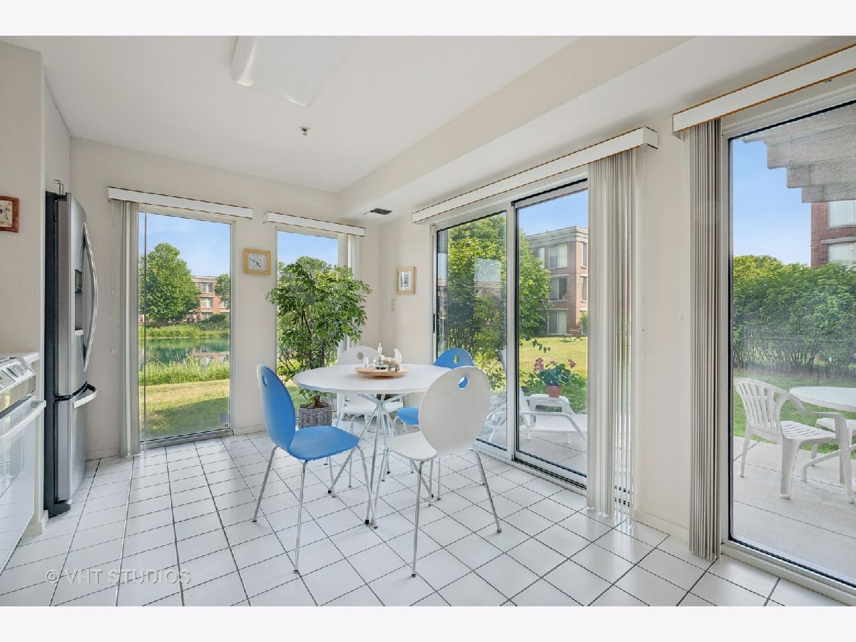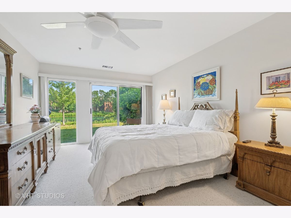 Rarely available, this spacious and bright 1,500 SF first floor unit with private patio. This condo has maximum light and breathtaking pond views, via floor-to-ceiling windows in all rooms. The open floor plan has a Southern exposure. Newer Furnace and AC unit. Huge kitchen with eating area, direct access to patio and open to the spacious great room encompassing both living and dining areas. Dining room expands to serve an entire family at holidays or simply a few. Comfortable living area has views to the kitchen and pond area while watching movies in the comfort of home. Guest bedroom often doubles as an office. Guest bathroom has shower. Main bedroom is grandly sized with pond views from the bed. Customized Walk-in closet is a special treat! Large en-suite bathroomhas jetted tub/shower, new double-sink custom vanity, brings extra storage and a linen closet is also included. Full-size, side-by-side washer and fryer are conveniently located in the utility closet next to the front hall coat closet. Two indoor garage spaces plus 180 sq ft of private storage space in front of the car space. This is one of Coromandel's largest two bedroom floor plans. If you are new to Coromandel, know that the amenity list is long and centered near the clubhouse: indoor pool, outdoor pool, workout room, party/card room, tennis courts, play grounds, and walking paths throughout the lush landscaping. Management office is open 5 days a week in the clubhouse. Easy access to downtown Deerfield, Metra, Pace, Deerfield Senior Center, shops, restaurants and the best group of people you will ever meet.