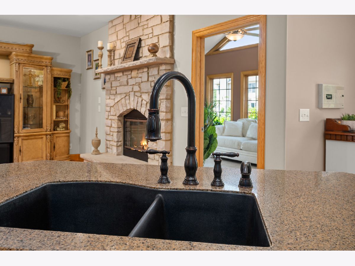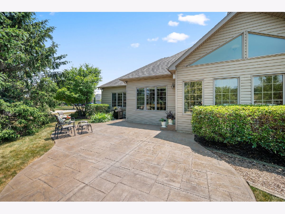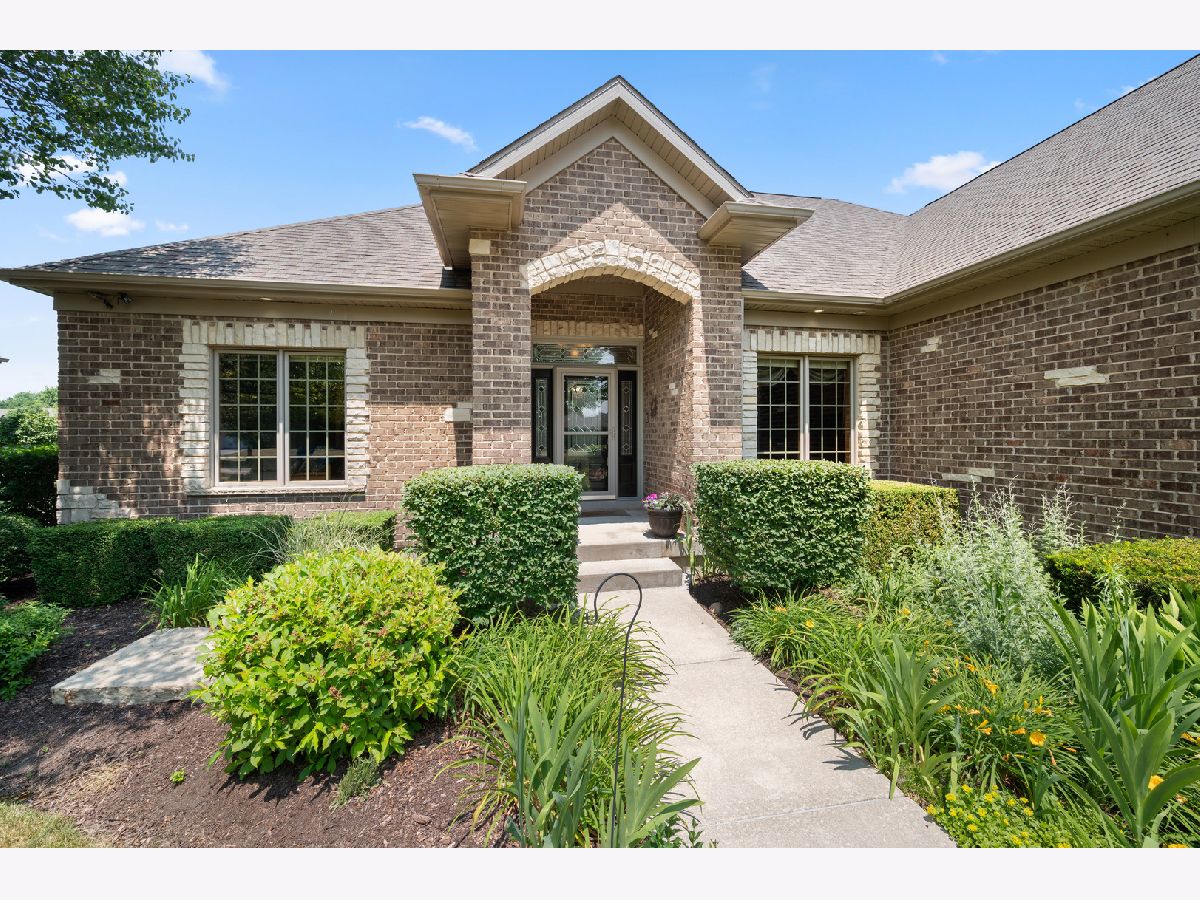 This one owner 5-bedroom and 3 1/2 bath gem is LUXURIOUS INSIDE & OUT! Abundant landscaping, stone outcroppings, stamped concrete patio, established garden, stone fire pit, gas line for grilling and gorgeous mature trees, embrace this true 2x6 framed custom home nestled on a 1/3 acre corner lot. A grand arched brick and stone covered porch welcomes you into this pristine Bridges of Rivermist ranch offering a total of 5,181 finished sq. ft.! Leaded and beveled glass entry door, side lights and transom window open into the sun-filled foyer area displaying illuminated ledges, 11' ceiling and elegant chandelier. The Dining Room showcases 9' tray ceiling and oiled bronze light fixture. A favorite gathering room is the Living Room presenting a stunning floor-to-ceiling gas log lit stone fireplace with stone mantle and hearth. The chef's delight kitchen features eye-catching granite composite countertops, tile backsplash, glass front Schrock cabinetry, under cabinetry lighting, dovetail drawers, high-end stainless-steel appliances, planning desk, breakfast bar and a 6'x4' walk-in pantry! A powder room is nearby boasting a beautiful glass vessel bowl, granite vanity top, tiered wall shelving and a silver decorative oval mirror. The Primary Bedroom hosts viewing windows of the backyard retreat, 10' tray ceiling and 14'x7' walk-in closet. Tile surround walk-in separate shower, whirlpool tub, 2-sinks and a built-in linen cabinet complete this spa-like private bath. Other main level bedrooms share a connected full bath with pocket doors, ceramic tiled flooring, tub-shower, and 2-sinks. The full glass atrium door opens into the lovely Sunroom introducing striking transom windows and vaulted ceiling. A Windsor atrium door leads you to the curved stamped concrete patio... enjoy outdoor living at its finest! Gleaming hardwood flooring, 5 1/4" baseboards, 9' and higher ceilings, Windsor wood casement windows, solid paneled doors and rich earth tone interior color schemes complete the heart of this home. The laundry suite conveniently offers a basin sink, oversized closet, large washer and dryer, Schrock cabinetry and tile flooring. Wait there is more! The custom finished basement comes equipped with a fully applianced 2nd kitchen including more granite countertops, table space and wall sconces. The wet-bar is furnished with a wine cooler, mini-frig, wine rack, granite countertops and attractive slate tile flooring. This lower level is an entertainer's dream and a big surprise! The entire lower level is outfitted with sound proofing insulation to maximize the two surround sound systems. Built-in speakers within stone accent wall, illuminated display shelving and entertainment unit, wall sconces and an abundance of recessed lighting add ambiance, comfort, and beauty. There is a shop area, office, 4th and 5th bedroom, theater/game/craft room, 2nd walk-in pantry and an upscale 4th bathroom featuring ornate glass vessel bowl, walk-in custom Travertine tiled shower with niches, Herringbone porcelain tile flooring, Kohler toilet and espresso furniture-look vanity with granite top! This finished lower level is also configured to accommodate multi-generational living, including an in-law suite! Brick exterior with stone detail, concrete driveway, outdoor speakers, stamped concrete patio (new in 2021), evergreens, mature trees, outcroppings, and professional landscaping create a magical outdoor sanctuary! The 3-car garage is heated and there is a bonus generator transfer switch with outdoor remote connectivity. In 2022, the owners installed a new Bryant central air conditioner and furnace, humidifier and Ecobee wi-fi thermostat. This is an opportunity to LOVE your CUSTOM HOME and its CUSTOM COMMUNITY!