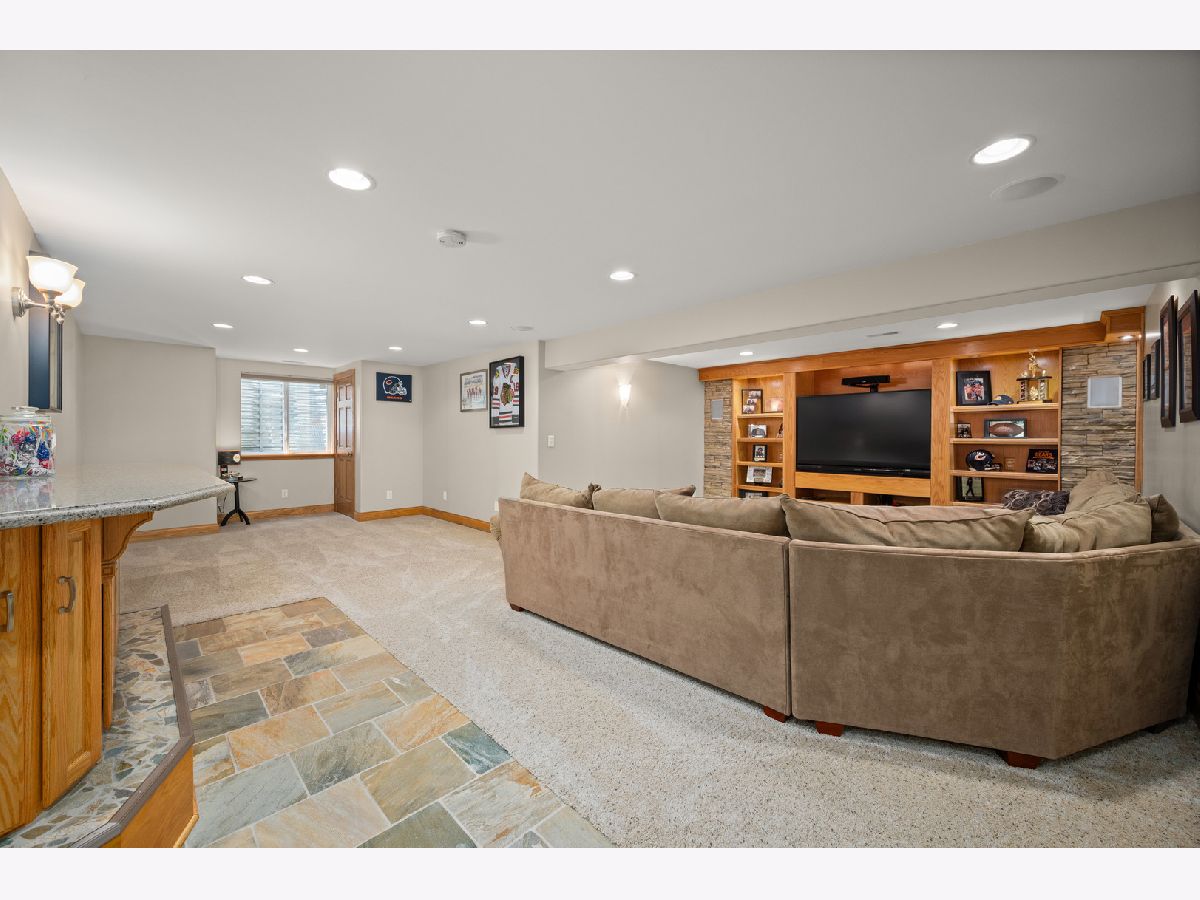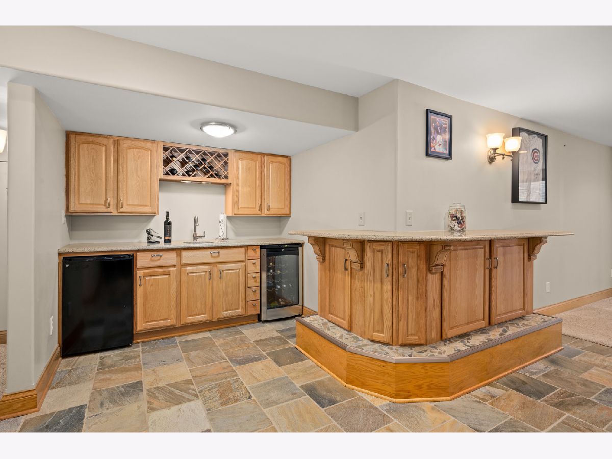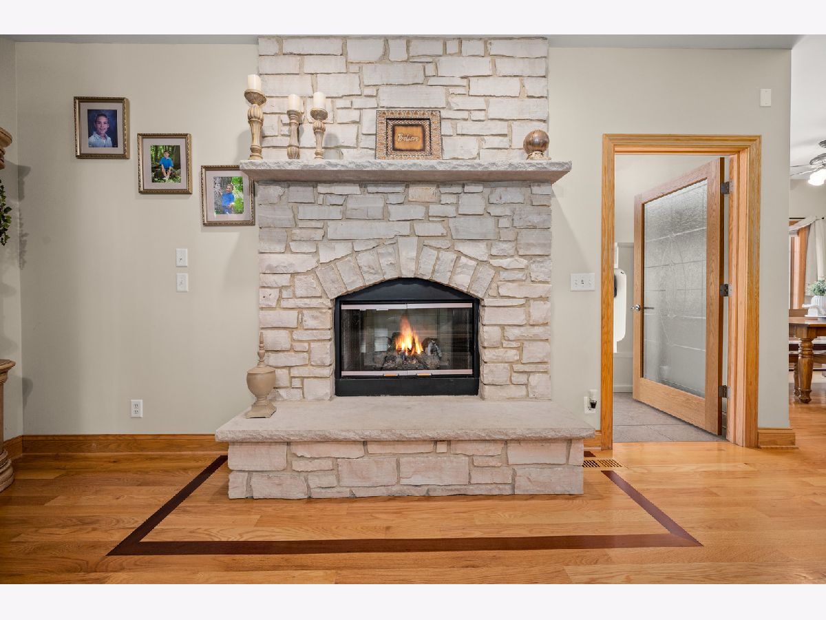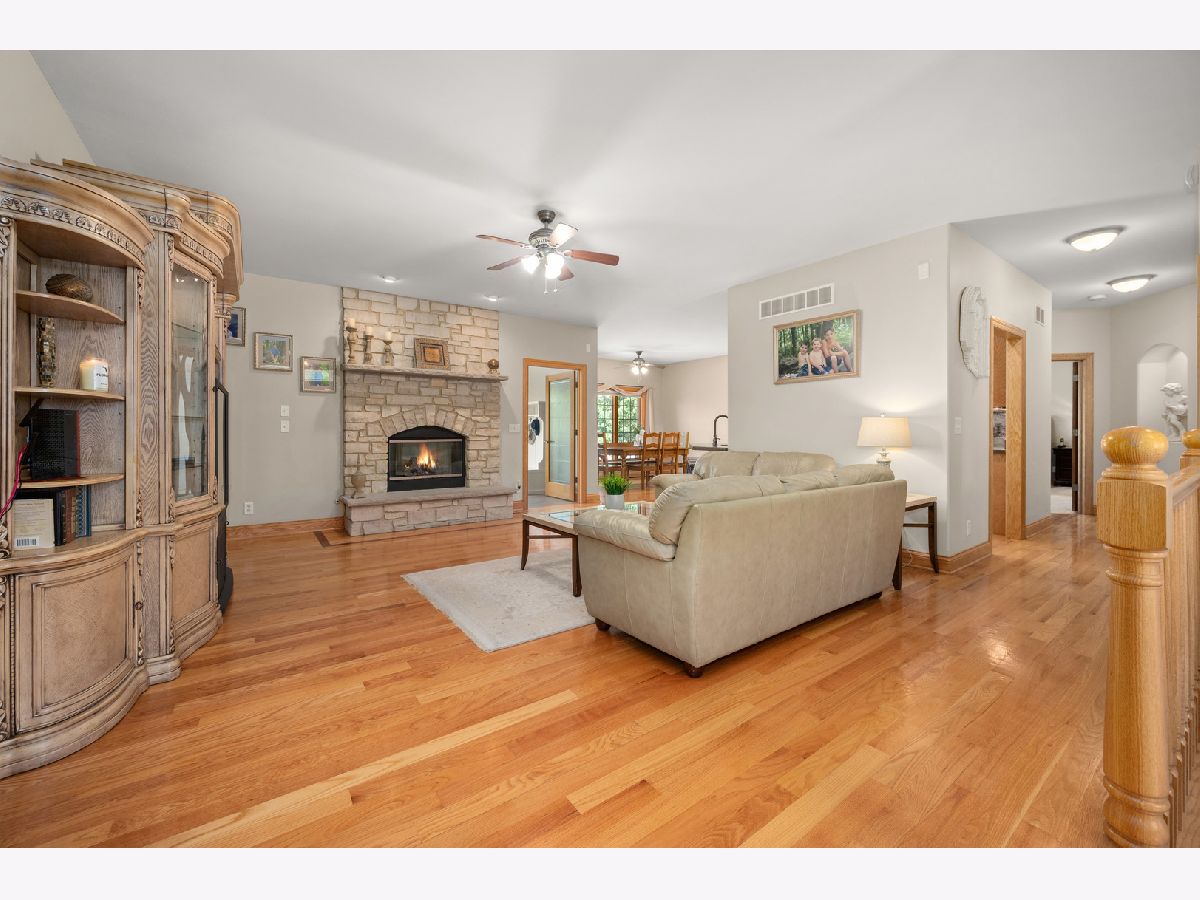 This one owner 5-bedroom and 3 1/2 bath gem is LUXURIOUS INSIDE & OUT! Abundant landscaping, stone outcroppings, stamped concrete patio, established garden, stone fire pit, gas line for grilling and gorgeous mature trees, embrace this true 2x6 framed custom home nestled on a 1/3 acre corner lot. A grand arched brick and stone covered porch welcomes you into this pristine Bridges of Rivermist ranch offering a total of 5,181 finished sq. ft.! Leaded and beveled glass entry door, side lights and transom window open into the sun-filled foyer area displaying illuminated ledges, 11' ceiling and elegant chandelier. The Dining Room showcases 9' tray ceiling and oiled bronze light fixture. A favorite gathering room is the Living Room presenting a stunning floor-to-ceiling gas log lit stone fireplace with stone mantle and hearth. The chef's delight kitchen features eye-catching granite composite countertops, tile backsplash, glass front Schrock cabinetry, under cabinetry lighting, dovetail drawers, high-end stainless-steel appliances, planning desk, breakfast bar and a 6'x4' walk-in pantry! A powder room is nearby boasting a beautiful glass vessel bowl, granite vanity top, tiered wall shelving and a silver decorative oval mirror. The Primary Bedroom hosts viewing windows of the backyard retreat, 10' tray ceiling and 14'x7' walk-in closet. Tile surround walk-in separate shower, whirlpool tub, 2-sinks and a built-in linen cabinet complete this spa-like private bath. Other main level bedrooms share a connected full bath with pocket doors, ceramic tiled flooring, tub-shower, and 2-sinks. The full glass atrium door opens into the lovely Sunroom introducing striking transom windows and vaulted ceiling. A Windsor atrium door leads you to the curved stamped concrete patio... enjoy outdoor living at its finest! Gleaming hardwood flooring, 5 1/4" baseboards, 9' and higher ceilings, Windsor wood casement windows, solid paneled doors and rich earth tone interior color schemes complete the heart of this home. The laundry suite conveniently offers a basin sink, oversized closet, large washer and dryer, Schrock cabinetry and tile flooring. Wait there is more! The custom finished basement comes equipped with a fully applianced 2nd kitchen including more granite countertops, table space and wall sconces. The wet-bar is furnished with a wine cooler, mini-frig, wine rack, granite countertops and attractive slate tile flooring. This lower level is an entertainer's dream and a big surprise! The entire lower level is outfitted with sound proofing insulation to maximize the two surround sound systems. Built-in speakers within stone accent wall, illuminated display shelving and entertainment unit, wall sconces and an abundance of recessed lighting add ambiance, comfort, and beauty. There is a shop area, office, 4th and 5th bedroom, theater/game/craft room, 2nd walk-in pantry and an upscale 4th bathroom featuring ornate glass vessel bowl, walk-in custom Travertine tiled shower with niches, Herringbone porcelain tile flooring, Kohler toilet and espresso furniture-look vanity with granite top! This finished lower level is also configured to accommodate multi-generational living, including an in-law suite! Brick exterior with stone detail, concrete driveway, outdoor speakers, stamped concrete patio (new in 2021), evergreens, mature trees, outcroppings, and professional landscaping create a magical outdoor sanctuary! The 3-car garage is heated and there is a bonus generator transfer switch with outdoor remote connectivity. In 2022, the owners installed a new Bryant central air conditioner and furnace, humidifier and Ecobee wi-fi thermostat. This is an opportunity to LOVE your CUSTOM HOME and its CUSTOM COMMUNITY!