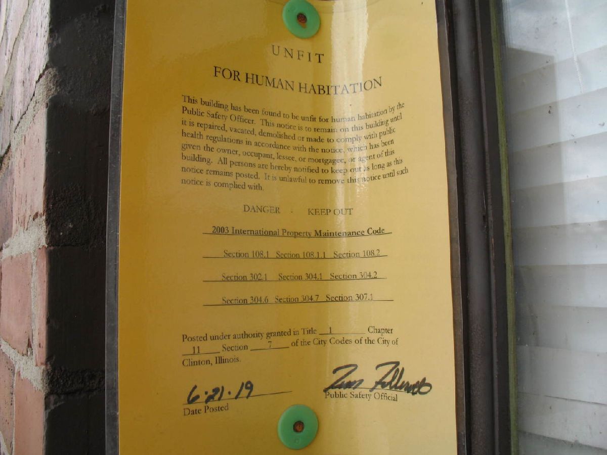 This building was a Pizza business years ago. It has since been converted into apartments. Now the building is UNFIT FOR HUMAN HABITATION per City Codes of the City of Clinton, Illinois. The letter from the City is in the Documents Section of the listing. Therefore there will not be given any "ACCESS TO THE PROPERTY FOR ANY REASON DUE TO HEALTH AND SAFETY REASONS". Additional Parcel# 07-34-229-003.