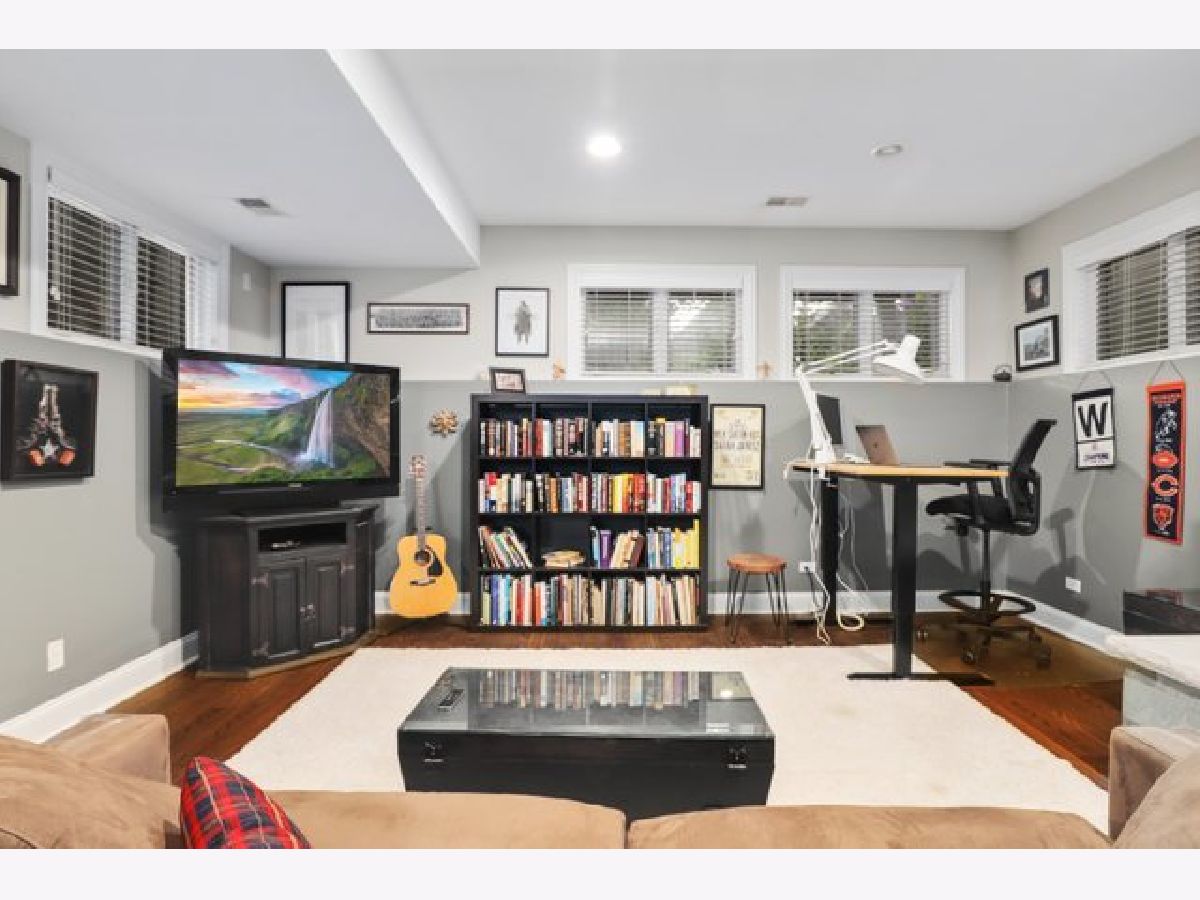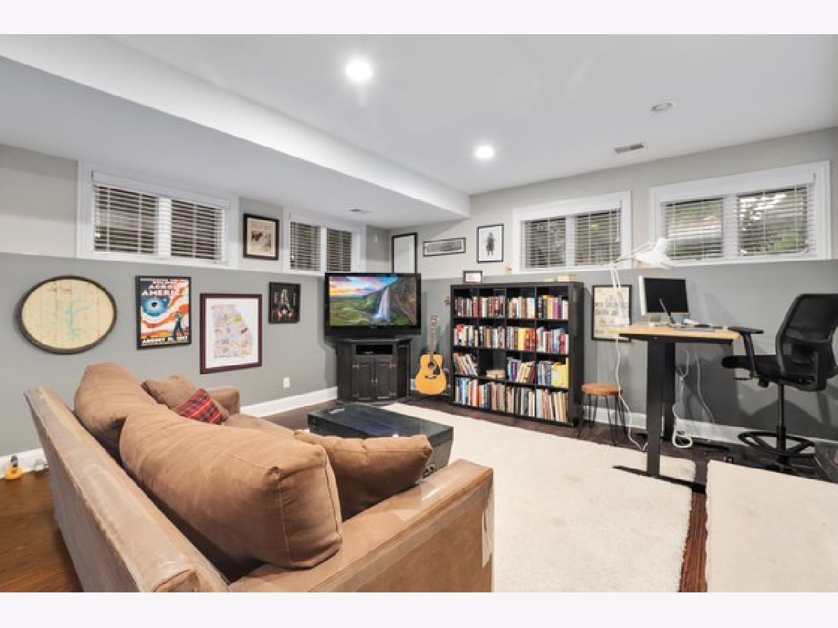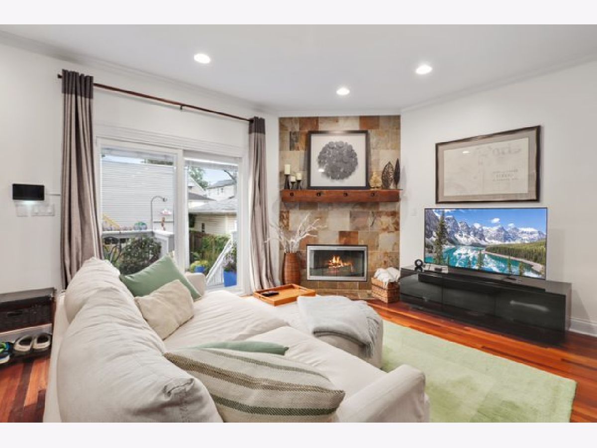 Sunny and spacious 4 bedroom, 3.5 bath home sits on quiet street in popular Irving Park. The professionally landscaped gated front lawn leads to a welcoming front porch. The main floor features an open floor plan with hardwood floors throughout, a living/dining room with a cozy gas lit fireplace and a half bath. Updated kitchen with quartzite counter tops, quartz topped center island, ceramic subway tile backsplash, stainless steel appliances and an attached family room with second gas lit fireplace. The top floor has hardwood floors throughout, primary en suite with newly renovated primary bath, two spacious bedrooms and a second bath. The lower level has soaring 9 foot ceilings, an expansive recreation room with a third fireplace that is wood burning, new carpet and vinyl plank flooring plus an full bath, bedroom, storage and side by side laundry. Back deck with room for dining set and grill leads to a manicured gated back yard plus a detached 2 car garage with newly constructed stairs and roof deck. HVAC replaced in 2017. Blocks to retail and dining, quick access to 90/94.