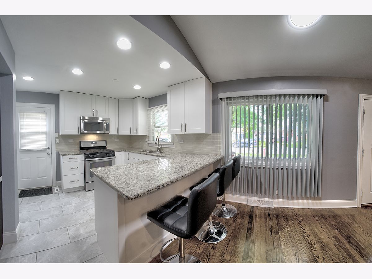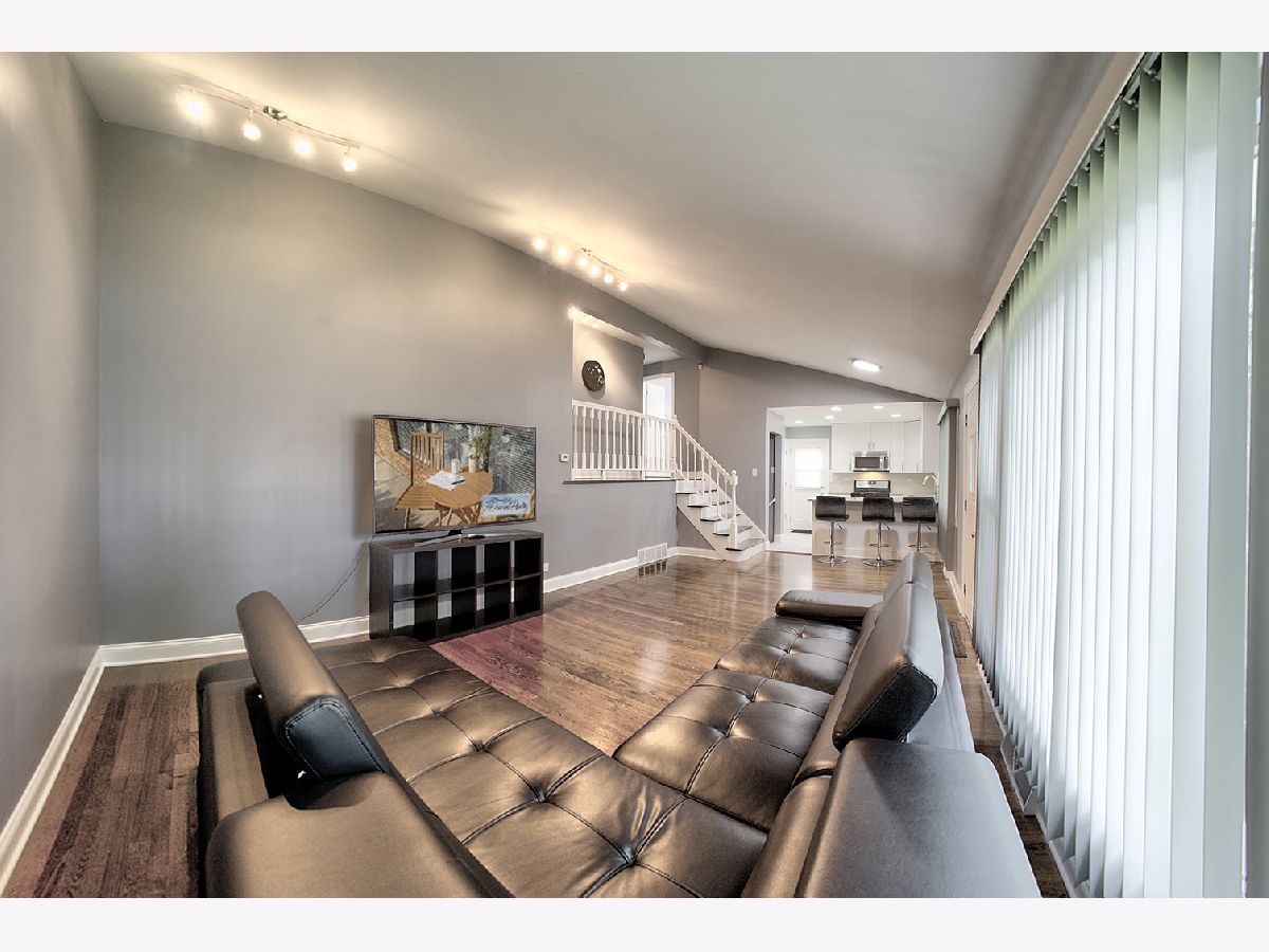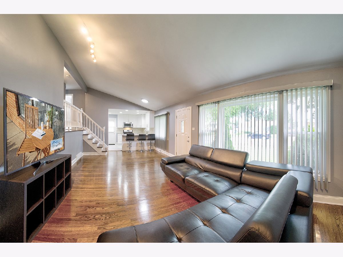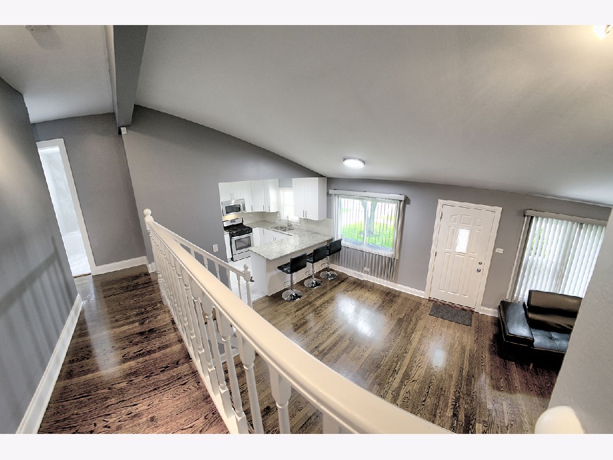 This beautifully upgraded home features an open floor plan with real oak hardwood floors, a kitchen equipped with granite countertops, stainless steel appliances, and a breakfast bar. Tall ceilings enhance the spacious feel, while the finished basement provides versatile living space. The newly updateed bathroom includes a marble vanity top, adding a touch of luxury. Outside, enjoy a large backyard and a 2.5 car garage. Located just minutes from the 294 Expressway, this home combines convenience with comfort.