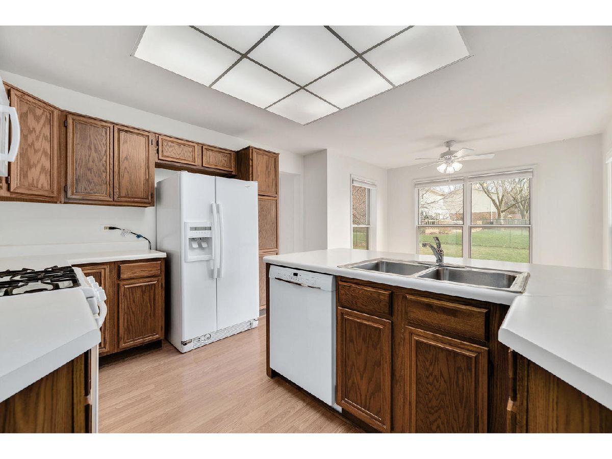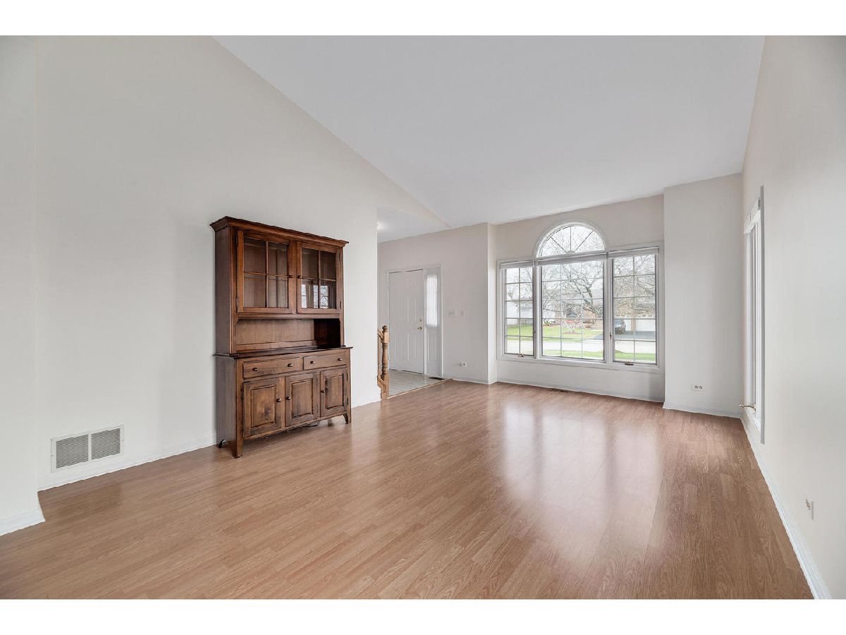 Exciting value and so much room in this lovely Arbor Ridge home. What a welcoming entry from the spacious entryway perfect for those grand greetings and Midwestern goodbyes. Enjoy the oversized and vaulted living room with palladium window open to the dining room - both with gleaming laminate flooring. The abundance of cabinets and counters plus breakfast bar in kitchen overlooks the bright eating area. You will love the inviting family room ideal for cuddling in front of the showcase brick fireplace (never used). The double glass doors to the great size fenced back yard creates such a lovely back drop to the room. Retreat upstairs to the large master with walk in closet and private spa bath with garden tub; separate shower and double sink vanity or to the three additional bedrooms plus full bath. Don't miss the first floor den with bay window, full basement, first floor laundry/mudroom to the "must have" THREE car garage, six panel doors, white trim, newer carpeting and recently painted. The neighborhood park is right down the street with so much greenery, baseball field and tennis court. Close to train, downtown, I355, I88, shopping and all. This home is super clean, bright and waiting for you!