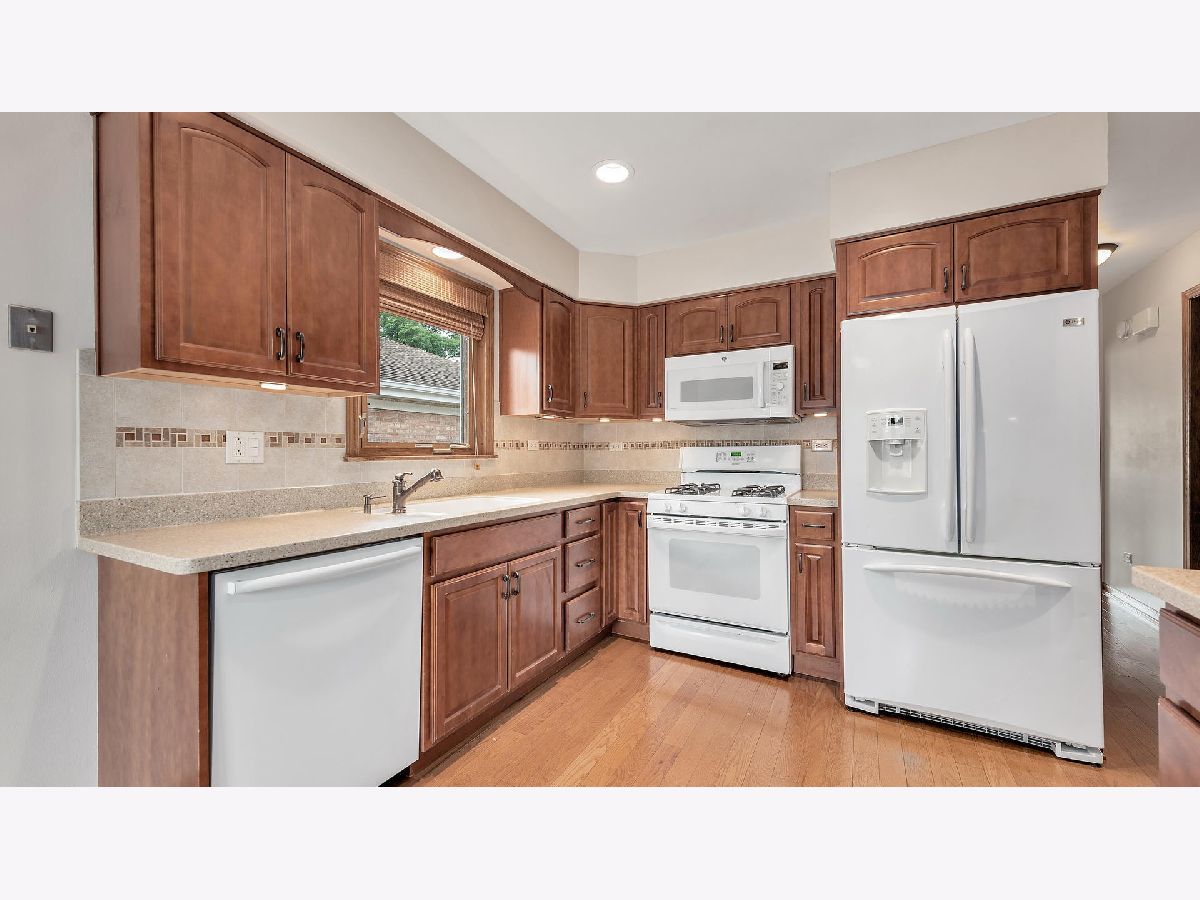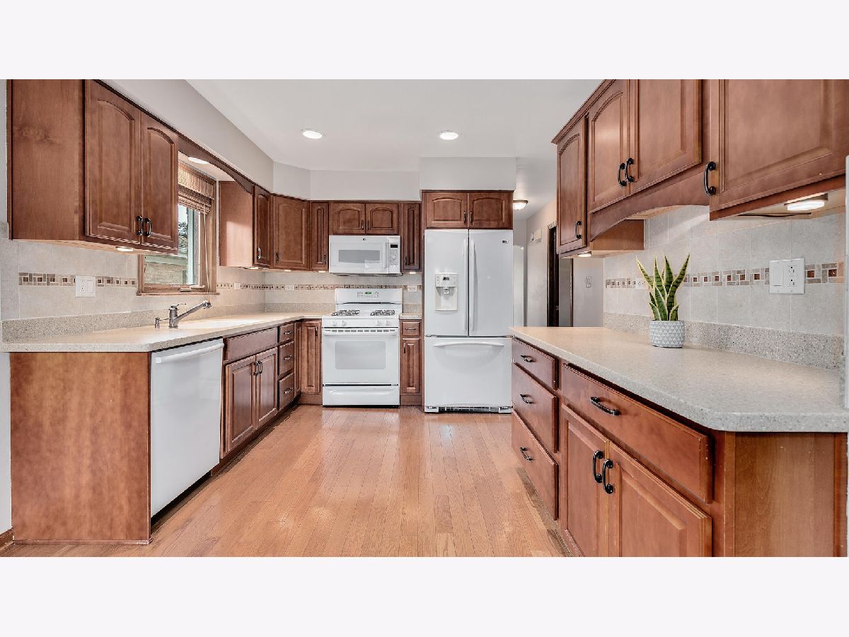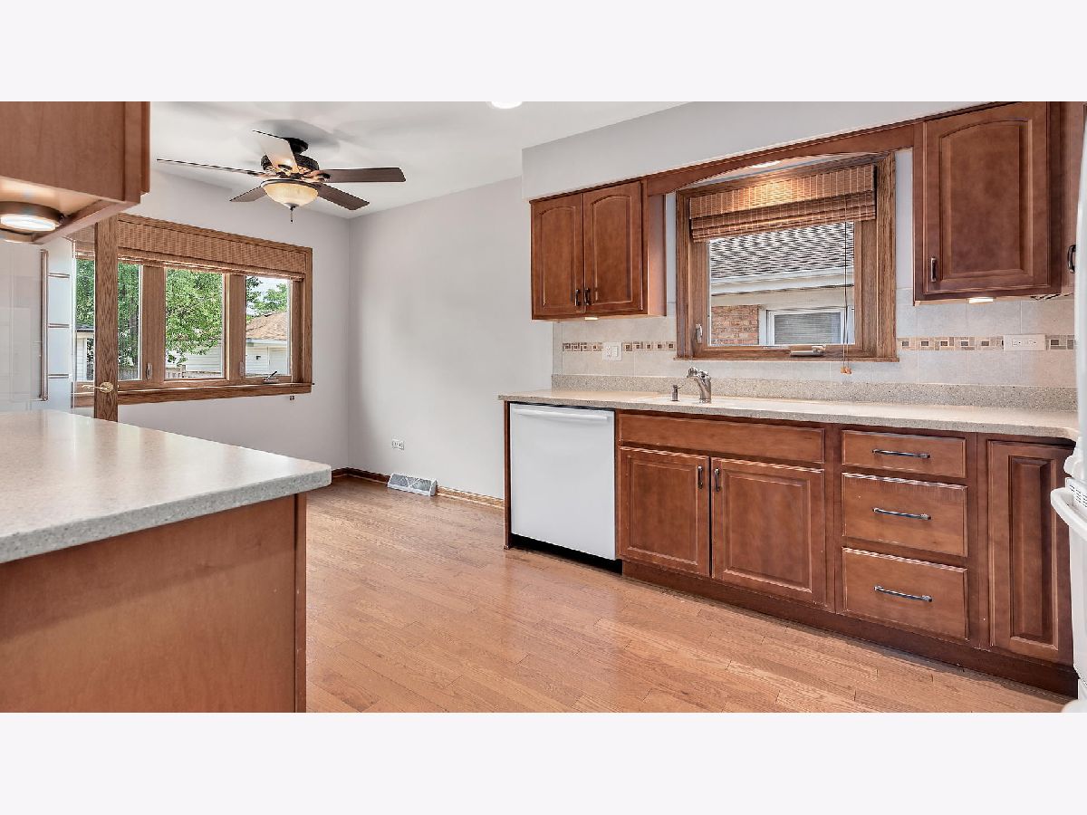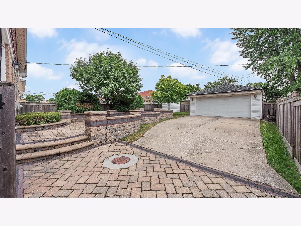 Welcome to this updated home. The gorgeous eat-in kitchen has plenty of cherry cabinets, under cabinet lighting, ceramic tile backsplash with glass tile inlay, hardwood floors, Corian counter tops, a pantry close, a deep sink, and newer appliances. Spend your evenings on the beautiful, custom, brick-paver patio with built in firepit, ample place for outdoor seating, and space for a large grill for those back yard BBQ's! Spacious living room with huge picture window! 3 bedrooms - 2 with ceiling fans. 1 bedroom with built-in cabinetry. Updated bathroom with ceramic tile, antique cabinetry, granite vanity & beautiful tiled shower surround with glass tile inlay. Finished basement includes family room (wired for sound, recessed lighting, Under crown molding lighting, and TONS storage closets) den (ceramic flooring), home office (with wood laminate flooring), full bathroom (with ceramic tile shower surround, and furniture vanity), and laundry area with a sink and beautiful cabinets for storage! 2 car detached garage!