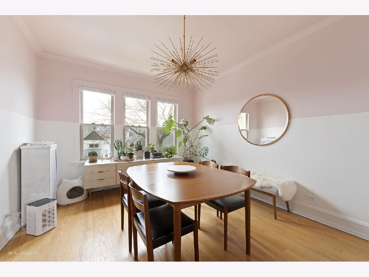 Welcome to your new forever home! Located between booming Lincoln Square and Albany Park, this cozy yet spacious condo is flooded with light and filled with charm. This unit is beautifully custom painted, with modern finishes and vintage charm. Large windows, updated light fixtures, hardwood floors and original crown molding throughout. You'll enjoy a large master bedroom with plenty of closet space. Bathroom recently updated. The living room boasts a large decorative fireplace with plenty of shelves for all your books and pictures and plenty of space to entertain your guests. Kitchen has a functional layout and newer appliances. Separate dining room located right off the kitchen. Much sought after in-unit Laundry. Assigned and ample storage space located in the basement. Common area bike room available as well. Close to public transportation, entertainment, restaurants, and Horner Park a short walk away.