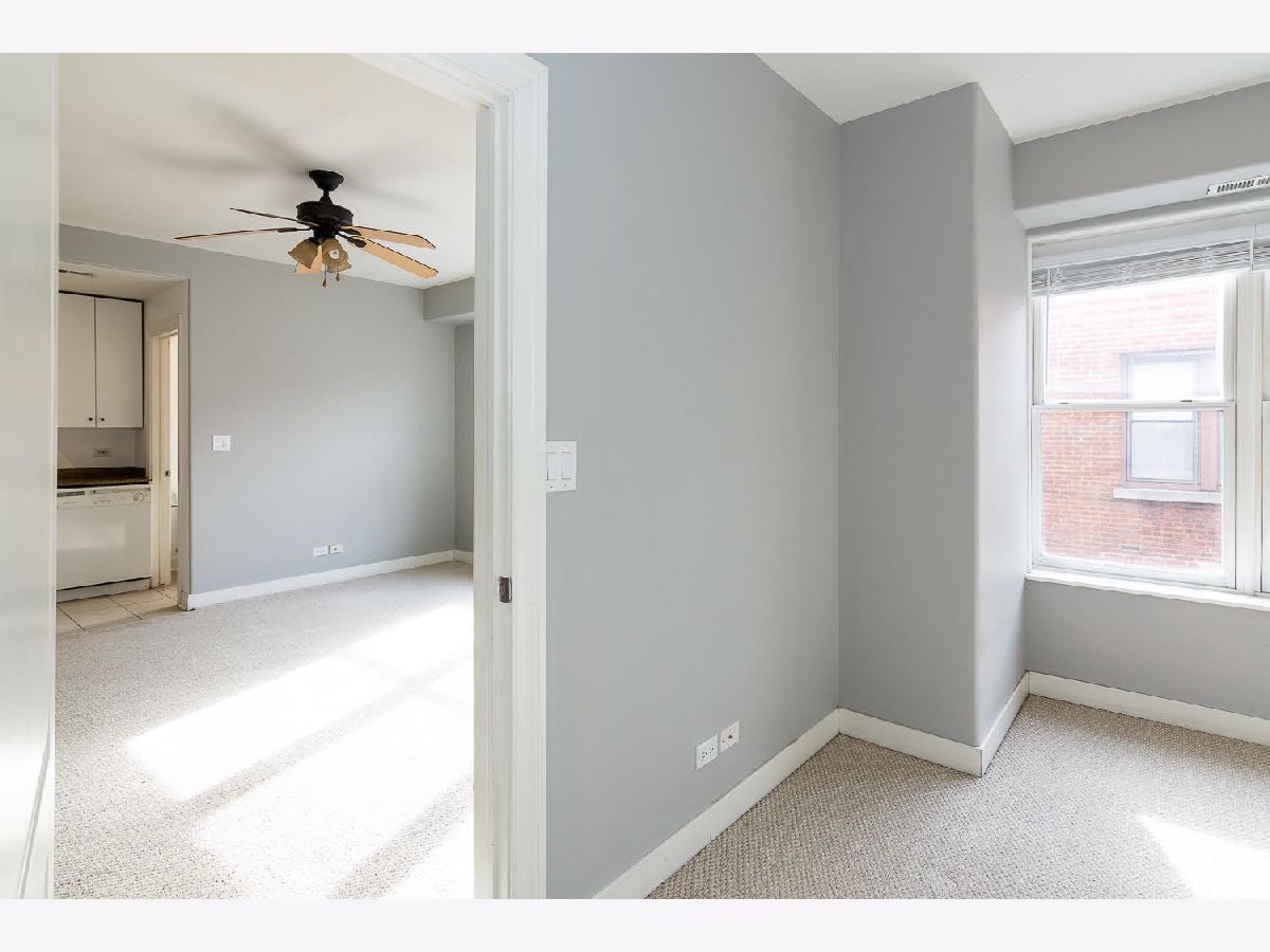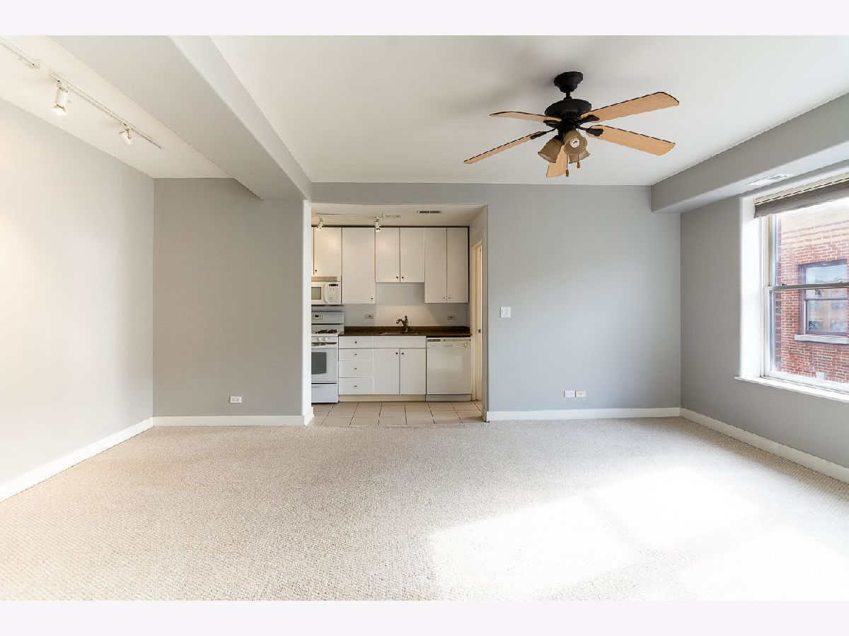 Heart of Old Irving! Cute and adorable top floor 1 bedroom condo facing courtyard, NOT on Irving Park. Kitchen w/granite counters, white appliances and cabinets, ceramic tile floor. Generous bedroom and living area, ceiling fan/lights, good closet space. Central air/forced air heat, individual control. Easy street parking Walk to Blue Line 'L' to get downtown or O'Hare. 1/2 block to Starbucks!