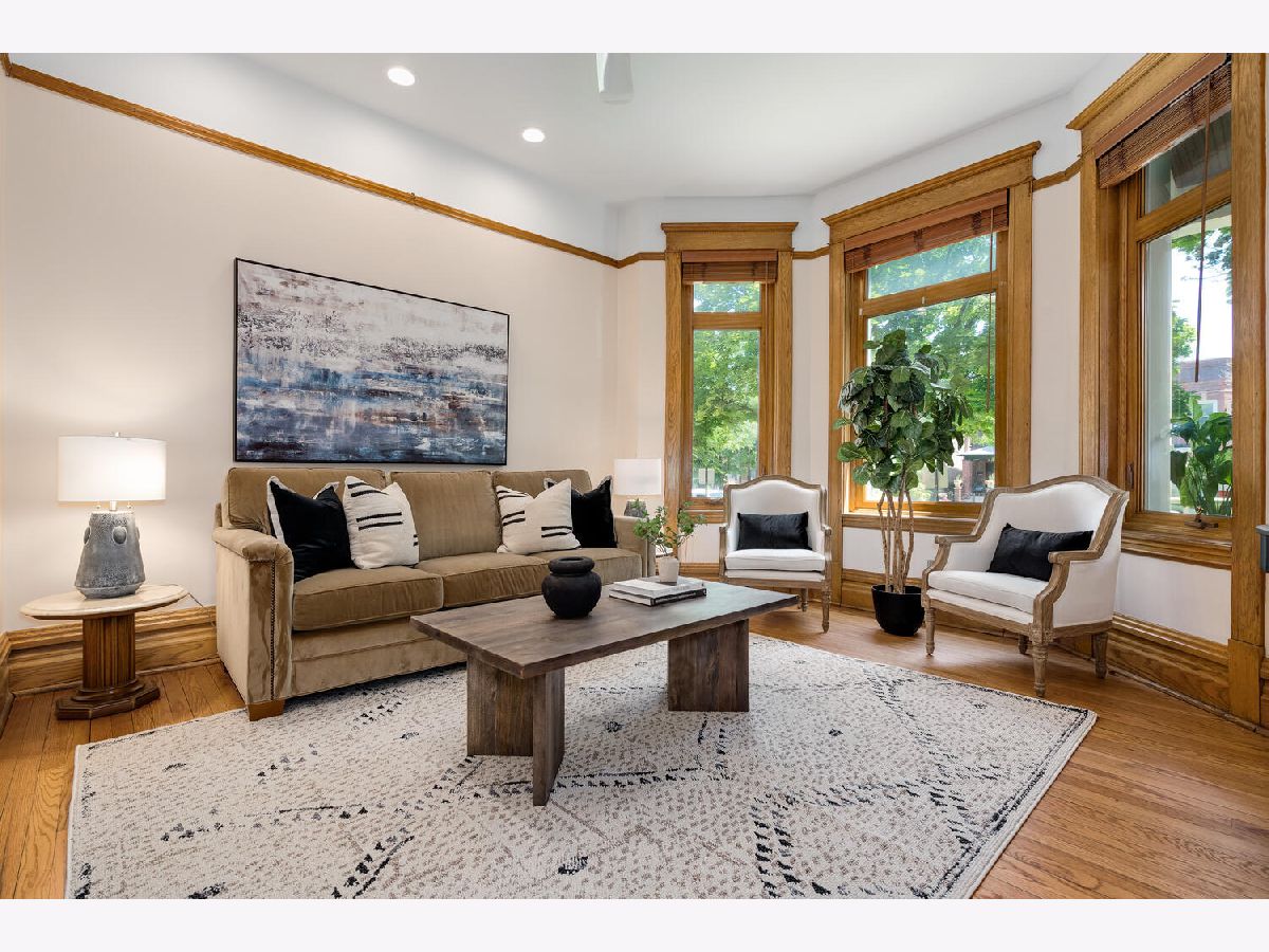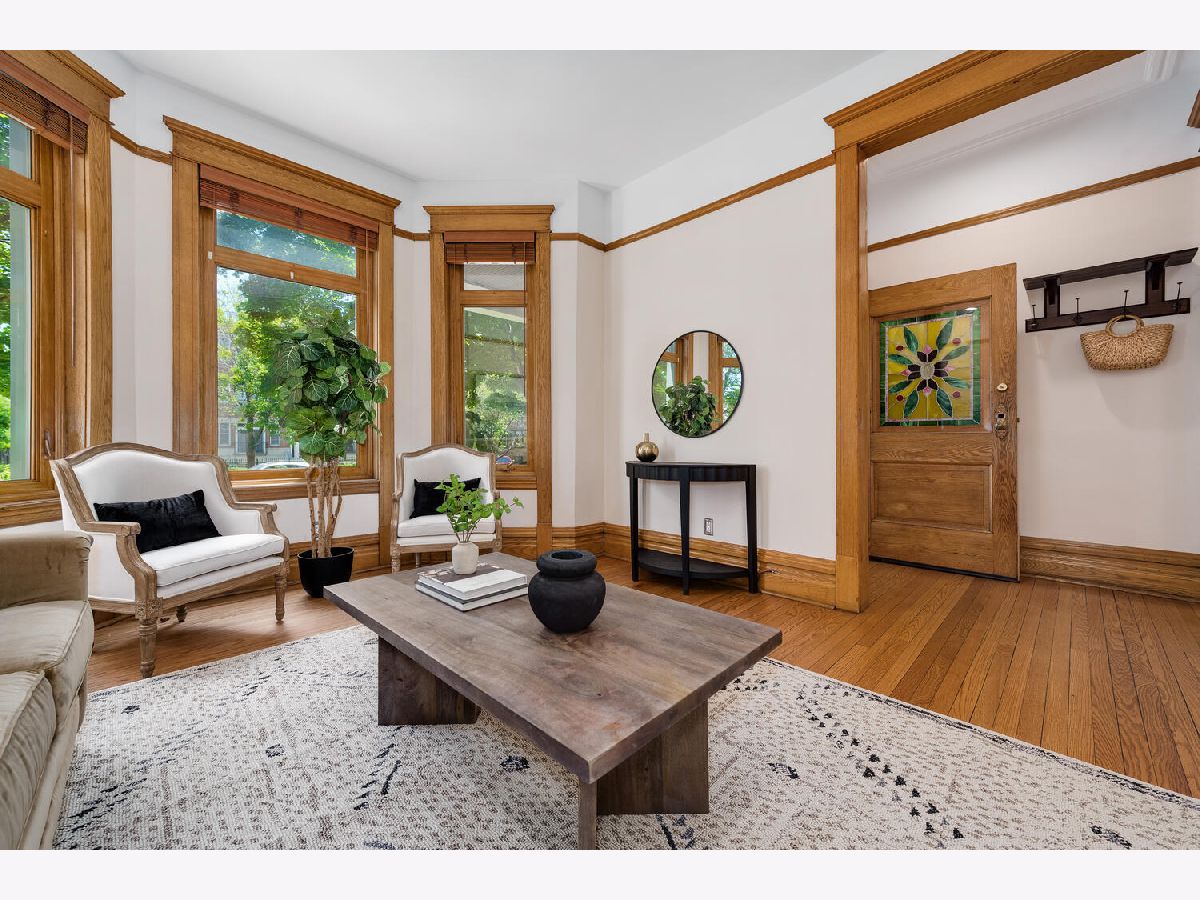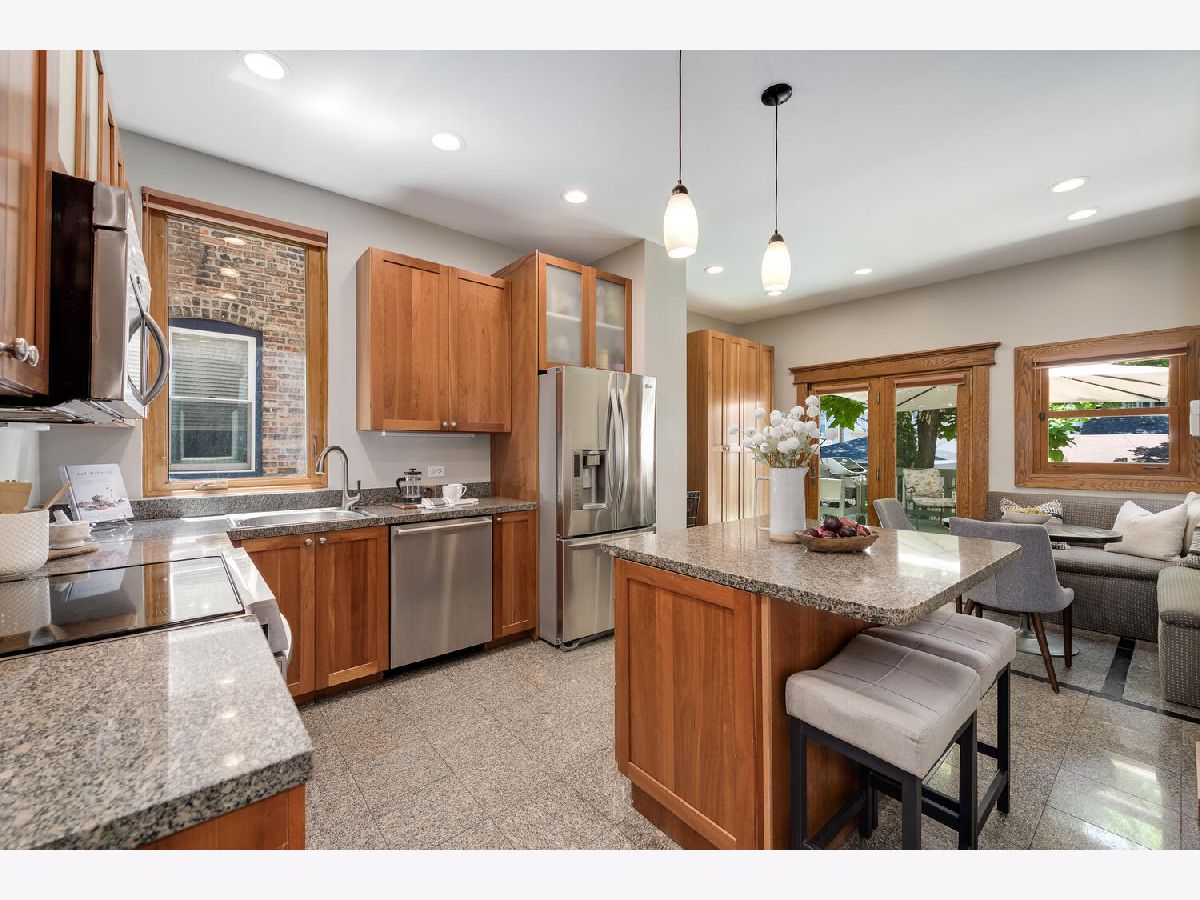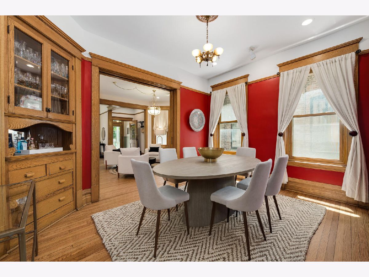 Discover Victorian charm along with modern amenities in this exquisitely renovated 4 bedroom, 3 bath single-family home in the heart of Ravenswood on an oversized 25x155 extra-long Chicago lot at the price of a condo. This elegant quiet residence boasts original woodwork throughout, including a grand staircase, an inviting living room with bay window, a center sitting room/parlor with a vintage fireplace, and an abundance of windows that exude natural light throughout the home. The large formal dining room features exquisite fully functioning pocket doors, and a built-in corner hutch enhancing its character. The spacious, updated eat-in kitchen is a culinary dream, equipped with granite countertops, an island with breakfast bar, all stainless-steel appliances including a new electric induction oven/stove, custom built-ins with a desk area and a corner banquette, and a pantry. The eating area of the kitchen opens to the huge deck and an oversized yard complete with a landscaped paver patio area, perfect for entertaining and relaxing. The main level is completed with a full bathroom, and a proper foyer with 2 doors to keep the weather out. The second floor you'll find 4 generously sized bedrooms including the primary bedroom with its own separate sitting/office area, a full bathroom with a soaking tub, and plenty of closets/storage space. The modern finished lower level is a highlight, featuring an amazing family/recreation room with exposed brick and timber, radiant heated floors, a luxurious newer spa bath which includes a deep tub and separate walk-in shower with rain feature, an organized walk-in closet, additional storage closets, and a spacious laundry room. Additional conveniences include a detached two-car garage and a prime location just a short distance to the Montrose EL, Metra, restaurants, shopping, and nightlife. Don't miss the opportunity to own this stunning Ravenswood home that seamlessly blends historic elegance with modern amenities.