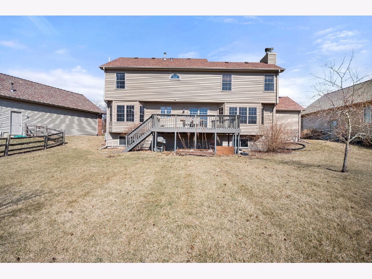 Welcome to 434 John Marshall Ln, a true showstopper nestled in the highly sought-after Heron Creek subdivision! This beautifully maintained 5-bedroom, 3.5-bathroom home spares no detail, offering an exceptional blend of style, comfort, and convenience. A charming covered front porch welcomes you into a spacious foyer, where rich hardwood floors (installed in 2020) extend throughout the home. The front living room-currently used as a home gym and office-flows seamlessly into the large formal dining room, where bay windows offer picturesque views of the expansive backyard. The upgraded kitchen features stainless steel appliances (including a new refrigerator and dishwasher), quartz countertops, sleek grey subway tile backsplash, matte black hardware, and a modern faucet. The adjoining eat-in area leads to a large, newly refinished deck (2024), overlooking the sun-drenched backyard-perfect for a garden or entertaining family and friends. The open-concept family room showcases additional bay windows, a gorgeous marble-front woodburning fireplace with a gas igniter, and a custom floating entertainment center with a shiplap accent wall and sconces. Convenient access to the heated three-car garage makes bringing in groceries a breeze. As you head upstairs, you'll pass the stylishly updated half-bath (2021), featuring elegant marble flooring that echoes the family room fireplace. The second floor is highlighted by the luxurious primary suite, complete with a vaulted ceiling, accent wall, and en-suite bathroom. This spa-like retreat boasts double sinks, a makeup vanity, a whirlpool tub, a separate shower, and a spacious walk-in closet. Recent updates include epoxy countertops, trendy brass hardware, and updated lighting and faucets. The space-grey washer and dryer (2022) are conveniently located in the upper hallway, leading to a full bathroom and three additional bedrooms, each with unique touches like wood-trimmed accent walls and floral wallpaper, plus generous closet space. The partially finished basement offers even more living space, featuring a bedroom with a closet and egress window, a newly updated full bathroom (2024), and a large rec area ready for an additional woodburning fireplace. Ample windows bring in natural light from the backyard. The utility rooms provide extra storage and house mechanicals, including the furnace, water heater, Culligan reverse osmosis and water softener (2020), sump pump, and radon mitigation system. Additional exterior upgrades (2020) include a new roof, siding, gutters, downspouts, and garage doors. Ideally situated within walking distance to parks, restaurants, Jewel Osco, downtown Sycamore, and both the elementary and middle schools-while backing up to an open field-this home offers the perfect blend of accessibility and privacy. Schedule your showing today and envision yourself calling this incredible property "home"!