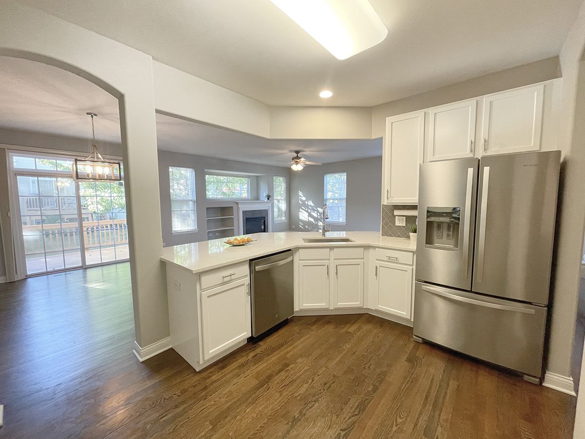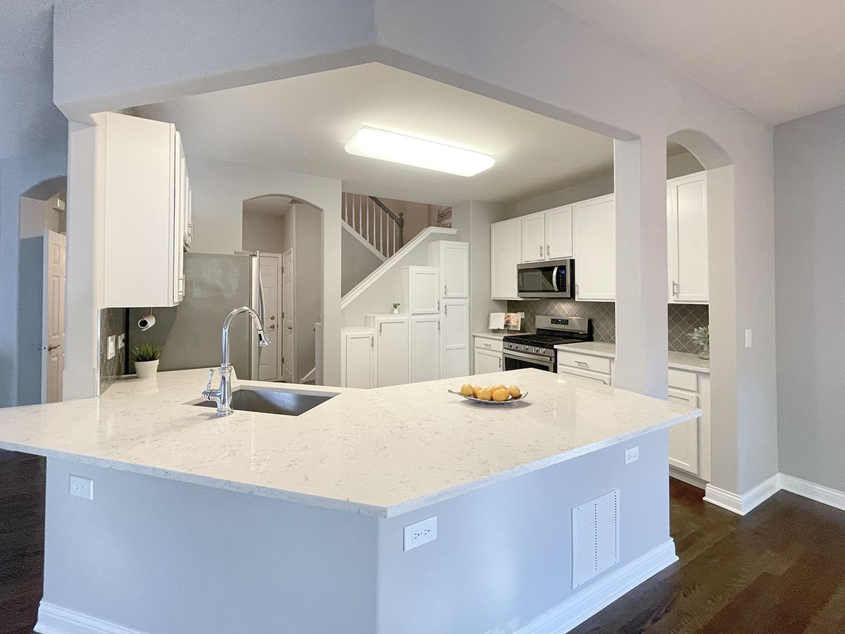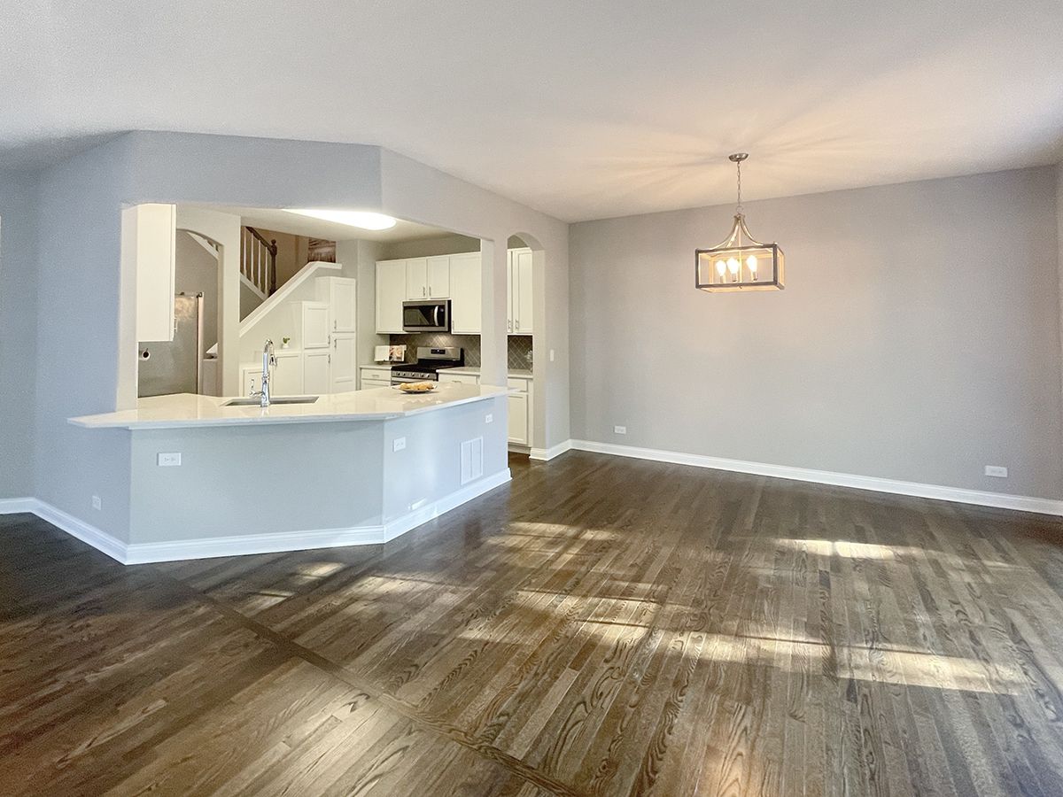 This spotless 4 bedroom townhome will dazzle you from top to bottom! Fully remodeled in 2018, basement finished in 2019, new roof in 2021, new furnace 2022. Loft converted to 4th bedroom in 2023! All you need to do is move right in! As you enter, gleaming hardwood floors greet and carry you throughout the open first floor. The coveted open concept showcases the large living room with gas fireplace and great sunlight. All white kitchen has great cabinet space, wrap-around breakfast bar, quartz countertops, stainless-steel appliances and storage galore. Dining room features sliding glass door to western facing deck. Upstairs you have four bedrooms/two baths and laundry room with deep sink and great cabinet space. Master bedroom is large with seating area, walls of windows, and vaulted ceiling. Primary bathroom features double vanity, custom tile work, new glass shower, and large soaking tub. Bedrooms feature neutral colors, white trim and doors, and vaulted ceilings with lights and fan fixtures. Hall bath is nicely updated as well. Finished basement has wide open area for so many options and lots of storage closets. 2 car garage finished and storage racks added. Neighborhood Park in subdivision, Randall Rd., Delnor Hospital, The Geneva Commons, restaurants, shopping and Metra too! Move in Ready- End unit with so much natural light!