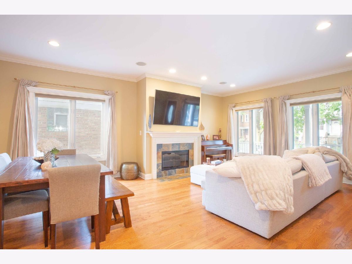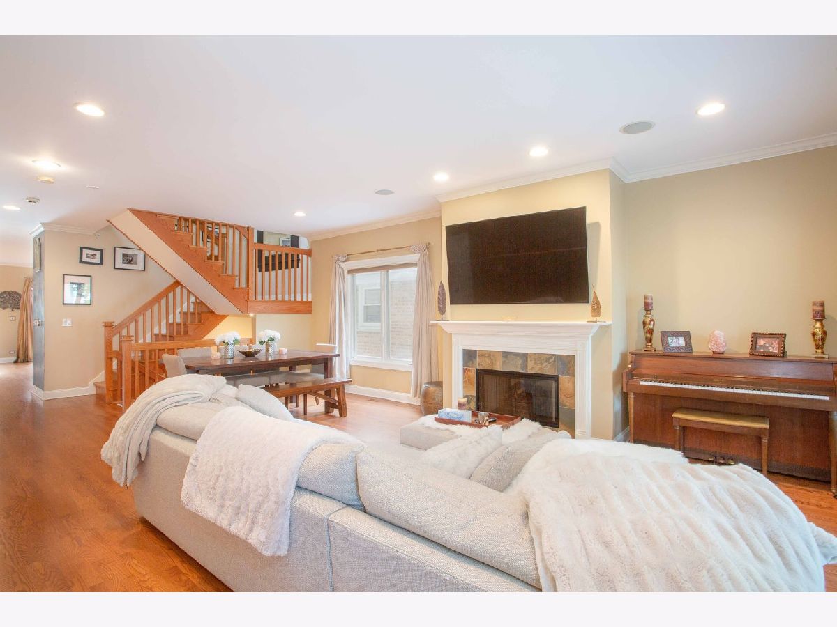 Timeless Design Quality Construction 4 Bedroom 3.5 Bath Home. Ideal Floor Plan for entertaining and living located near Brown Line Train Station. Spacious outdoor living space with 2 rear decks, large front porch. Oversized 25' wide garage provides extra space for garage roof deck. Finished lower level with high ceilings, pool table included, full bathroom, and bedroom. Custom mill work throughout the home, Stainless Steel Appliances, hardwood floors for all of main level, stairs, and upper level hallway. New Roof Summer 2019! 20 Year Architectural Shingles. All Bedroom Closets have built ins. 4 fireplaces, Wired for sound through out the home, excellent storage, well maintained. Located near parks with easy access to expressway.