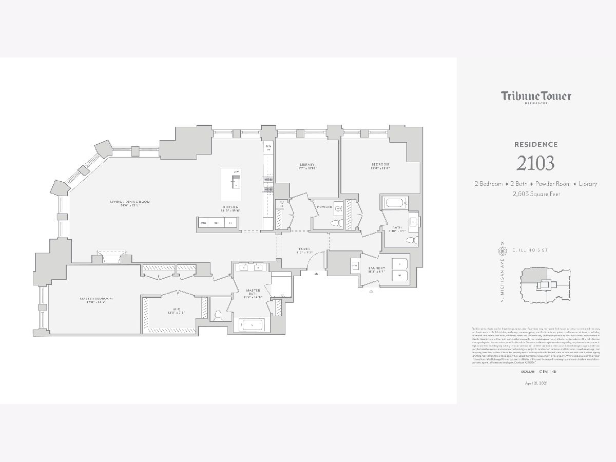 Tribune Tower Residences offers a once-in-a lifetime opportunity to own Developer's only available large two-bedroom with a 20' x 12' library in one of Chicago's most iconic buildings. There are 162 residences with 56 different floor plans, creating many one-of-a-kind residences. It is appointed with the most luxurious finishes: custom millwork and cabinetry, SubZero, Wolf and Miele appliances, marble primary bath, wide plank white oak wood floors, to name a few. Consider the over 55,000+ SF of amenity space an extension of your home: 25th floor Crown Terrace with panoramic views surrounded by spectacular flying buttresses, the 7th floor indoor pool and sundeck with views framed by the iconic Chicago Tribune sign and areas for lounging and grilling, the 3rd floor private elevated park and abundant work and social gathering spaces with billiards and gaming, and the 2nd floor indoor golf simulator & putting green, fitness center and spa treatment room with steam and saunas. 24/7 staff. It is a lifestyle beyond compare.