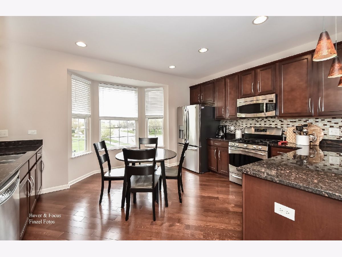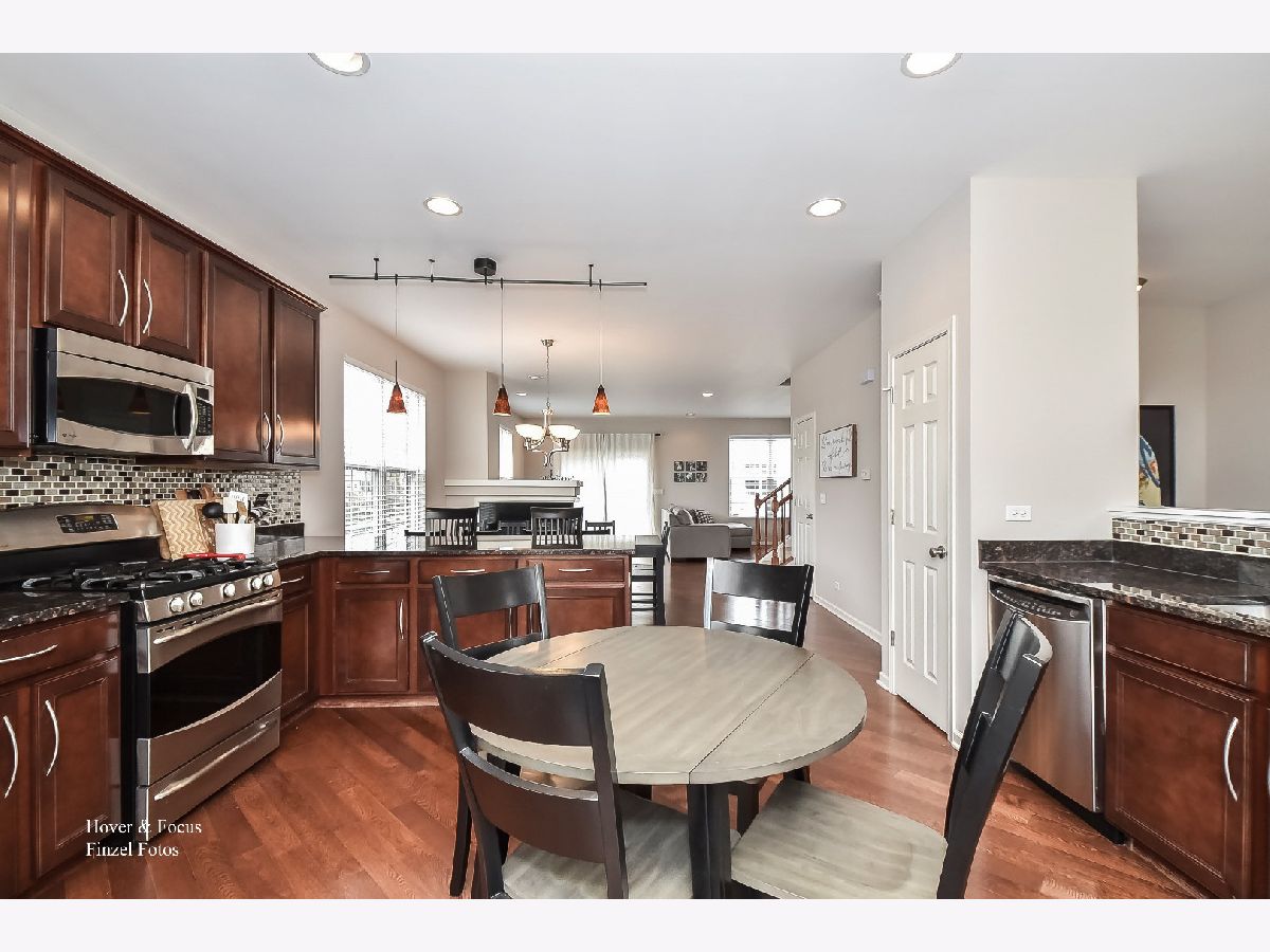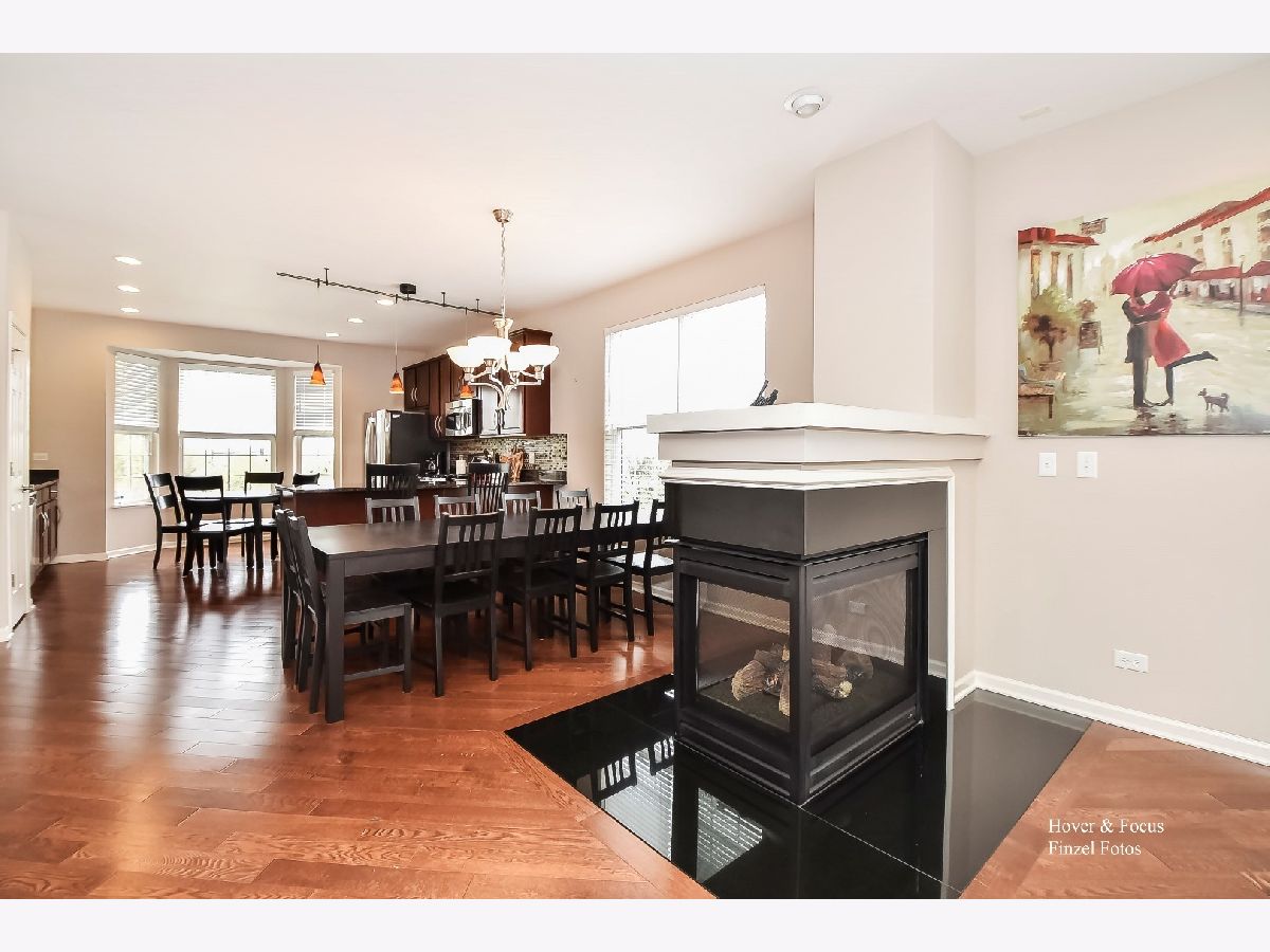 Premium End Unit that's loaded with upgrades is ready and waiting for you!! Sellers are relocating and hate to leave this beautiful 3bdrm/2.5bth Chelsea model. Angled wide plank hardwood floors flow through the gorgeous main floor. Black granite tile surrounds multi-sided gas burning fireplace featured in the living/dining room. Gourmet kitchen offers stainless steel appliances, 42" cherry cabinets, granite counter tops with breakfast bar and beautiful bay window. Upon entering the second floor you will find the Master Suite with walk in closet and tray ceiling. Private master bathroom boasts a deep soaking tub, upgraded tall cherry cabinets w/Corian counter tops, & free standing shower. Additionally the second floor offers 2nd bedroom and spacious loft with upgraded oak railings Down on the lower level you will find a large third bedroom, storage closet and separate laundry room with handy wash basin. The 2 car garage has lots of storage shelving & epoxy flooring. Be sure to put this one on your must see list. You won't be disappointed with the light, bright and open floor plan this home has to offer. Gilberts Town Center is conveniently located close to I90, Metra and shopping..