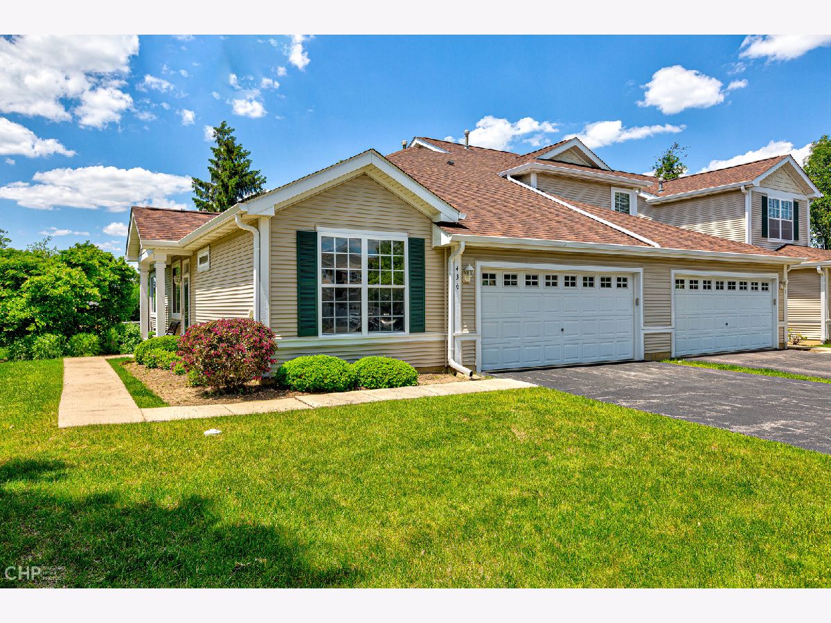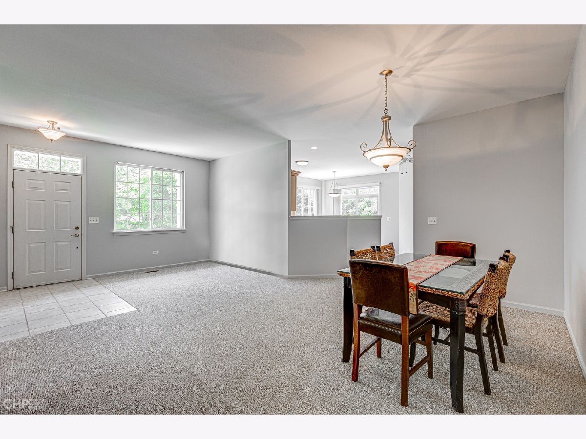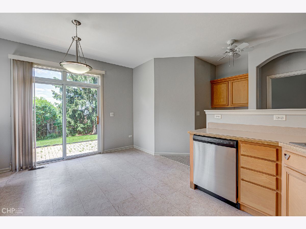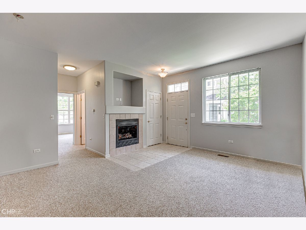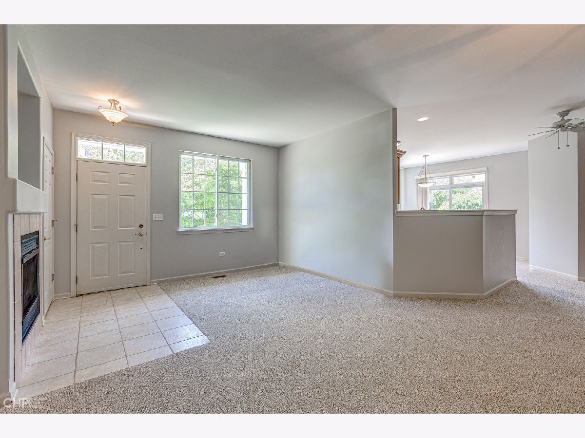 Beautiful & Bright end unit Townhome all on one floor in Remington Trails! This spacious home is freshly painted, has new carpet and new stainless steel appliances, and is totally move-in ready! The spacious, eat-in kitchen enjoys tons of cabinetry & counter space and steps out to a private, brick paver patio. A nicely sized living area with fireplace adjoins the large dining area too. King-sized, primary bedroom with large walk-in closet and en-suite bath with double sinks, separate shower & soaking tub. There's a split bedroom floorplan with your guest bedroom and bath on the other side of the home - great for privacy! In-unit laundry, central air/heat and a 2-car attached garage complete this home. Quiet location that's close to Metra, parks, lakes and more. Tons of windows and lots of light - come home!