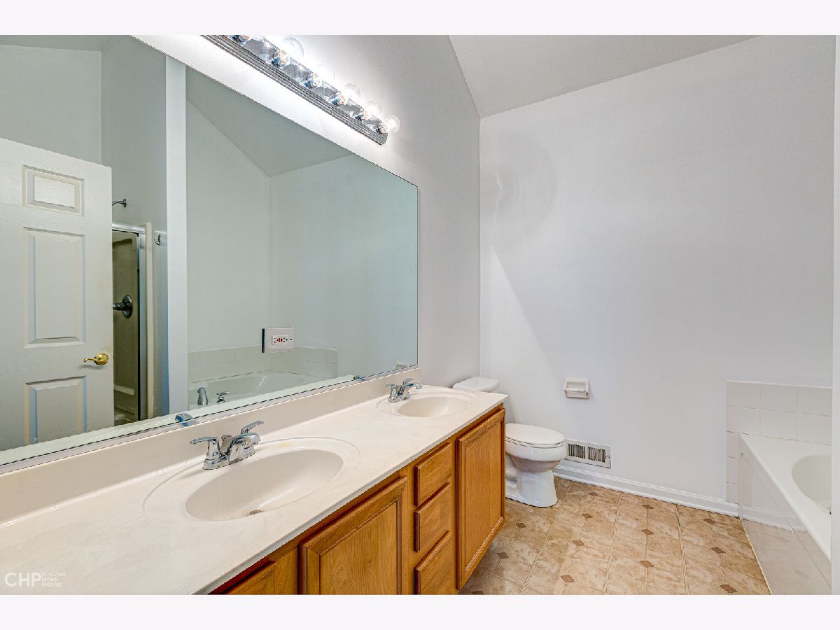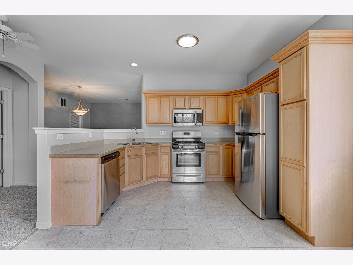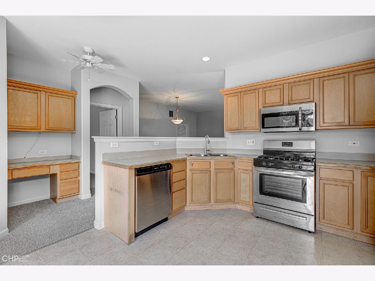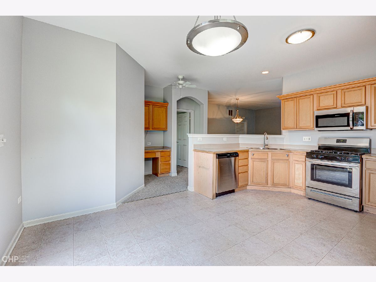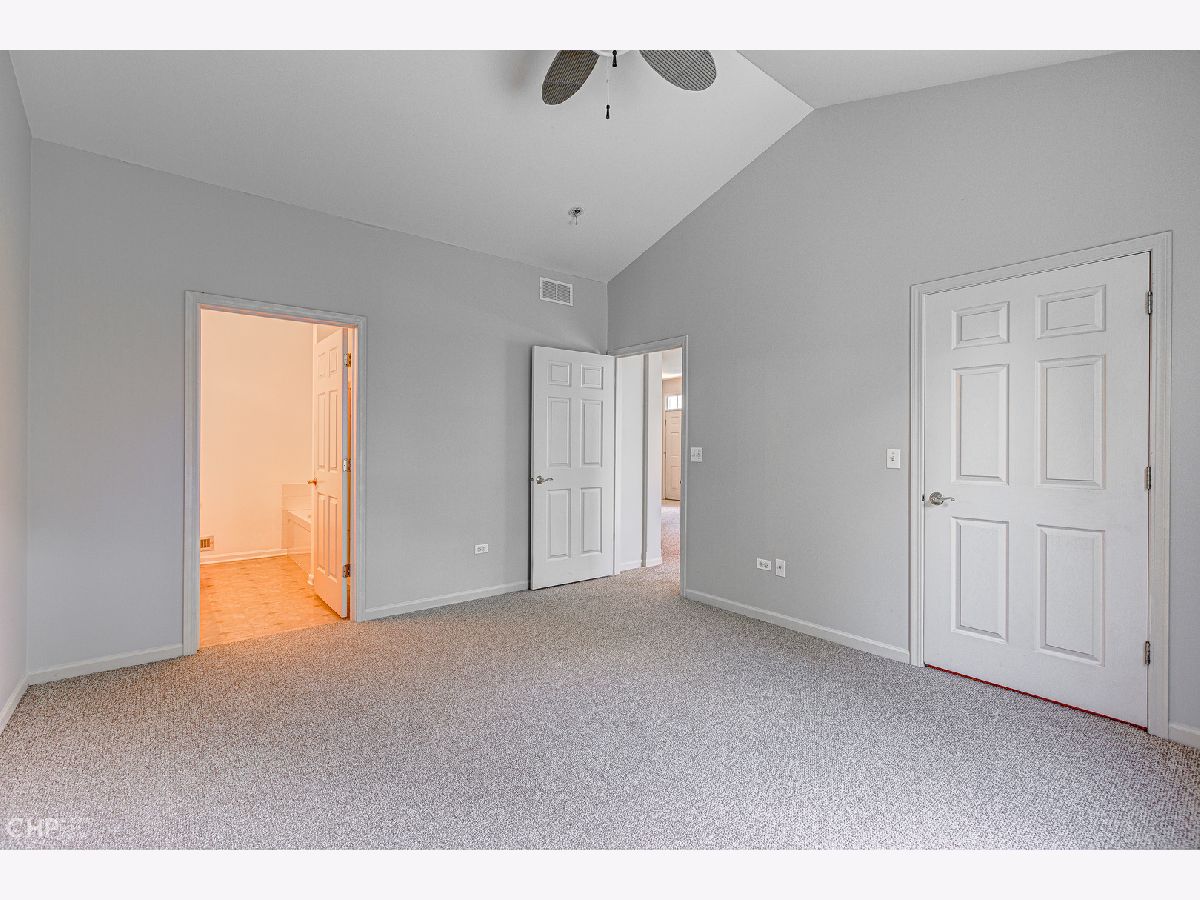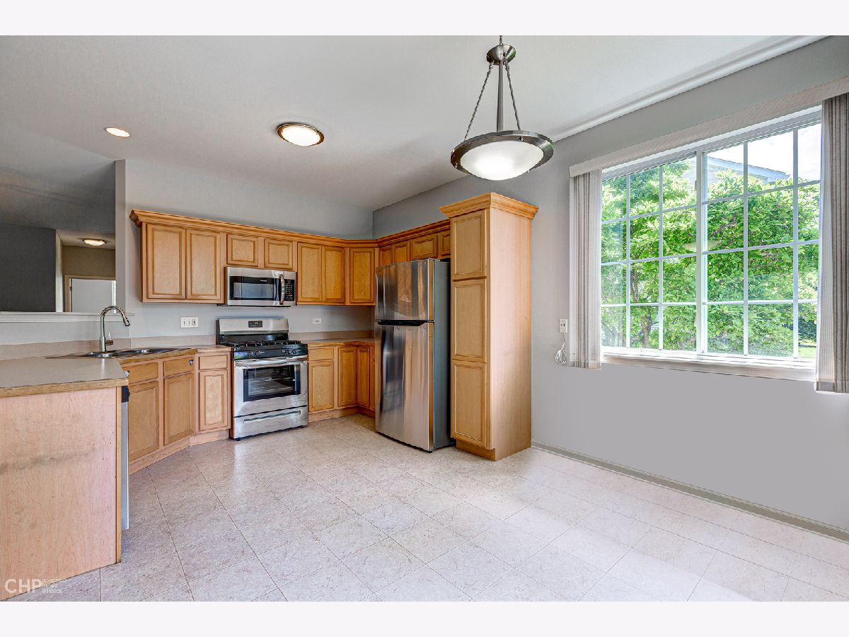 Beautiful & Bright end unit Townhome all on one floor in Remington Trails! This spacious home is freshly painted, has new carpet and new stainless steel appliances, and is totally move-in ready! The spacious, eat-in kitchen enjoys tons of cabinetry & counter space and steps out to a private, brick paver patio. A nicely sized living area with fireplace adjoins the large dining area too. King-sized, primary bedroom with large walk-in closet and en-suite bath with double sinks, separate shower & soaking tub. There's a split bedroom floorplan with your guest bedroom and bath on the other side of the home - great for privacy! In-unit laundry, central air/heat and a 2-car attached garage complete this home. Quiet location that's close to Metra, parks, lakes and more. Tons of windows and lots of light - come home!