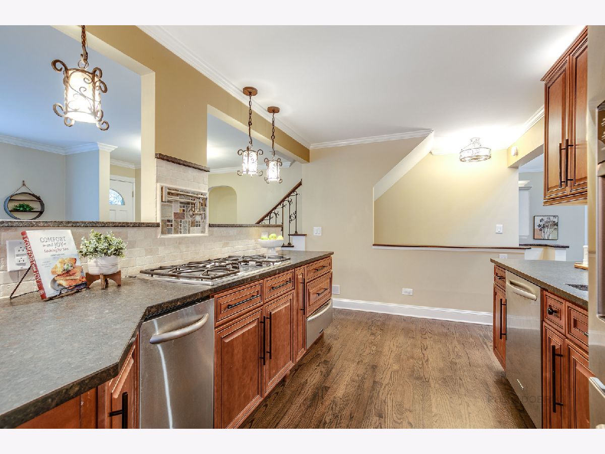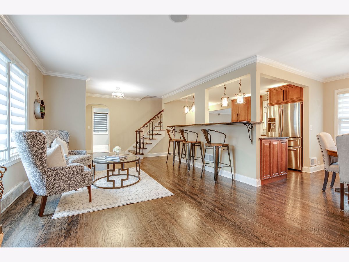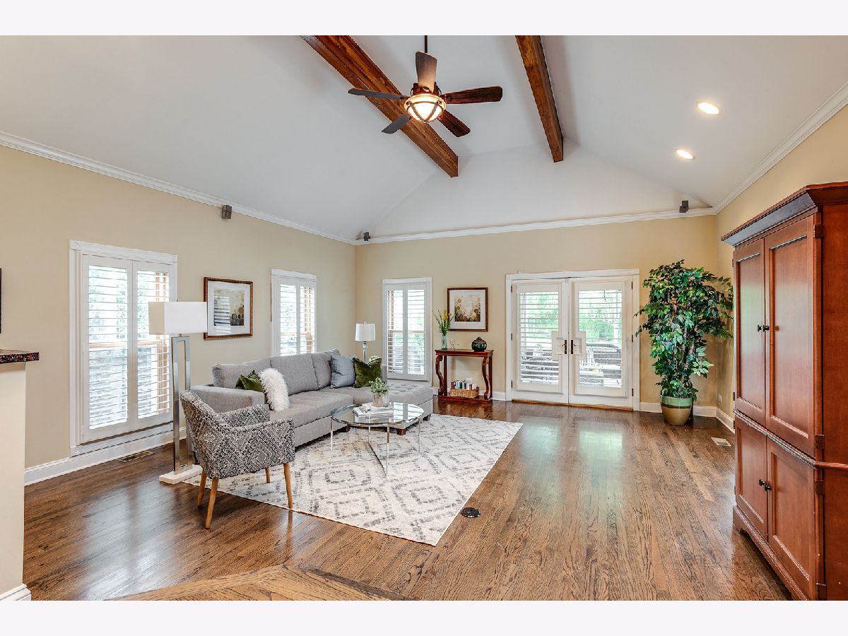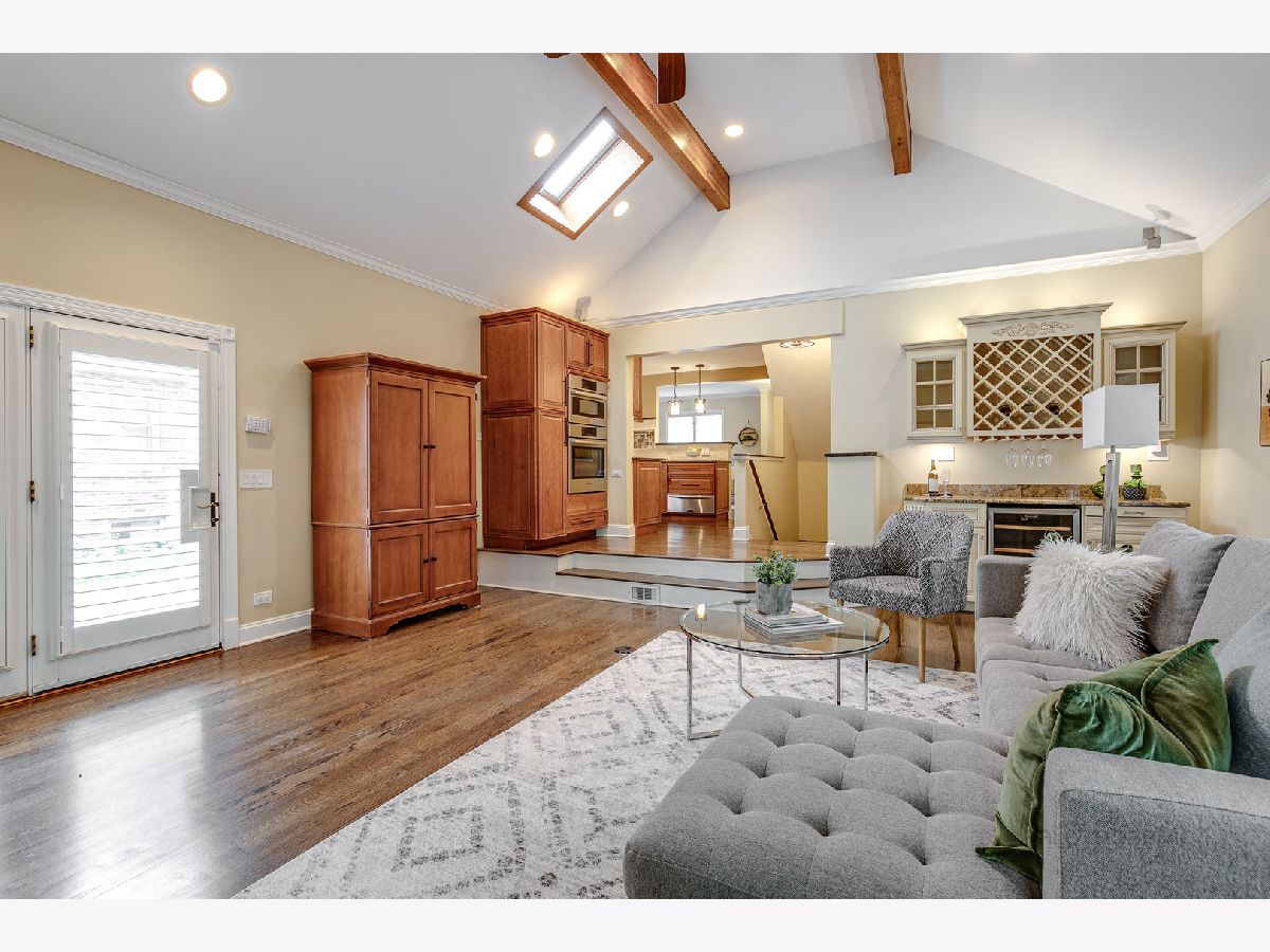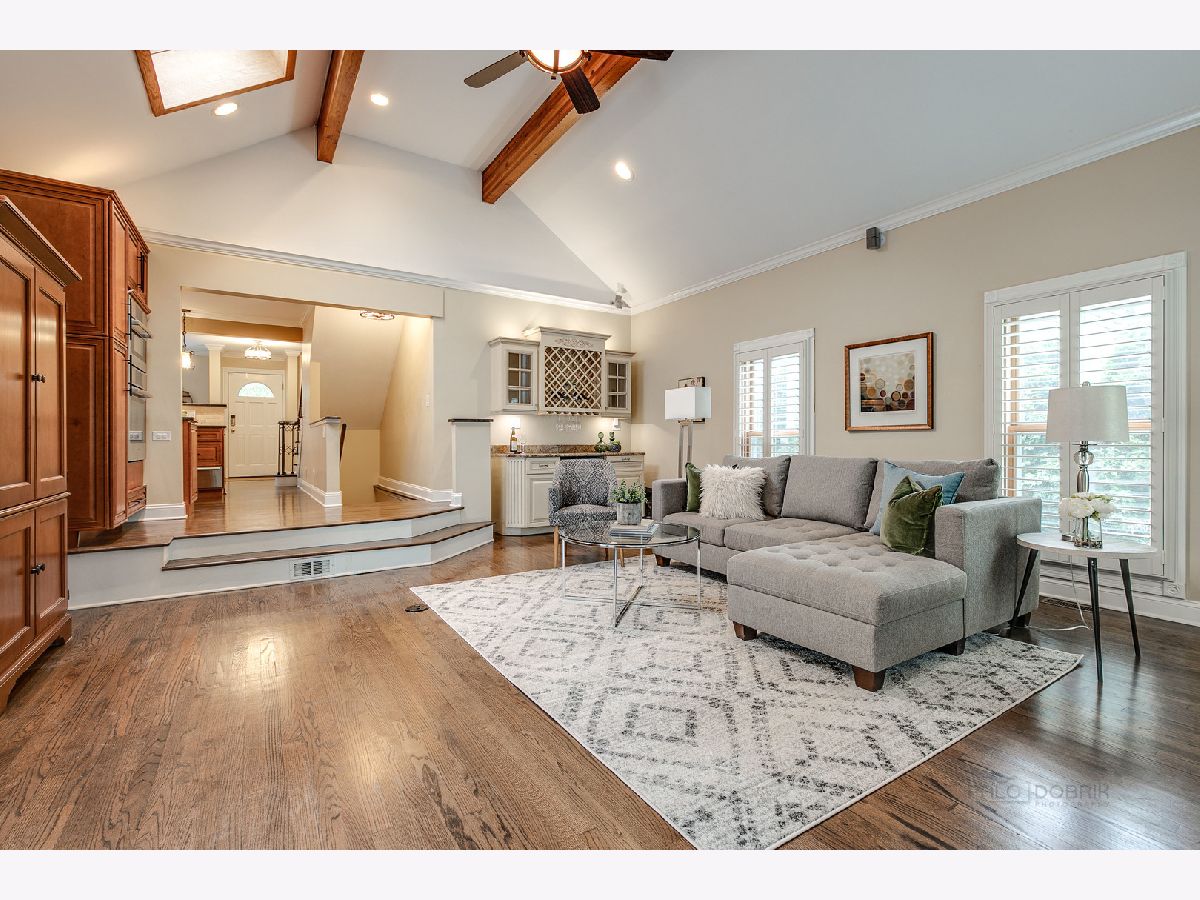 Charming, cottage style home with loads of updates. Welcoming, brick paver walkway leads to a delightful sitting area- the perfect place to relax and enjoy morning coffee. Meticulous sellers cared for and updated this home from wall to wall - wonderfully kept hardwood floors, upgraded light fixtures, plantation shutters, beamed ceilings, brick fireplace with wood mantle, crown molding, and the list goes on. The kitchen offers stainless steel appliances and 42" cabinets adorned with chic hardware, large breakfast bar, custom back splash, and slate marble counters. The spacious family room was built for entertaining - eye-catching vaulted ceiling with skylight, dry bar with wine cooler and double door leading to the screened in porch. Master bedroom on the 1st floor with expansive bathroom and second bedroom right down the hall. Second level is complete with an 2 bedrooms, and an additional full bathroom. Partially finished basement offers a versatile space for a rec room, game room, play room...whatever fits your family's needs. The basement also has a laundry area, lots of storage space, and added rough in. This quaint cottage is local to downtown Libertyville with tons to do from shopping to dining and much more.