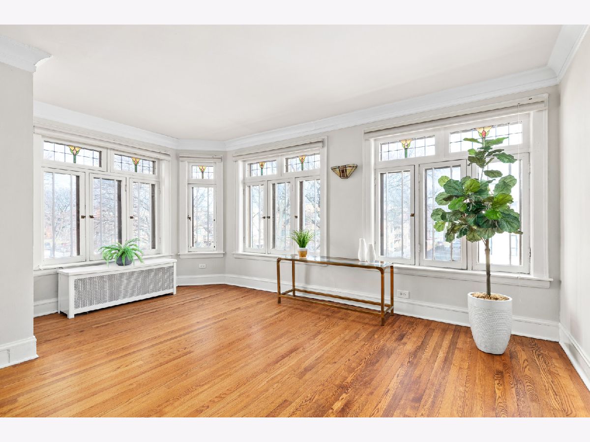 EASY TO SHOW!! Wonderfully spacious unit in PRIME Oak Park location. This unit feels like home with its expansive rooms, hallways, hardwood floors, crown molding and trim, and amazing natural light. Step into the foyer and enjoy the street view and light coming through the wall of windows at the front of the unit. Stained glass, fresh and modern paint color, and decorative fireplace complete the living room. Large enough to have two seating areas and room for a desk. 2 bedrooms share the hall bathroom and the 2nd doorway in master provides wonderful functionality. Hallway leads to the extra wide dining room, eat-in kitchen and mudroom. The kitchen offers space for a table, seating at the peninsula, and separate area for fridge and command center. Back enclosed porch functions well as a mudroom or extra living space! Large closets throughout plus in unit laundry and an additional storage unit in the basement. Large fenced in backyard with area to BBQ completes this incredible property. Access to all that Oak Park and Forest Park have to offer. Leave your cars in the INCLUDED 2 tandem parking spaces and walk to E V E R Y T H I N G! Easy Access to Blue Line, Green Line, the Metra and I290. Taxes reflect no homeowners exemption.
