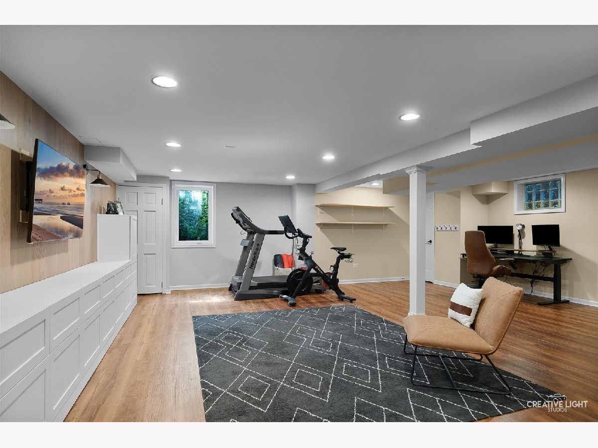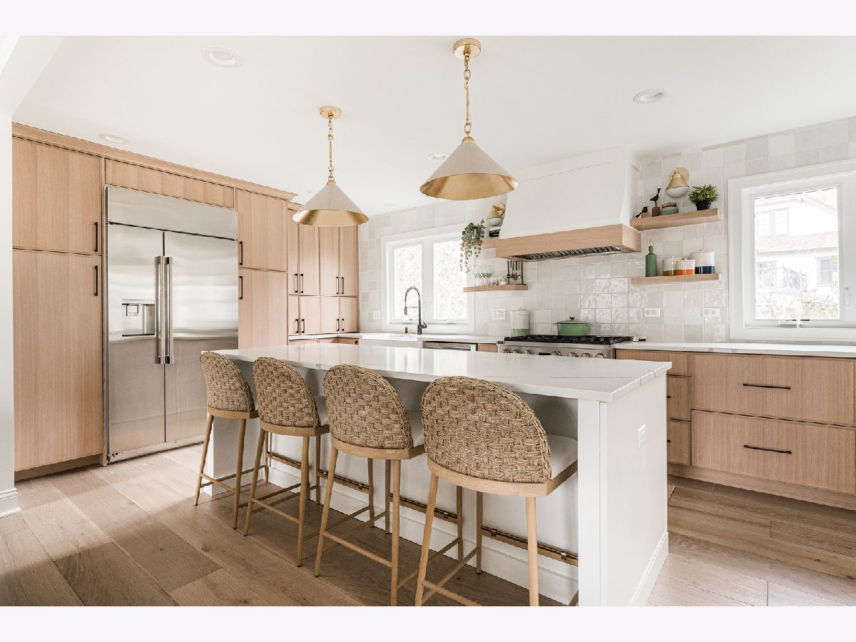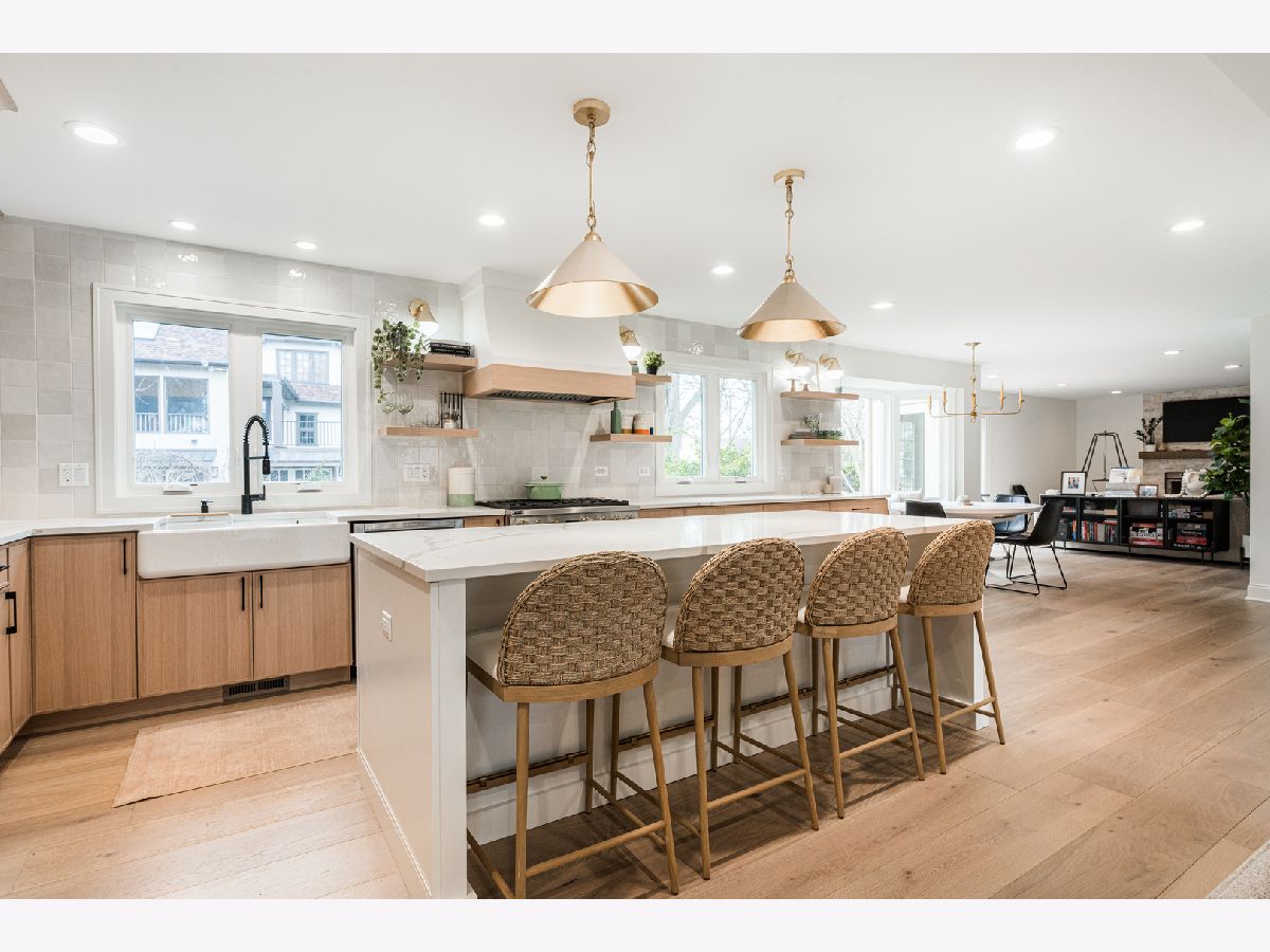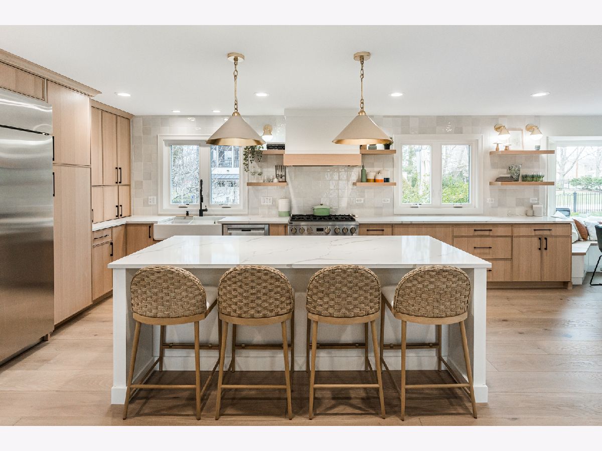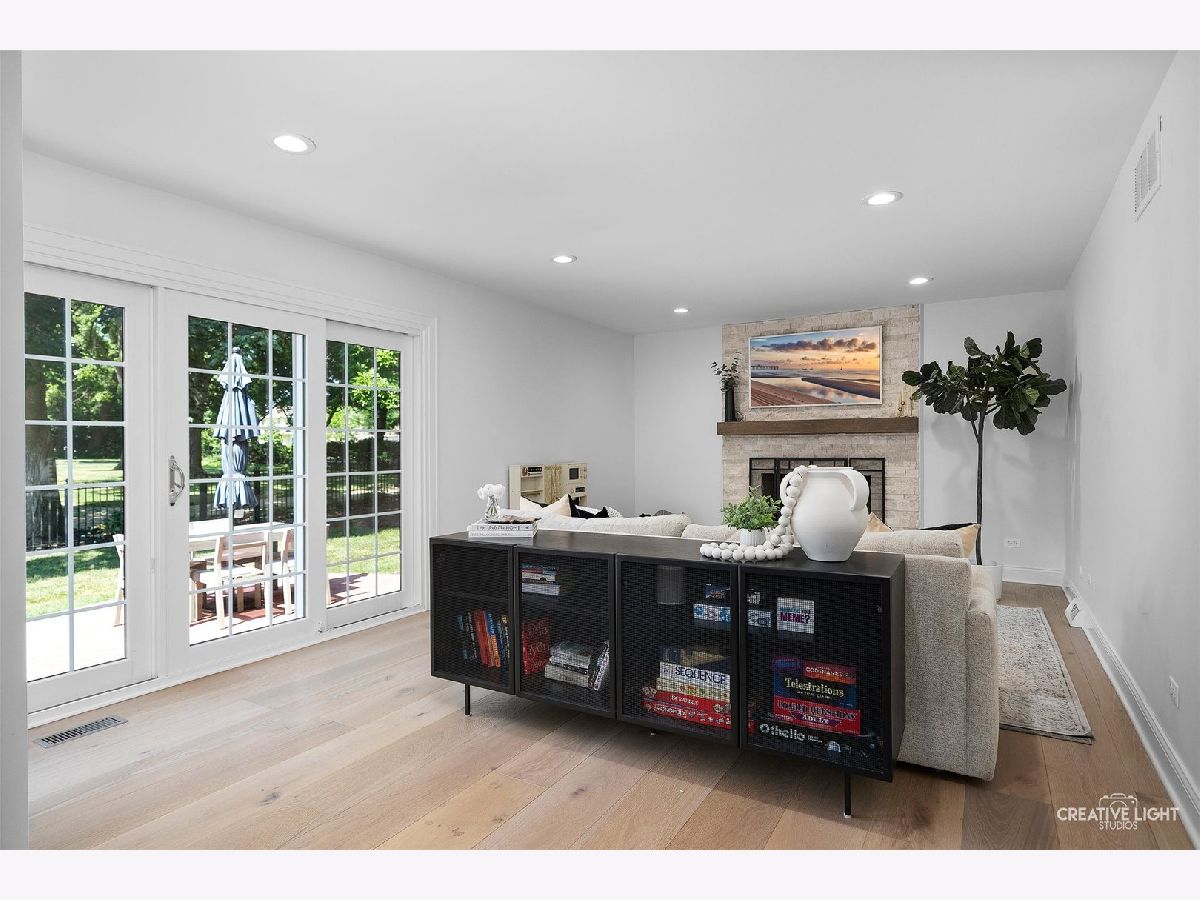 Welcome to 438 Hill Avenue, located in the heart of Glen Ellyn. This in-town charmer is situated just steps to school, town, train, restaurants, library, Prairie Path and Main Street Rec Center. Remodeled in 2022, the home features 3 bedrooms and 2.5 baths with finished basement. The open concept living room, kitchen and dining space features custom Greek Shake millwork cabinetry and floating shelves, Calacatta Laza quartz countertops, ceramic backsplash, GE Monogram refrigerator, range, hood, microwave and beverage fridge, Bosch dishwasher, Kohler farmhouse apron sink, bay window banquette with storage, built-in desk with custom millwork and wall sconce lighting, fireplace and white oak engineered flooring. The flowing floorpan also includes adjacent family room with scenic views of the fenced yard, mudroom/laundry room combo and attached two car garage. The second floor boasts generous sized bedrooms including a primary ensuite with custom shaker style double vanity, Kohler undercount sinks, Misterio quartz countertop, herringbone subway shower tile and accent wall, Delta brass bathroom fixtures and basketweave floor tile. Two additional bedrooms are light and bright with a shared hall bath. The finished lower level includes a large finished rec room with wood panel accent wall, custom built-in cabinets and plenty of storage space. Additional updates include front yard landscaping and paver walkway, high efficiency water heater, Trane Accuclean electronic hepa filtration system, April Aire bypass humidifier, new garage door with wi-fi and integrated camera, and upgraded 200-amp electric panel. Roof new in 2018 and driveway in 2019. Whether entertaining a group, or enjoying day to day family time, this home offers comfortable, updated living in a location that allows you to take advantage of all that the village has to offer. Simply move in and enjoy this wonderful home!