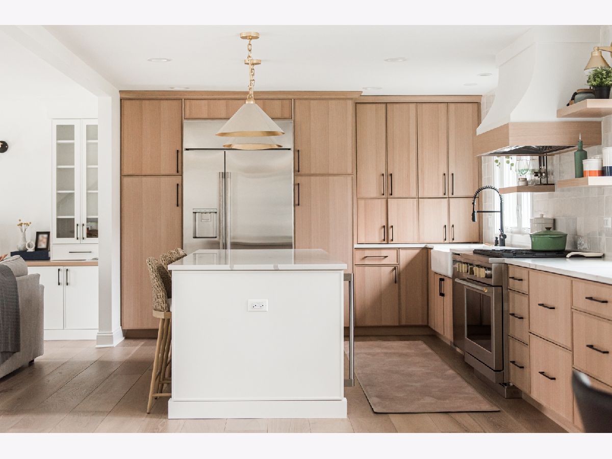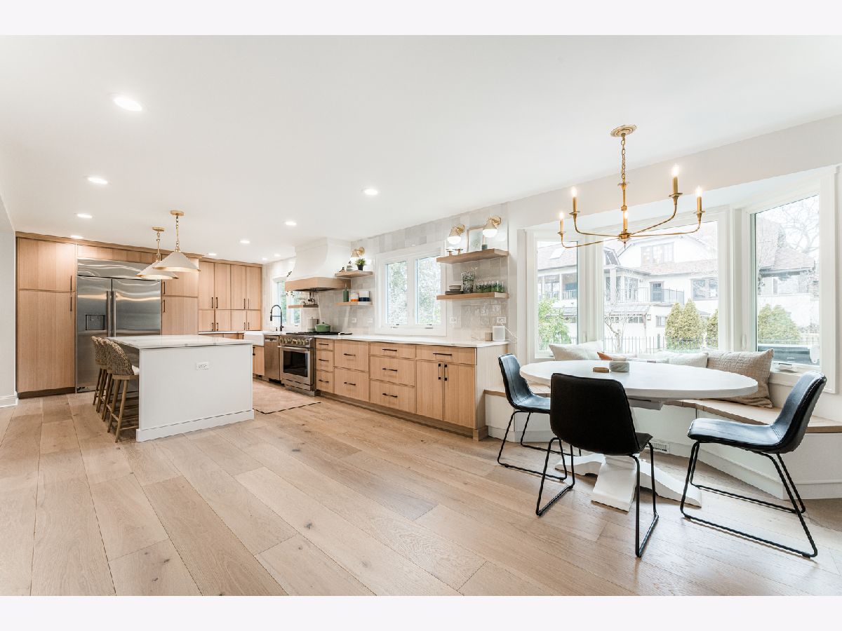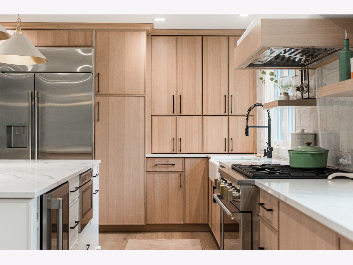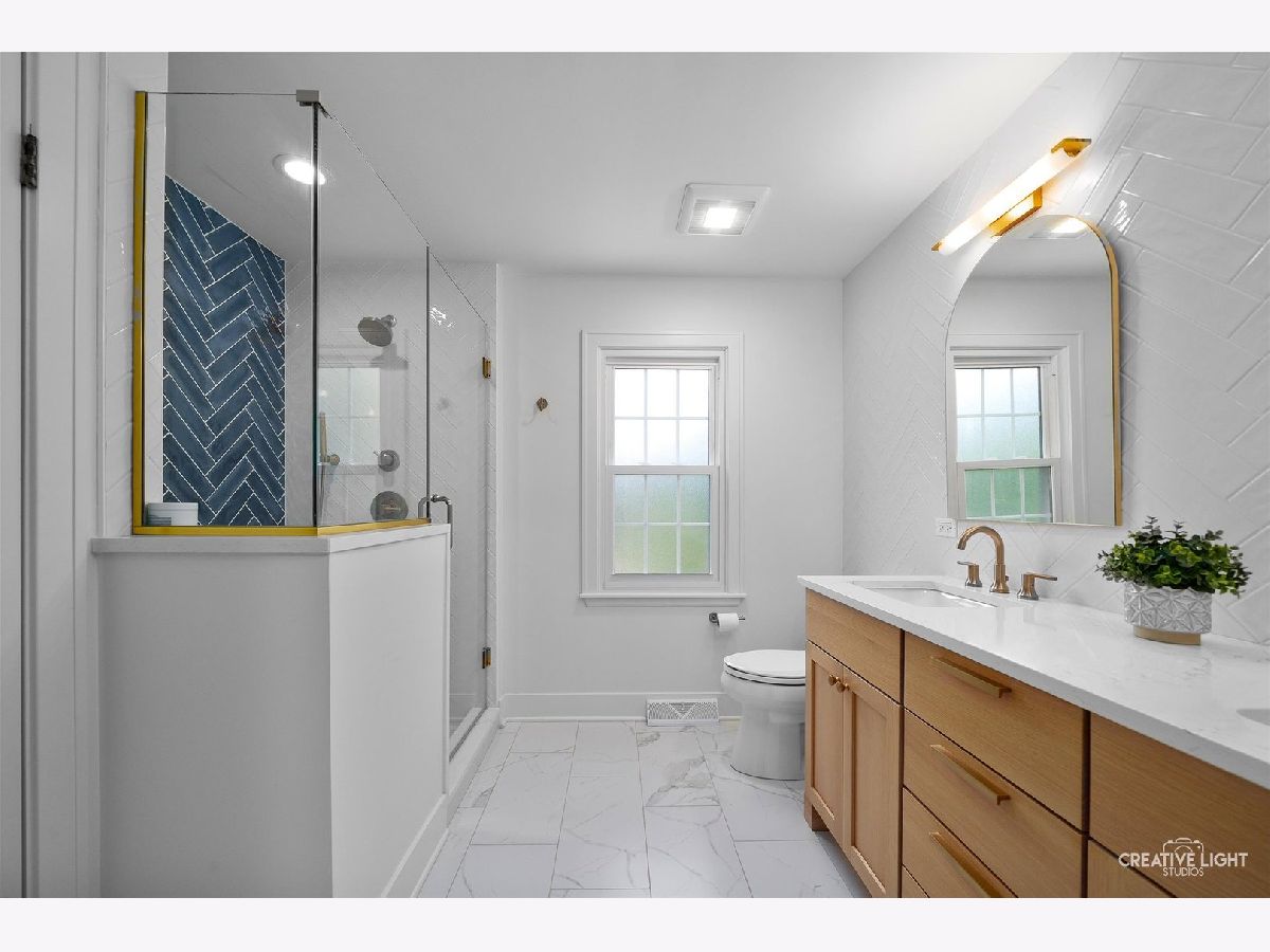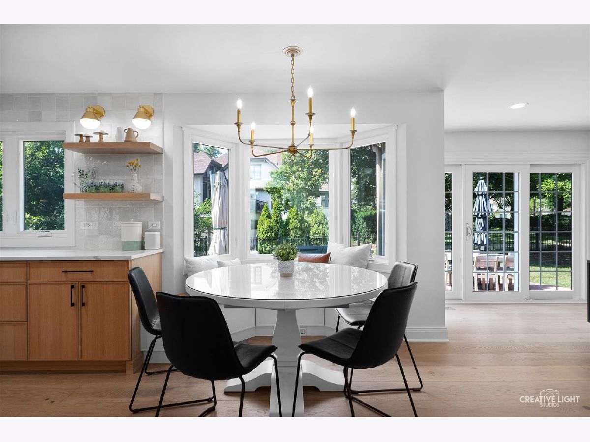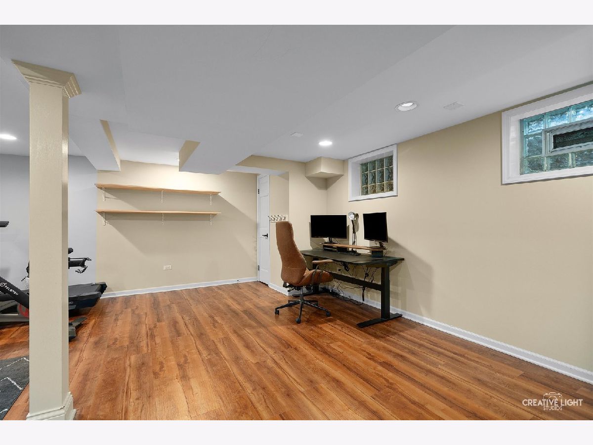 Welcome to 438 Hill Avenue, located in the heart of Glen Ellyn. This in-town charmer is situated just steps to school, town, train, restaurants, library, Prairie Path and Main Street Rec Center. Remodeled in 2022, the home features 3 bedrooms and 2.5 baths with finished basement. The open concept living room, kitchen and dining space features custom Greek Shake millwork cabinetry and floating shelves, Calacatta Laza quartz countertops, ceramic backsplash, GE Monogram refrigerator, range, hood, microwave and beverage fridge, Bosch dishwasher, Kohler farmhouse apron sink, bay window banquette with storage, built-in desk with custom millwork and wall sconce lighting, fireplace and white oak engineered flooring. The flowing floorpan also includes adjacent family room with scenic views of the fenced yard, mudroom/laundry room combo and attached two car garage. The second floor boasts generous sized bedrooms including a primary ensuite with custom shaker style double vanity, Kohler undercount sinks, Misterio quartz countertop, herringbone subway shower tile and accent wall, Delta brass bathroom fixtures and basketweave floor tile. Two additional bedrooms are light and bright with a shared hall bath. The finished lower level includes a large finished rec room with wood panel accent wall, custom built-in cabinets and plenty of storage space. Additional updates include front yard landscaping and paver walkway, high efficiency water heater, Trane Accuclean electronic hepa filtration system, April Aire bypass humidifier, new garage door with wi-fi and integrated camera, and upgraded 200-amp electric panel. Roof new in 2018 and driveway in 2019. Whether entertaining a group, or enjoying day to day family time, this home offers comfortable, updated living in a location that allows you to take advantage of all that the village has to offer. Simply move in and enjoy this wonderful home!