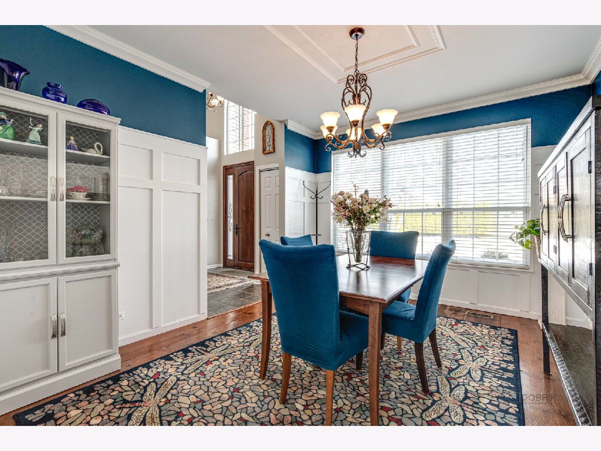 ***Multiple Offers Received. Highest and Best Due by Sunday 2/26 at 5pm.*** Nestled on an interior lot in Regency Woods, this Colonial home boasts an exterior blended with brick and aluminum that creates a timeless look. Exuding elegance and charm this home offers details you are sure to love, from the detailed millwork, panel moldings, luxurious slate tiles, and beautiful hardwood flooring. You will enjoy the benefits of the new High Efficiency Furnace and A/C both installed in 2021. A new Sump Pump (With battery backup) and Ejector pumps were also replaced in 2021. (See the attached list for more updates). Head inside through the stunning 8' front door, where you are greeted by an inviting two-story foyer flanked by a first-floor office (previously the living room) and a separate dining room, setting the stage for a versatile floorplan that will cater to all your entertaining needs. Next, head to the kitchen where the chef of the house will be in their element; imagine whipping up nightly meals here, featuring a plethora of refreshed 42" custom cabinets with crown uppers, granite countertops, and a center island Jenn-Air Cooktop. (With Accessories.) You'll enjoy quality stainless-steel appliances that include a KitchenAid double oven, KitchenAid microwave, a Samsung refrigerator, and a Samsung dishwasher. The excellent kitchen layout includes a separate breakfast/eating area offering the perfect place to grab a quick bite to eat, or a place to sit and sip on your morning coffee while you appreciate the views of the fenced in yard. Conversations will flow effortlessly from room to room with the completely open floor plan. Check out that showstopping two-story floor-to-ceiling fireplace - WOW! With a wall of windows providing fabulous natural light and the gas fireplace both adding warmth to the home, you are sure to have the perfect ambiance for relaxing after a long day. Completing the main level is a large half bath and a first-floor laundry room. Ready to call it a night? Retreat upstairs to the expansive main bedroom which offers a vaulted ceiling, a large walk-in closet with custom organizers, and a private bath featuring a dual sink vanity, a soaking tub, and a separate shower. Three additional spacious bedrooms and a full bath complete the second level and ensure there is a space for everyone to call their own. Adding even more living space is the large rec room in the basement - with this space offering endless possibilities to use as a media room, a family hang-out space, or a space to set up a home gym. Storage, storage, storage! Whether hosting a family movie night, a formal dinner party, or just a summer BBQ out on the brick paver patio in the fenced yard, this home has it all. 2 car-attached garage. Award-winning Libertyville High School and Top-rated Oak Grove Elementary. Close proximity to endless shopping, restaurants, and more. Sure to check all your boxes - don't let this one slip away!