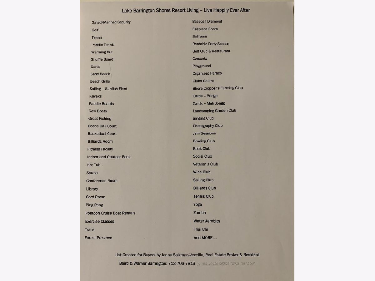 LAKEFRONT-RENOVATED-BRIGHT-3 LEVELS This updated dream home boasts a Spacious Open floor plan with Stunning main lake views! This home was tastefully designed for today's savvy buyer. ENTER your new home through your 2 Car Garage into your private gated courtyard. Perfect for privacy, entertaining and/or a pet unleashed to enjoy. The KITCHEN features: custom white cabinetry, quartz counter tops and high end Bosch stainless steel appliances and a wine refrigerator. This Open Floor Plan to the dining and living area ensures lake and gorgeous mature tree views unparalleled to any other community nearby. Also on the main level there is a Den that could easily be transformed into an additional bedroom. DOWNSTAIRS the Open family room is simply perfect for gatherings large and small, with an AMAZING built in wet bar complete with another wine refrigerator. Step outside and enjoy entertaining or private relaxation on your brick paver patio with again... a gorgeous lake view. There is an additional storage/hobby room downstairs that can also be easily converted into yet another bedroom. UPSTAIRS, The Fabulous Master Suite was redesigned with a luxurious spa bathroom with skylights, an oversized walk in closet with custom built-ins and your own private balcony. Imagine waking up every morning and looking out your window at the Majestic Lake Barrington. Bonus - this is a Resort Community zoned to Barrington Schools. More features include: a Golf Course, a Recreation Center w/ a Fitness Facility, Party Rooms and work areas, Indoor and Outdoor Pools, a Beach with Community Owned Boats, Spectacular Fishing, Tennis and TOO MANY CLUBS TO Mention... Welcome to happily ever after!