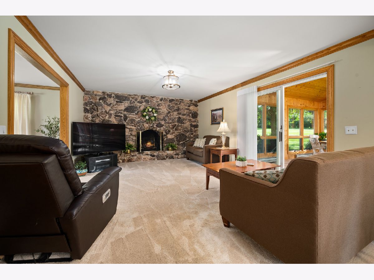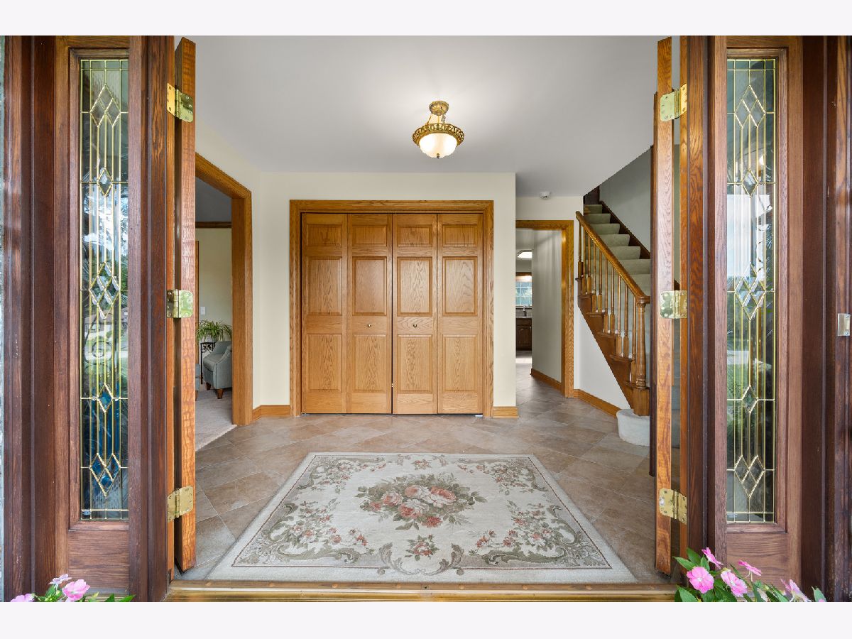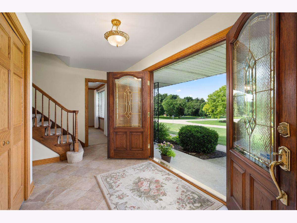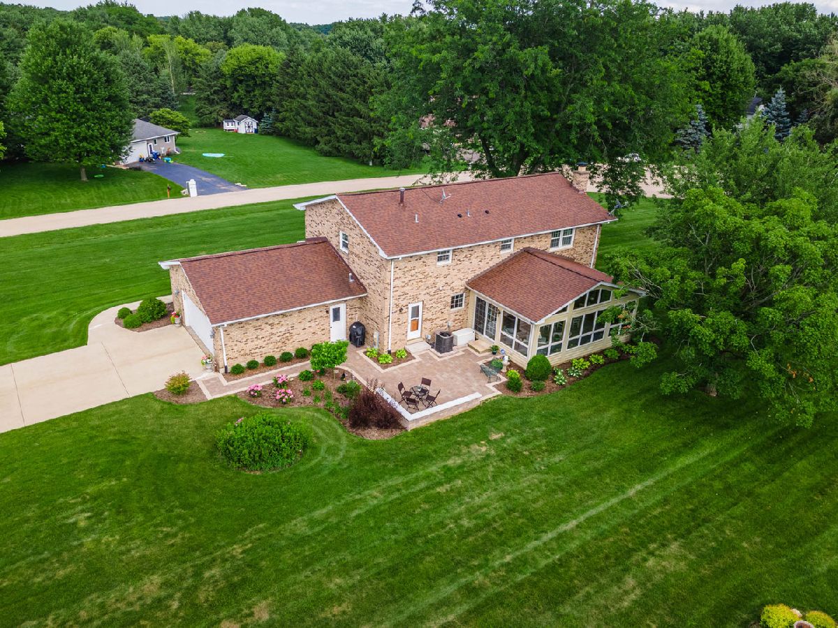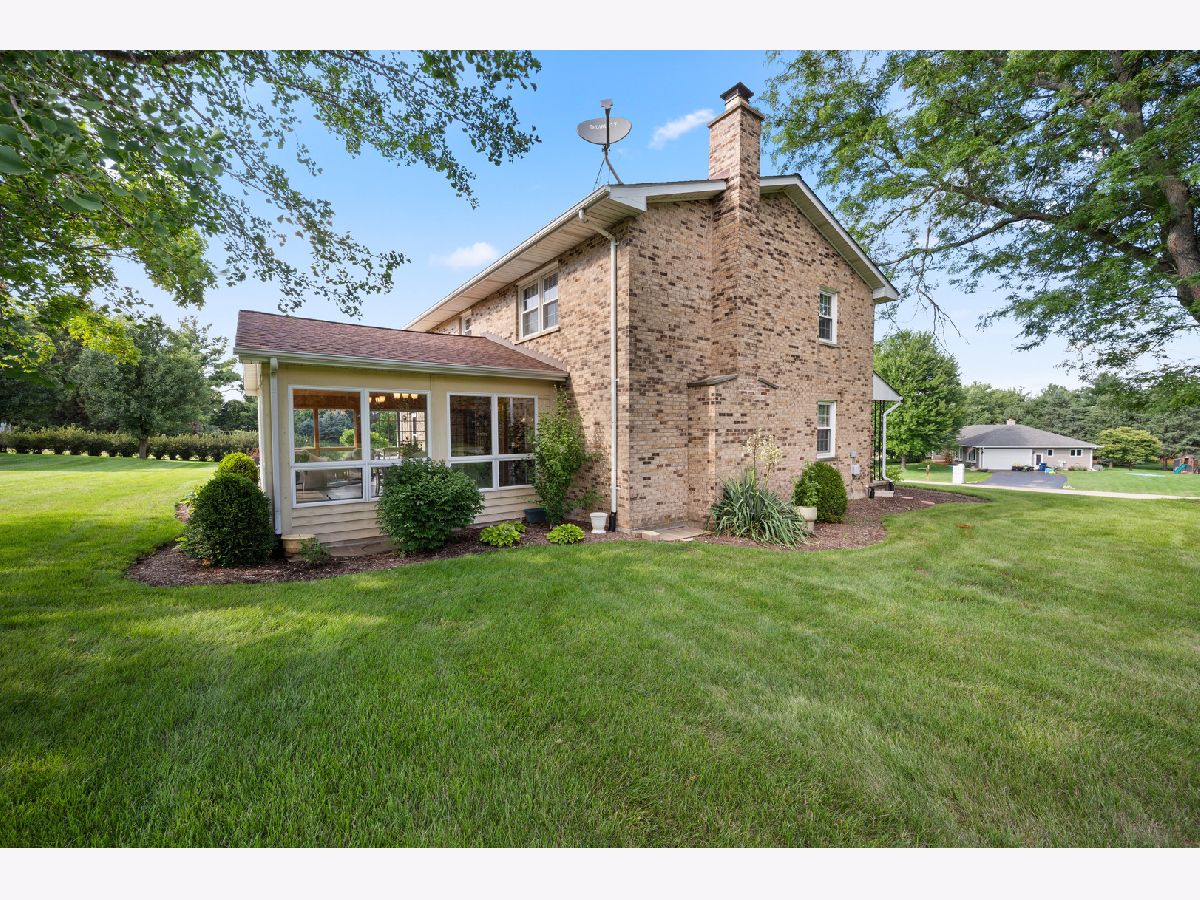 Proudly introducing a one-owner all-brick elegant home nestled on 1.06 acres! You will love the newer brick and stone paver patio with built-in seating and inviting walk-way. This breathtaking backyard setting is embraced by flourishing bushes and mature trees, giving you beautiful panoramic views, privacy, and serene moments. Enjoy outdoor living at its finest! From this outdoor retreat you can enter the fabulous sun-filled 23'x16' sunroom showcasing 13 viewing windows, 5 transom windows, knotty pine vaulted ceiling, Andersen windows, and complimenting chandeliers and wall sconces! This favorite gathering space conveniently offers 3-way interior and exterior access! Carriage style lighting, an inviting covered front porch and beveled glass front solid doors welcome you into this 3,072 sq. ft. pretty and pristine home! The formal Dining Room and Living Room boast crown molding, window blinds and elegant drapery. The chef's delight kitchen presents striking granite countertops, Heartland Tradition Cabinetry, custom tile backsplash, walk-in pantry, and a butler's station with prep sink. Stainless steel appliances include a 5-burner gas range and convection oven. Enjoy the cozy family room featuring a gas log lit masonry fireplace embraced by a full stone accent wall. 1st level laundry room is equipped with a utility sink, upper and lower cabinets, clothes chute, washer, and dryer, and offers access to the outside brick patio. There is a half bath to serve the main level. Solid 6-panel wood doors, upgraded trim millwork, and neutral interior color schemes create lovely ambiance. A spindled staircase leads you to the upper level with 3 shared hallway closets, linen closet, and a full bath with 2-sinks, another linen closet and tub/shower glass doors. The Primary Bedroom Suite displays a reflective light fixture and classy window treatments. The private bath features gold fixtures, Kohler toilet and bidet, tub/shower glass doors and a walk-in closet. Large closet systems, blinds and window treatments complete all bedrooms. The full basement is equipped with a York 96% energy efficient furnace, air cleaner, water softener, utility sink, egress window and Generac Power Generator. 23'x23' expanded garage, concrete driveway and cul-de-sac location are additional bonus features offered with this well cared for traditional property nestled in the Cheval De Selle custom community. "This is an opportunity to LOVE your new HOME and where you LIVE!"