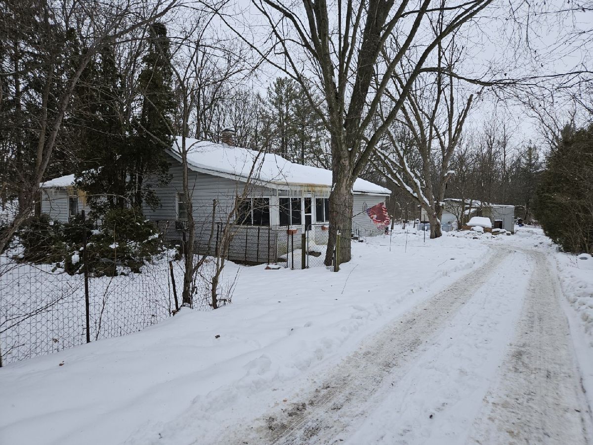 Cozy ranch home on 4.88 wooded acres offering country living at its best. Enjoy your toys, hunting, the great outdoors! Excellent investment opportunity. Oversized 2.5-car garage, enclosed front porch, close to Metra train, shopping, entertainment, bike trails, Fox river and more. 60x30 heated pole barn fully-- insulated, finished with concrete floor-- with kitchen and full bath. Perfect for your hobbyist or avid woodworker! House needs work. Tenant-in-Place. Could stay! Hardwood floors, 2BR/2BA, 1st floor laundry. Property to be sold Strictly AS-IS.