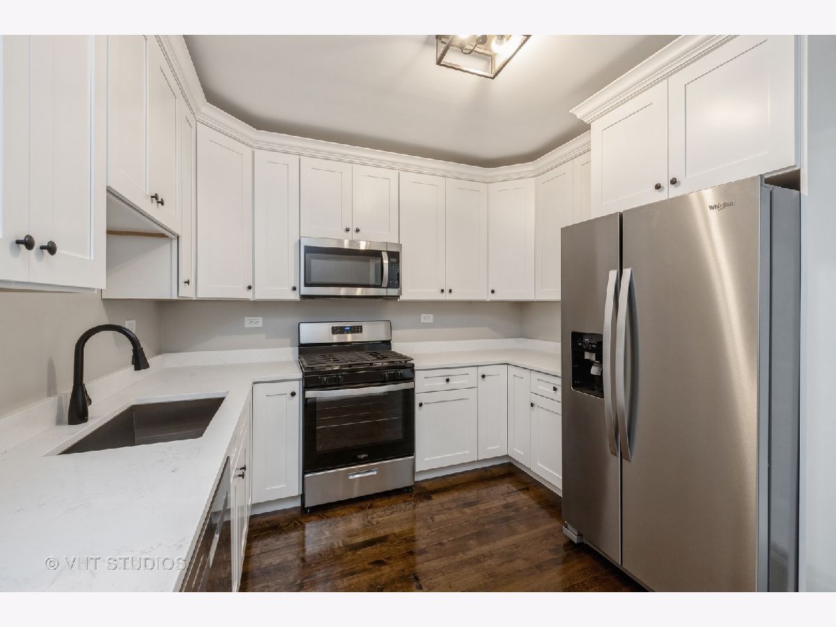 Looking for an elegant and spacious property that's nestled in the heart of a tree-line street? Check out this beautifully rehabbed 2 Flat with the over-sized front porch perfect for those relaxing evenings! The modern kitchens are perfect for the chef in you, complete with White Shaker cabinets, Quartz counters, stainless steel appliances, and modern fixtures. The gleaming hardwood floors throughout the property will add warmth and character to your home. The top floor unit has three bedrooms and one bathroom while our first floor unit has two bedrooms and one bathroom. If you need additional space, our basement has high ceilings perfect for expanding or storage. And that's not all-you'll love our fenced-in lot with ample parking for two cars and two brand new ac condensers. Set up your private showing today!