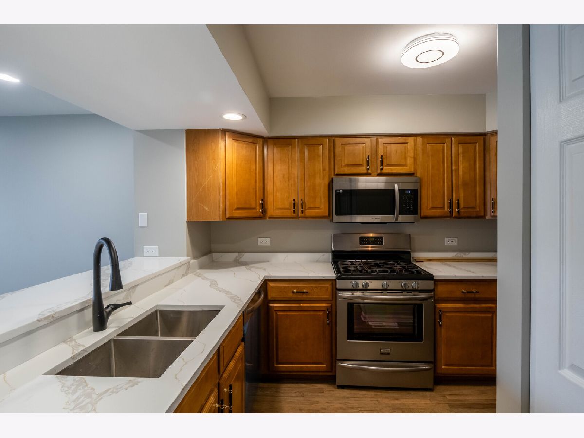 Rarely available Cavalier townhome! Beautiful unit with new carpet, refinished floors, quartz countertops, appliances, bathroom tiles, HVAC, and water heater! All it needs is a new homeowner to enjoy this beautiful property! Convenient washer and dryer hookups on the upper level. Huge basement for added living space. Backs to a park, open field, and prairie path.