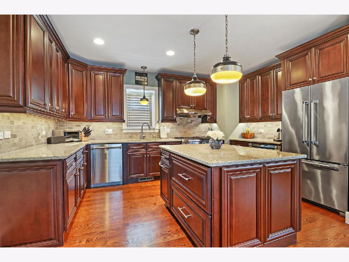 Looking for the charm of yesteryear with the technology and quality construction of today? Look no further: This 2015-built Modern Farmhouse showcase with Craftsman architecture and aesthetics will blow you away! Hardwood floors, authentic millwork, high ceilings, urban chic lighting, custom 3" Bon Jour Silhouette shades, built-in bookcases, and customized closets throughout. Cherry and granite island kitchen, 46" cabinetry with crown tops, subway tile acid-washed marble backsplash, professional grade Bosch and Thermador appliances, task lighting, double door customized pantry, and sunny eating area. Huge family room awash in natural light features custom bookcases, white prairie millwork & slate surround fireplace, glass doors to big deck, windows on three walls, plenty of recessed lighting, and ceiling fan can accommodate the whole gang. Divine drop zone/ back entrance with high-tech door lock and room for coats, boots, and backpacks. Charming powder room, living and dining rooms complete the main level. Craftsman iron and oak turned staircase to four big bedrooms with custom closets, Hunter Douglas Honeycomb blinds, and overhead lighting. Primary suite includes sitting area and beautiful bath with stone finish tile, quartz vanity with retro faucets, two round mirrors, high-profile cherry cabinetry and drawers, and oversized shower. Bedrooms 2, 3, 4 with modern decor and walk-in closets. Second floor laundry with stainless front load machines makes life much easier. Finished basement with LVT plank flooring and above grade windows is ideal for work, play, or guests. Full bath, immense rec area, separate area for table or desk, lots of storage, and concrete crawl. Enjoy outdoor living with elevated deck, fenced yard with mature shade trees along the perimeter, and superb play area on expanded driveway. Bluestone walkway and stairs in front lead to covered porch. Every component is only 7 YEARS OLD! Don't miss the "smart" thermostat, security system in house AND garage, brand-new ejector pump, and fire suppression system. Close to train, town, shopping, access roads, and parks. All this on a quiet street with no through traffic!