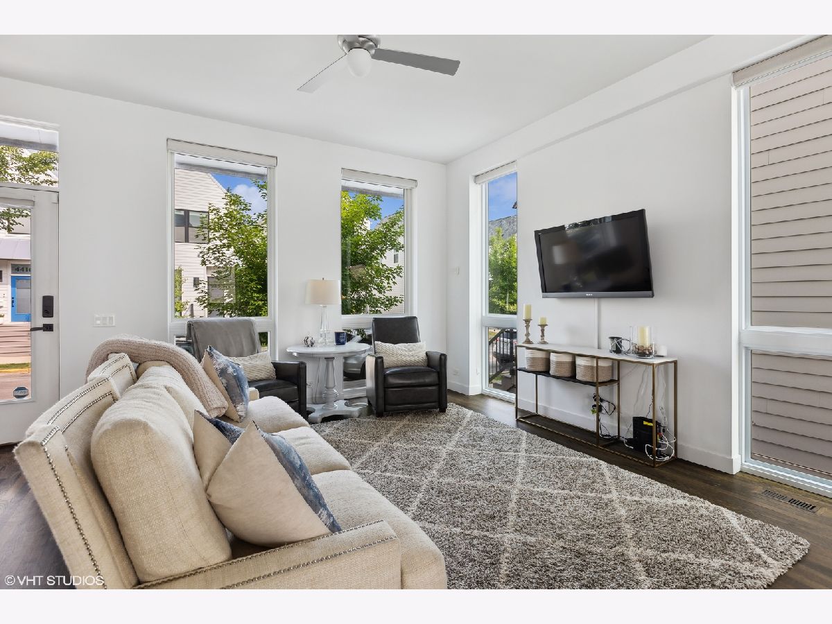Look no further, this stunning 2017 built Irving Park home has it all. This modern farmhouse style home boasts 4 bedrooms, 3.5 bathrooms, two separate living areas and a 2-car garage. Upon entering, you'll be greeted by an open concept living room layout with hardwood floors, flooded with natural light streaming through the expansive windows. The kitchen, thoughtfully designed with quartz counters, a stylish backsplash, all stainless steel appliances and ample pantry storage. There is also a half bathroom is located on the main floor. Upstairs you'll discover three bedrooms, including a primary suite with a convenient walk-in closet and en-suite bathroom with a spa like standup shower. Additionally, there are two additional full bedrooms and another modern full bathroom upstairs. The Whirlpool washer and dryer are conveniently located upstairs as well. The lower level has a generously sized family room with excellent storage options, alongside a spacious fourth bedroom and a full bathroom, providing flexible living arrangements. High ceilings across all levels including the basement makes the space especially inviting. The charming backyard is ideal for dining, grilling, and enjoying the natural gas fire-pit. The 2-car garage was built extra tall for additional storage space. The location of this home couldn't be more convenient for commuters, with the Metra right around the corner and Irving Park Blue line less than a mile away, and easy access for 90/94. This unique 'Basecamp' development includes their own park, dog run and even provides sidewalk and back alley snow shovelling.