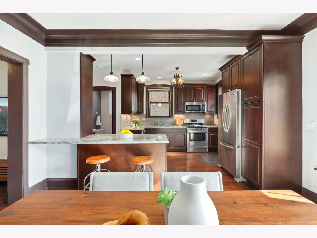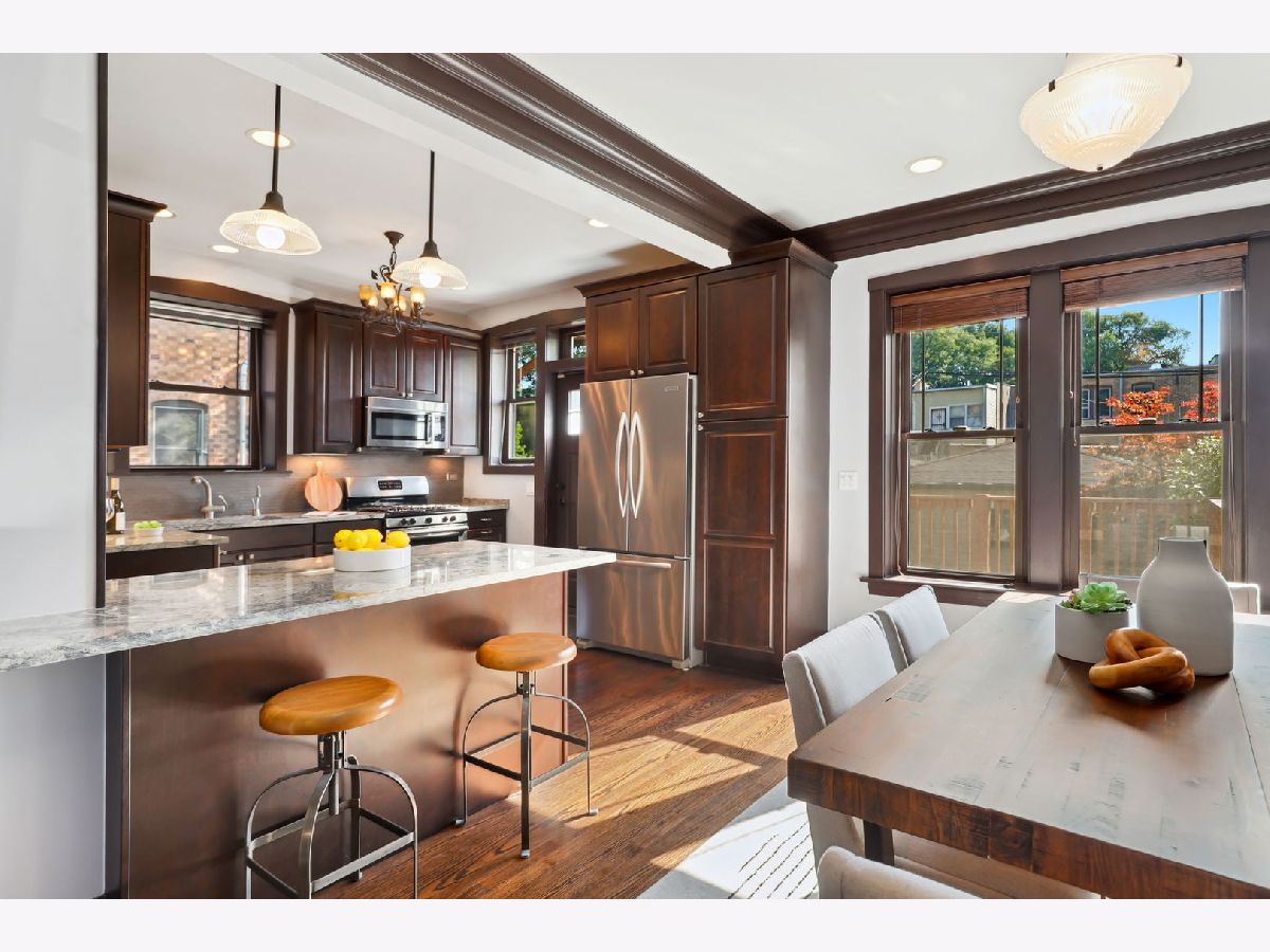 This one checks all the boxes! Welcome to this picture perfect all-brick home on a premiere block of highly sought-after Ravenswood Manor. This incredible home, originally built in 1914, has been completely transformed with timeless and thoughtful improvements. Completely Rebuilt in 2013 with many upgrades by the current owner, this is the move-in ready home you have been waiting for. The main floor is entirely living/entertaining space with high ceilings, a beautiful hardwood floors, crown molding, lovely flow between the entry foyer, living room, dining room, kitchen, plus powder room. The kitchen features abundant custom cabinetry, granite counters, stainless steel appliances and peninsula for additional seating and storage. Both the formal dining room and kitchen overlook the beautiful fully fenced-in backyard with deck and brick patio. Ideal layout on second level featuring 3 bedrooms, 2 full bathrooms. The primary suite boasts a beautiful shower, double sinks and custom built-out closets. Second bathroom is beautifully updated with double sinks and a bathtub. Custom window treatments and hardwood floors throughout the first and second levels. The lower level with 8 foot ceilings offers a fourth bedroom, full bathroom, family room, spacious laundry room with a sink and full-size Whirlpool washer/dryer, plus an additional storage room. Dual HVAC and AC condensers replaced in 2023/2024. Large detached 2.5-car garage. Just a block away from one of Chicago's largest parks, Horner Park! Also nearby popular Water's Elementary, Wells Park, River Park, and world class dining and shopping in Lincoln Square and Albany Park.