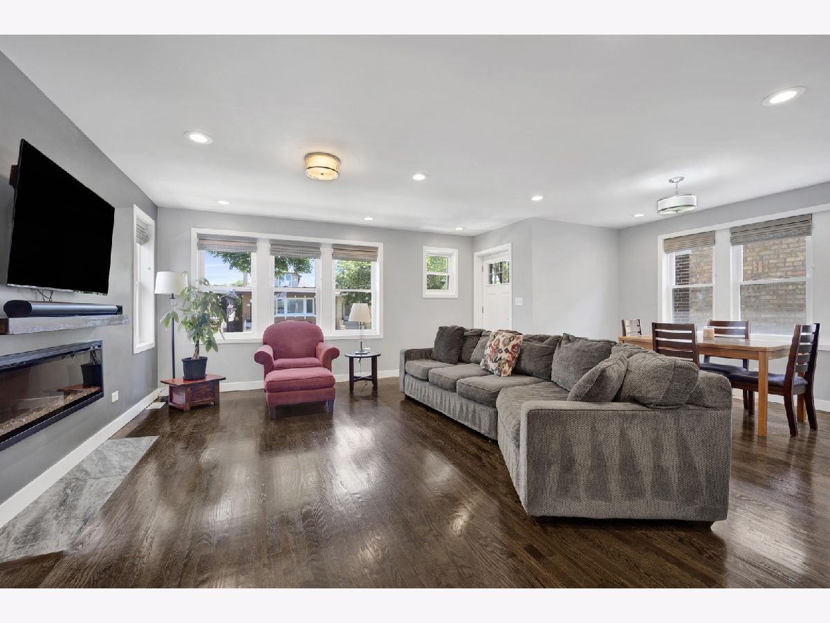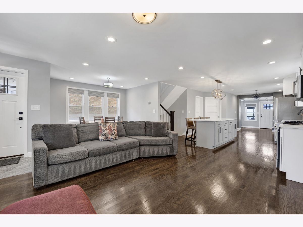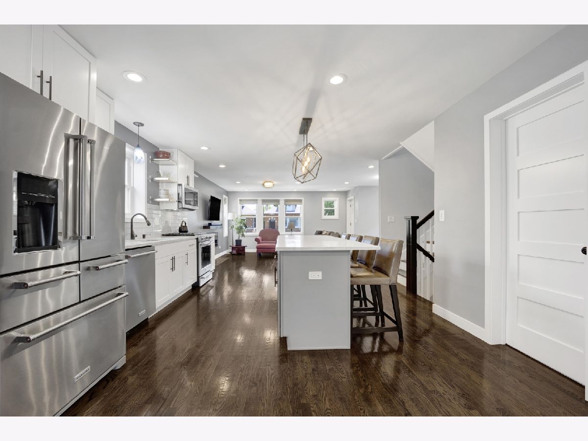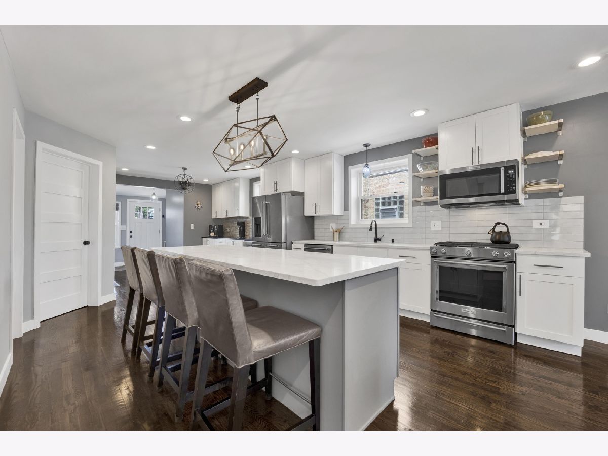 Stunning Renovated Bungalow in Portage Park - Introducing a beautifully rehabbed bungalow on an oversized lot, located on a quiet, tree-lined street in the heart of Portage Park. This spacious home features 4 bedrooms and 4 elegantly designed bathrooms, offering the perfect blend of classic charm and modern luxury. Step inside to an open-concept main level with a bright and airy living room that seamlessly flows into a chef's dream kitchen, complete with top-of-the-line stainless steel appliances, custom white cabinetry, quartz countertops, elongated subway tile backsplash, and a massive island with breakfast bar seating. Adjacent to the kitchen, you'll find a stylish dining area and a custom-designed coffee bar/butler's pantry including a wine fridge-ideal for entertaining. The main floor also includes one spacious bedroom, a full bathroom, and direct access to a maintenance-free Trex deck, perfect for relaxing or hosting guests. Upstairs, you'll find three generous bedrooms and two full bathrooms, including a luxurious primary suite with a private bath including designer finishes. The fully finished basement offers exceptional flexibility with a large family room, separate sleeping space, the perfect space for a wine cellar, bonus room, full bathroom, laundry room, and abundant storage. Additional highlights include a 2-car garage, electric fireplace in the main living room, waterproof luxury vinyl plank flooring in the lower level, new gutters in 2023, party door on garage, new security doors on the front and back of the house, and meticulous attention to detail throughout. Just minutes to the expressway, restaurants, and everything beautiful Portage Park has to offer!