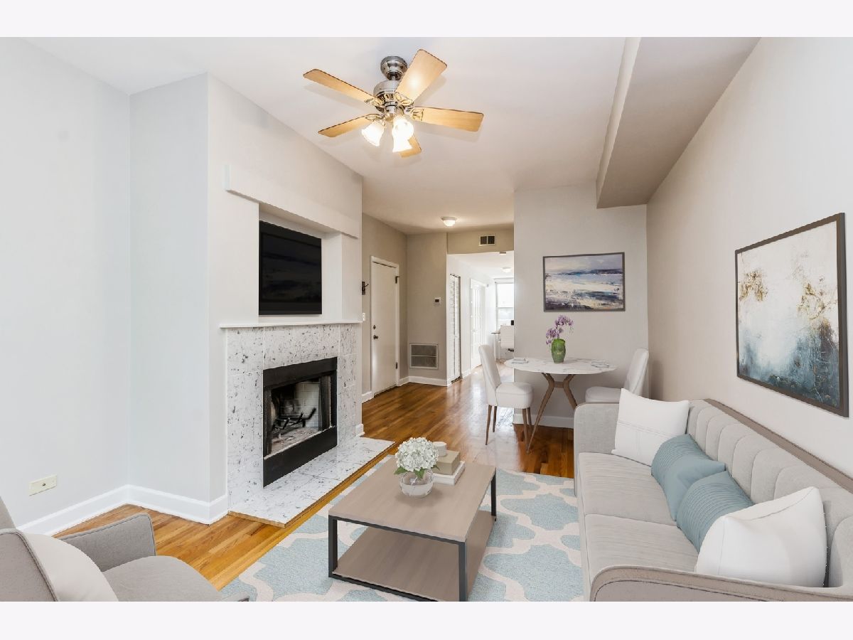 Sun filled top floor unit with loads of charm. Spacious living/dining room combo full of windows. Wood burning fireplace with marble surround. Hardwood floors. Large bedroom with great closet space. Bright den/guestroom. In unit washer/dryer. Central Air. Gas forced heat. Freshly painted throughout. Extra storage. Bike room. Back deck for grilling. Amazing location - Horner Park and River Walk around the corner. Close to brown line. Short walk to Welles Park and Lincoln Square shops and restaurants. Parking included!