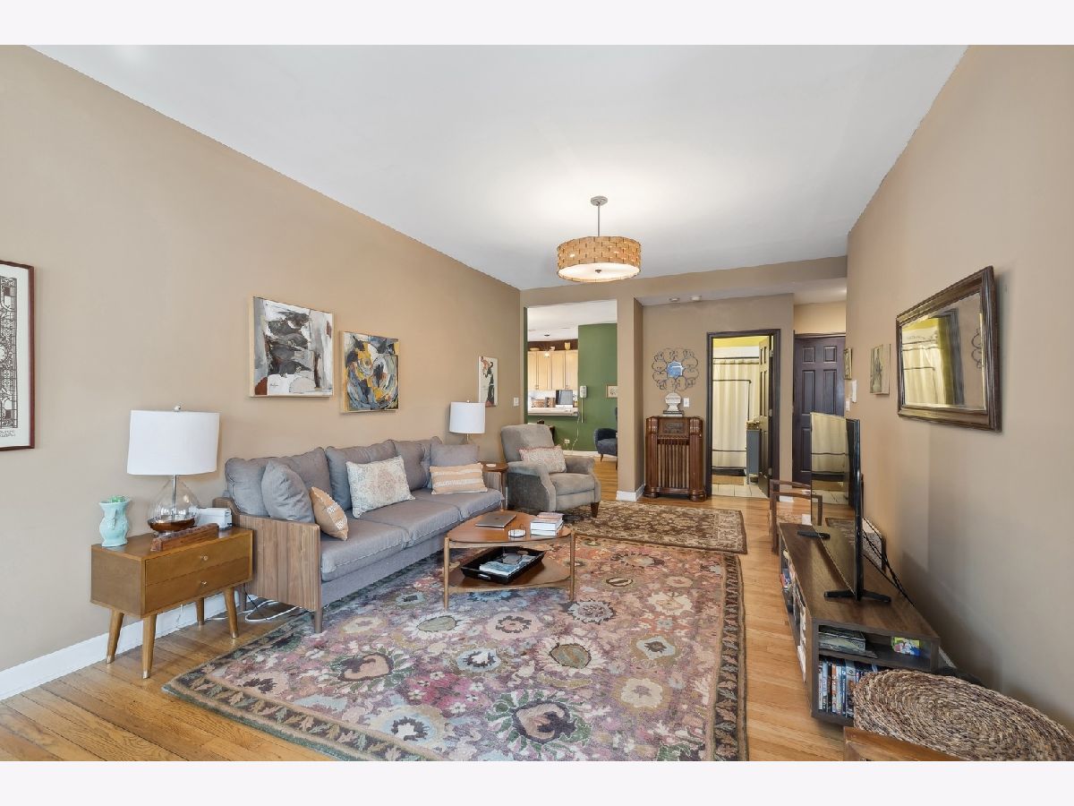Welcome to a classic Chicago courtyard setting on a beautiful, quiet, tree-lined street on the border of Ravenswood Manor and East Albany Park! The high 2nd floor is drenched with light from N, S and W exposures and loaded with charm! An enormous living room/sunroom combo offers an array of possibilities. The thoughtful, open flow allows for no wasted space. All rooms are generously sized and the 2 bedrooms are split for maximum privacy. The separate dining room will accommodate all of your entertaining dreams and leads to a breakfast bar/peninsula and HUGE kitchen with 42" maple cabinetry and a full stainless steel appliance package. Hardwood floors run throughout the home with the exception of ceramic tile in the kitchen. In-unit washer/dryer, great closet space and 4 window air conditioning units are included! Assessments that include heat, a storage locker and shared deck space are all added bonuses. Located steps from great restaurants, shopping and nightlife! Take a short walk and enjoy everything Lincoln Square and Horner Park have to offer. The Fransisco Brown Line stop is less than a half mile away!