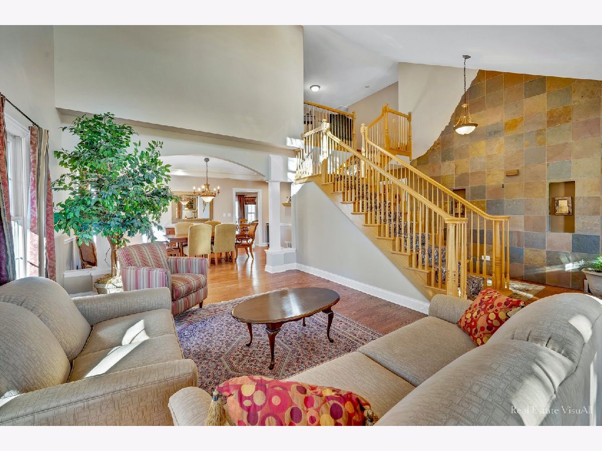 Custom Built Bartlett Beauty in the center of all you need! This 6 bedroom home has two full baths and three powder rooms as well as a full finished basement with tons of custom finishes. A two story foyer has a slate tile accent wall with decorative niches, hardwood flooring and an oak staircase. It opens to a sun filled formal living room with soaring ceilings, hardwood flooring and 2nd story transom. Off the living room is a formal dining room which offers a coffered ceiling with can lighting, hardwood flooring, chair rail, floor to ceiling windows and a butler counter with wine fridge. A spacious kitchen has an entry off the dining room and boasts a soaring ceiling, 42" cabinets with crown moulding and custom built-ins, can lighting, decorative lighting, granite counters with inlay dual bowl stainless steel sink, ceramic tile backsplash, a breakfast bar island with drawer and cabinet storage, table space with slider to deck, top of the line stainless steel appliances and it opens to the two story family room. The family room sparkles with hardwood flooring, brick surround fireplace with two story windows on both sides, can lighting, lighted ceiling fan and glass French doors to an office space. A laundry/mud room boasts over appliance cabinet storage, folding counter, utility sink, mop closet, ceramic tile flooring and an exterior entry. A powder room finishes off the main floor plan. The 2nd floor opens with a loft area to the master suite with vaulted ceiling, lighted ceiling fan, hardwood flooring, neutral decor, gigantic walk-in closet and spacious private bath. The bath sparkles with ceramic tile flooring, dual bowl vanity, glass and tile surround multi-head shower with sitting bench. three additional bedrooms have neutral decor, very large closets and plush carpeting. One has access to it's own powder room which can also access the full bath that has hall access. A full finished basement offers a whole additional living space to include a rec room with wet bar including wine fridges, a game room, powder room, storage room, utility room and two more spacious bedrooms with generous closet space. All this on a lot that is just under a quarter acre and minutes from the Metra station and downtown Bartlett area shops. Other features of this home include a wrap around front porch, vinyl deck, brick fire pit, 3 car garage and so much more. THIS GILES CT GEM won't be last long so book your appointment now!