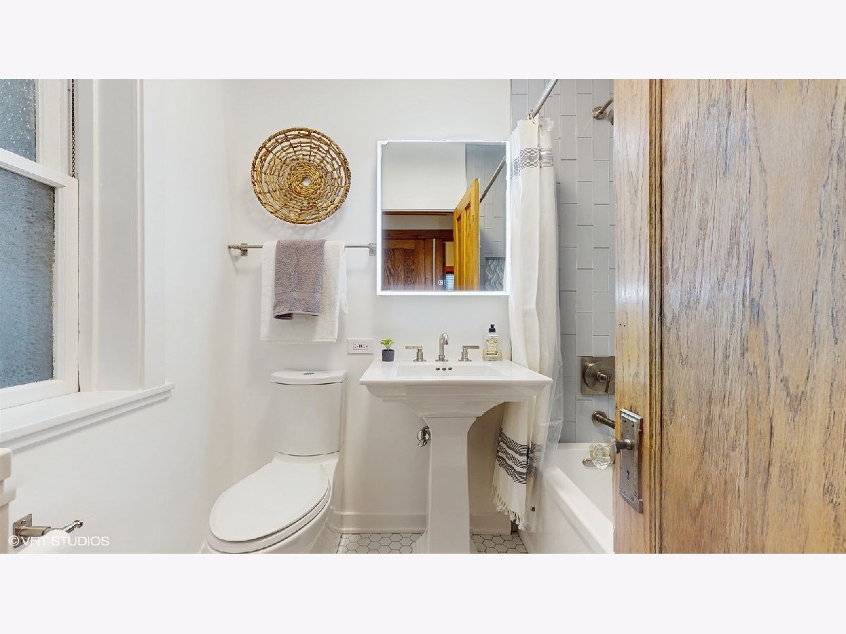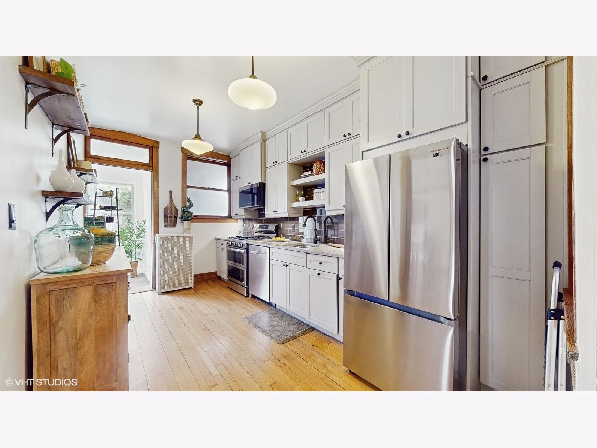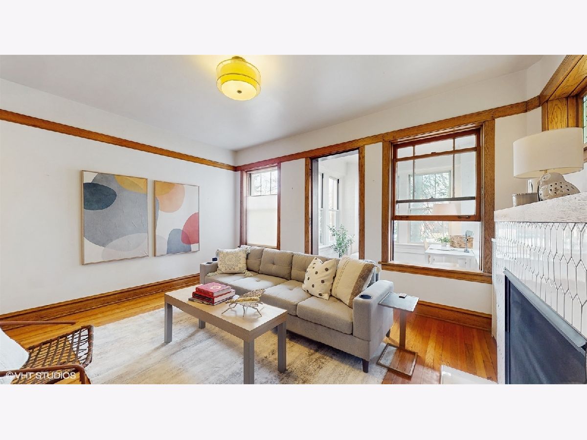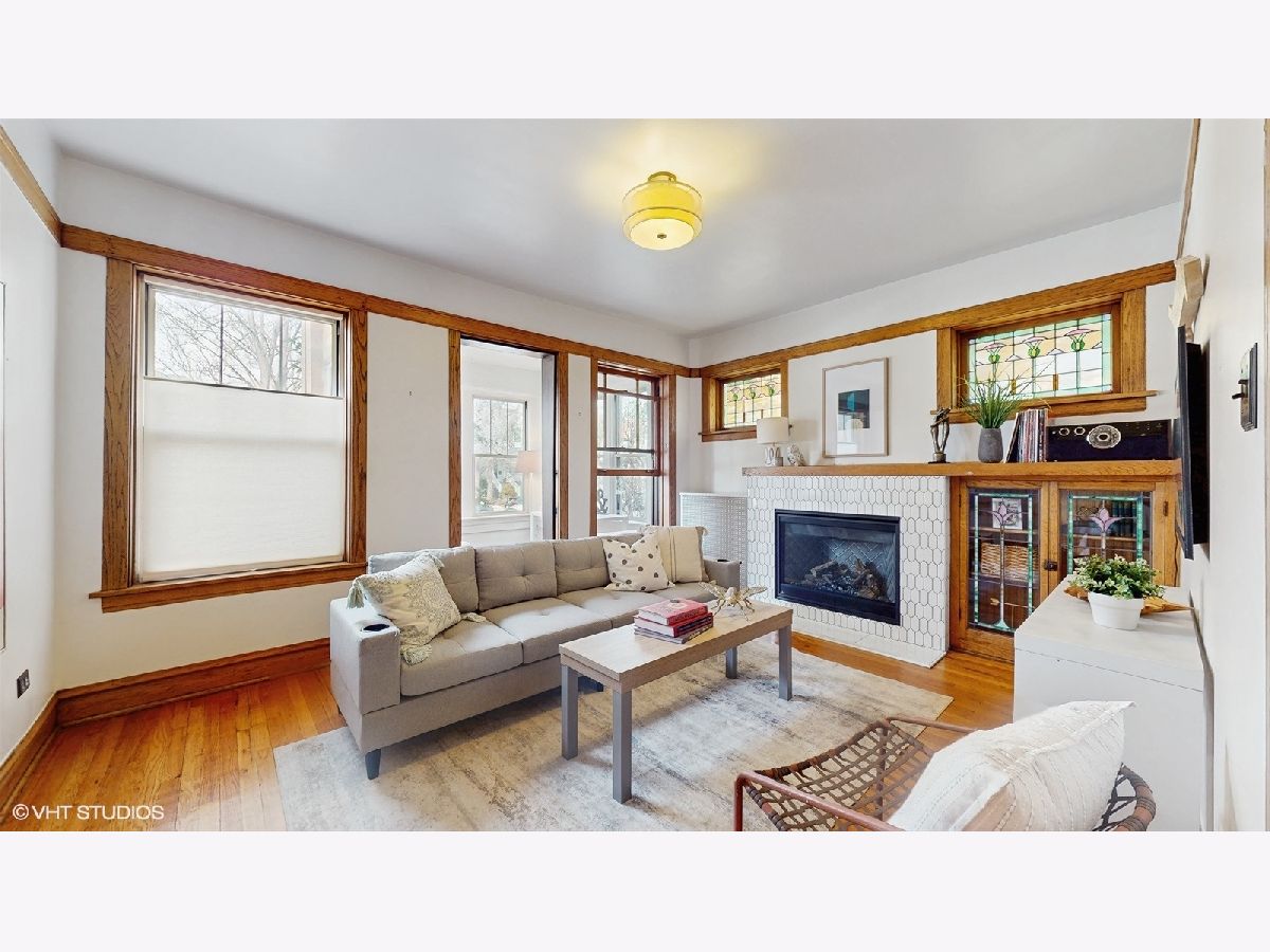 Located on gorgeous tree-lined Hermitage, this beautiful vintage 2BR/1BA home blends classic charm of original stained glass and natural wood trim with modern updates. This unit stands out with its extensive upgrades: recent (2025) full bathroom gut remodel (to the studs) with Kohler and Studio McGee fixtures, new (2025) gas range double oven and microwave, newer (2024) Bosch dishwasher, garage door opener (2023), and the new (2023) gas log fireplace with herringbone insert and picket tile surround add style and warmth to the light-filled sunroom and living room. The layout provides options including flexing the dining room to a tv room or den while the back sunroom is a great dining space overlooking the yard. The building has been meticulously maintained, featuring a newly refurbished boiler and recently serviced radiators (2025), brand-new siding (2024) and new dual hot water heaters (2024). Located in-boundary and just one block from Ravenswood Elementary, it's also a short walk to Montrose Brown Line stop and the Ravenswood Metra. Just 1 mile from both Lincoln Square or the Southport Corridor, this condo has unbeatable access to some of Chicago's best neighborhood shopping, coffee, eats, parks, theaters, services and public transit. A large, extra deep, double-wide (50X165), shared grass yard with gardening opportunities and a private, deeded garage spot complete the unit. Additionally, easy non-permit street parking due to its location on a low-density street of mostly single family homes. Don't miss out on this rare opportunity to own a beautifully updated home in an unbeatable location!