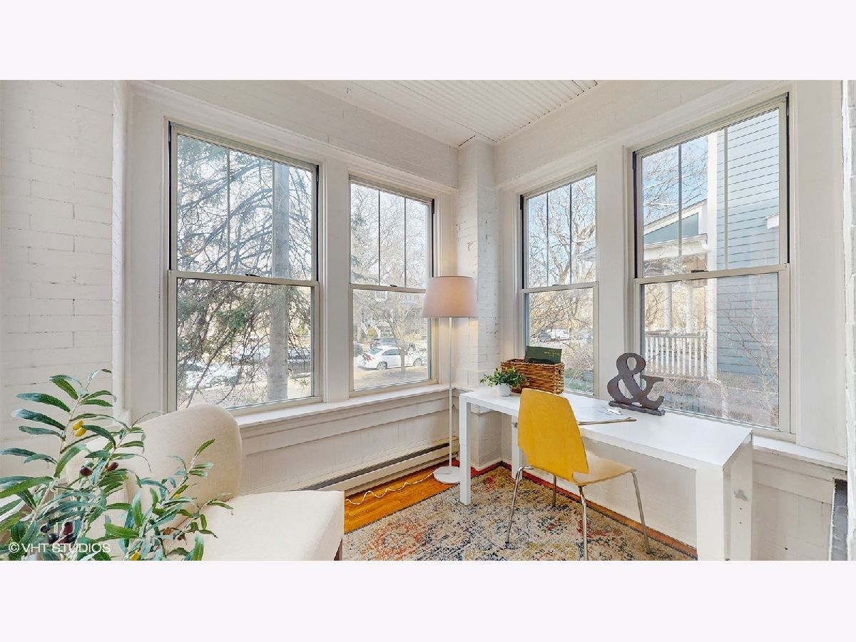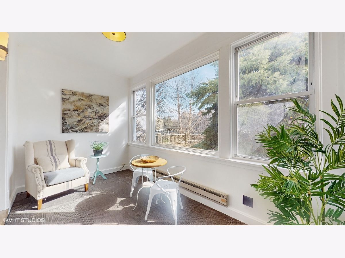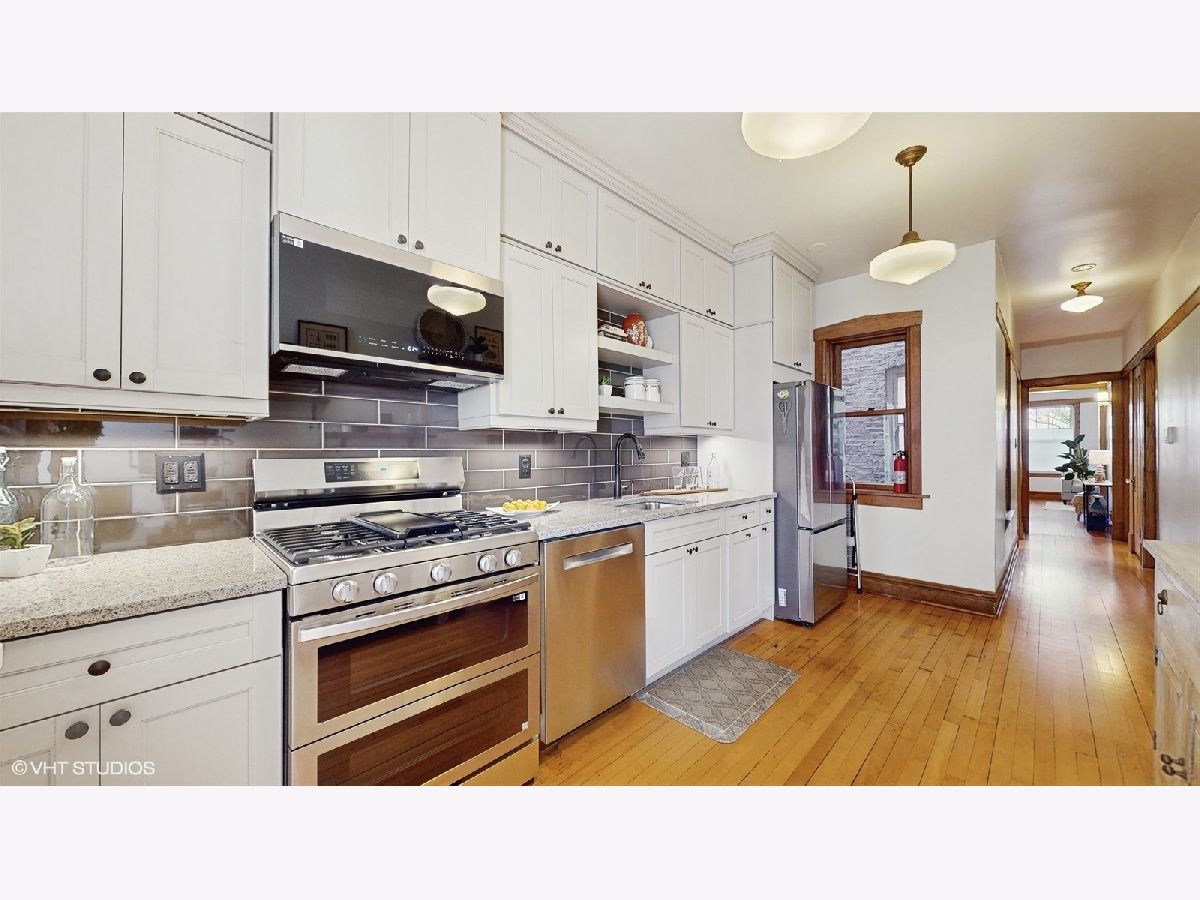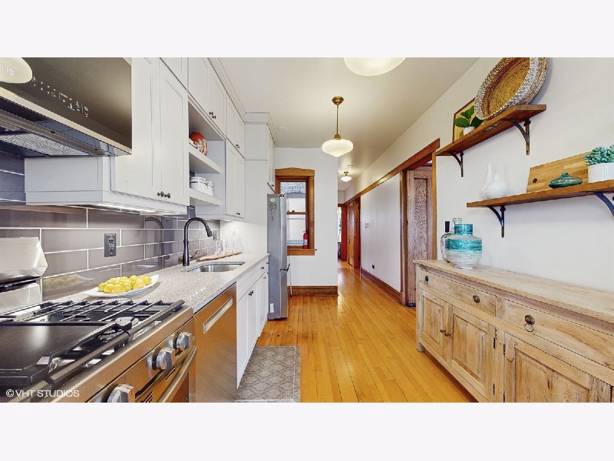 Located on gorgeous tree-lined Hermitage, this beautiful vintage 2BR/1BA home blends classic charm of original stained glass and natural wood trim with modern updates. This unit stands out with its extensive upgrades: recent (2025) full bathroom gut remodel (to the studs) with Kohler and Studio McGee fixtures, new (2025) gas range double oven and microwave, newer (2024) Bosch dishwasher, garage door opener (2023), and the new (2023) gas log fireplace with herringbone insert and picket tile surround add style and warmth to the light-filled sunroom and living room. The layout provides options including flexing the dining room to a tv room or den while the back sunroom is a great dining space overlooking the yard. The building has been meticulously maintained, featuring a newly refurbished boiler and recently serviced radiators (2025), brand-new siding (2024) and new dual hot water heaters (2024). Located in-boundary and just one block from Ravenswood Elementary, it's also a short walk to Montrose Brown Line stop and the Ravenswood Metra. Just 1 mile from both Lincoln Square or the Southport Corridor, this condo has unbeatable access to some of Chicago's best neighborhood shopping, coffee, eats, parks, theaters, services and public transit. A large, extra deep, double-wide (50X165), shared grass yard with gardening opportunities and a private, deeded garage spot complete the unit. Additionally, easy non-permit street parking due to its location on a low-density street of mostly single family homes. Don't miss out on this rare opportunity to own a beautifully updated home in an unbeatable location!