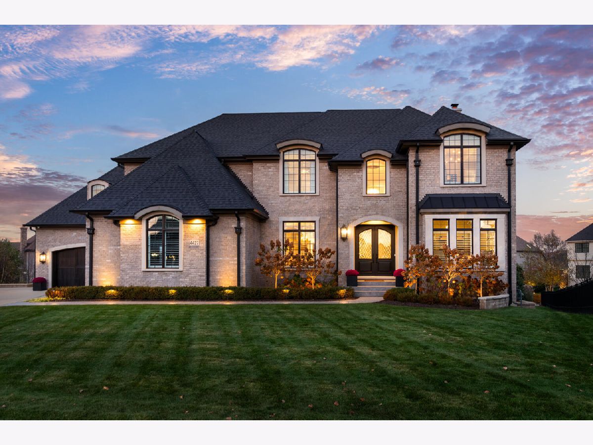 This distinctive residence offers a TURN-KEY lifestyle opportunity found nowhere else. Built in 2018 and crafted with meticulous attention to detail, this 4-sided all-brick home is set on a .6-acre quiet circle with its own backyard oasis. Over 250K in extensive hardscape, including a captivating entertaining pavilion with an outdoor kitchen, fireplace, and a large screen TV. Multiple patios for outdoor gatherings and year-round recreation on the full-size sports court designed to double as an ice skating and hockey rink during the winter months. On the interior, over 5000SF above grade feature stunning designer finishes, Restoration Hardware lighting, 10-foot ceilings, 8-foot doors and 5" oak hardwood floors throughout. The striking kitchen is designed with custom Brakur full-inset cabinetry, Thermador professional-grade appliances, and quartz counters. There is both a walk-in and butler pantry connecting to the glamorous dining room. 11-foot ceilings and a wall of windows provide a panoramic view of the yard and define the open-plan family room. There is a first-floor in-law suite, additional half bath, spacious private office and well-designed mudroom leading to the 4-car heated garage. The second level features 5 bedrooms (a Jack and Jill and three additional en-suites). The primary suite features an elegant spa bath and an enviable Inspired-designed walk-in closet. An impressive second floor laundry and additional walk-in storage closet provide high function for this well-organized home. Smart Features include extensive exterior lighting, garage doors, security system, zoned dual-HVAC, and an 11-zone irrigation system. A 10-foot-deep pour basement with rough-in plumbing is designed as a multi-purpose recreation, gym and play space as well as future finished living space. This home is in the Prestigious Ashwood Park Pool and Tennis community attending highly acclaimed Naperville District 204 schools. This is truly a magnificent home offering a rare move-in ready lifestyle opportunity.