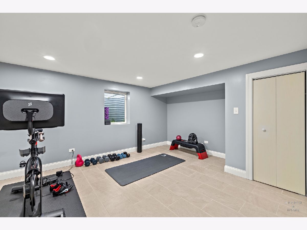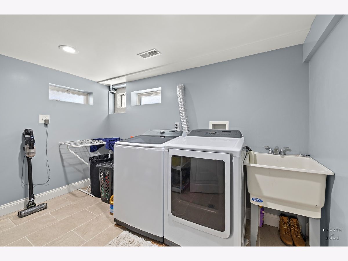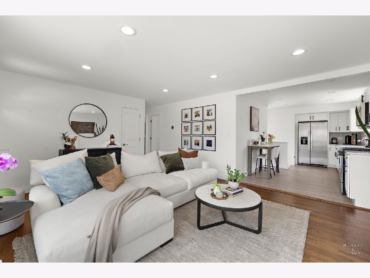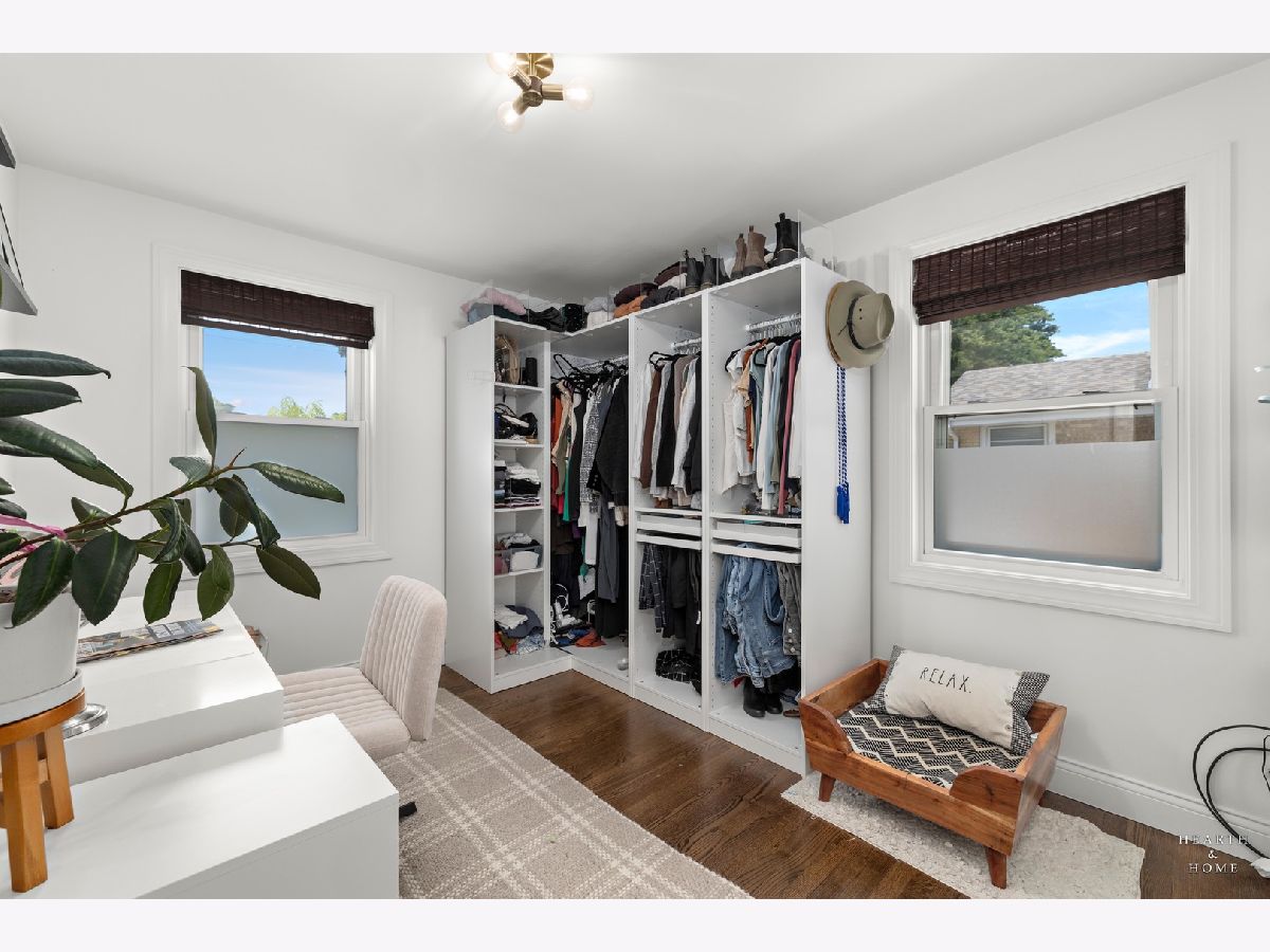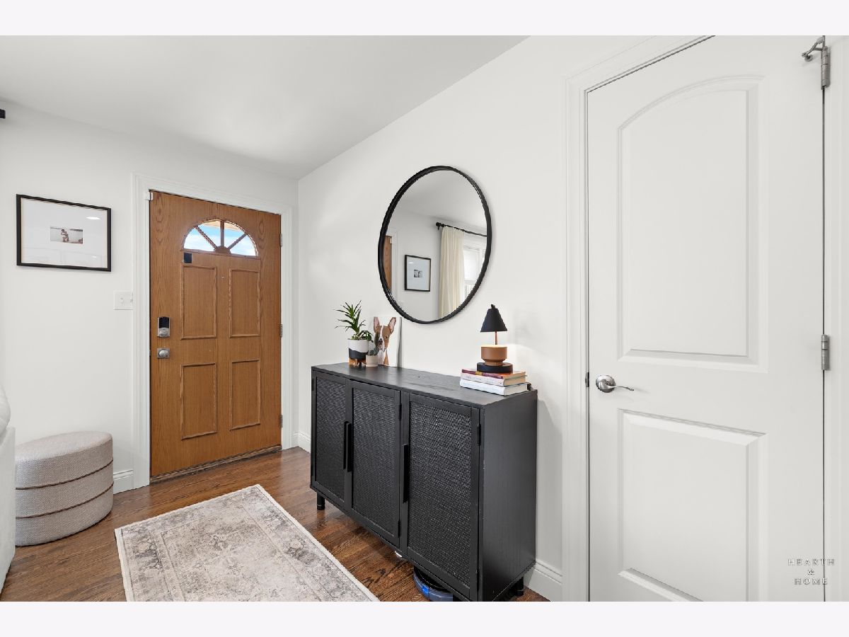 Superbly renovated 4 bedroom home with 2 full bathrooms and an oversized 2.5 car garage. Great bright and open ranch floor plan with high end finishes. Hardwood floors, updated lighting, and newer LVP flooring in remodeled kitchen and finished basement. Gorgeous kitchen is highlighted by stainless steel appliances, new hardware, beautiful tile backsplash, and an efficient eat-in area. One bedroom and bathroom in the basement in addition to a great rec room, fitness area, laundry room, and storage space. Spacious primary bedroom and one bedroom currently being utilized as a home office. Updated bathroom features white marble tile and a glass shower. Nice fenced backyard perfect for cookouts and entertaining. Tons of recent updates. NEW concrete driveway, new roof on house and garage, new attic ventilation, new insulation. High-efficiency HVAC system. Newer windows. Custom shades stay. Enjoy the convenience of easy interstate, Metra and O'hare access, while still enjoying peace and quiet inside your beautiful home, thanks to great soundproofing!