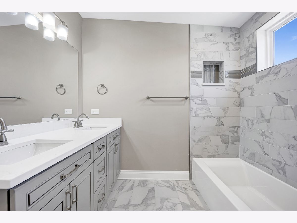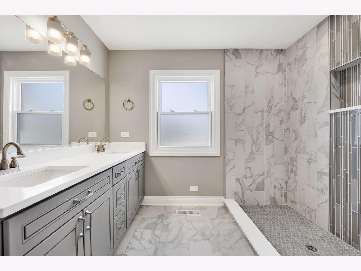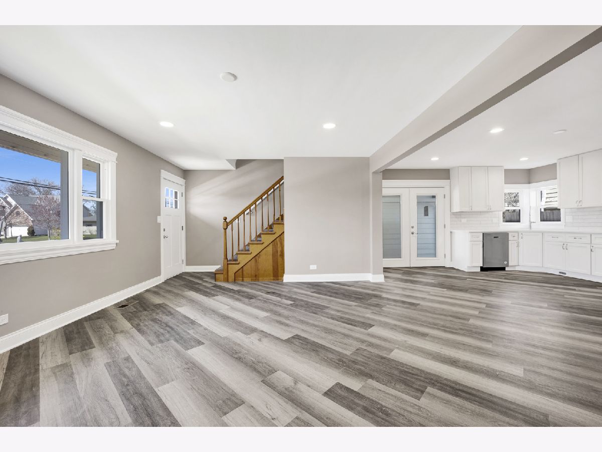 Welcome to your new home in the heart of Downers Grove! Step inside this stunning, fully renovated gem and be amazed by the open-concept layout. The spacious living room seamlessly flows into the stylish kitchen/dining combo. The kitchen is a dream with sleek white linen cabinets, granite countertops, chic tile backsplash, and stainless steel appliances. Imagine basking in the morning sunlight flooding through the windows. Both bathrooms are meticulously updated with elegant gray and white ceramic tiles, adding modern sophistication to your daily routine. The first-floor bedroom boasts a walk-in closet for ample storage. Upstairs, find two more bedrooms and a brand-new bathroom for family comfort. Outside, a detached 2-car garage is connected by a charming breezeway, keeping you dry on rainy days. Plus, there's a full, unfinished basement offering endless possibilities for your creativity. Whether it's a cozy movie den, vibrant game room, or serene home gym, make it yours! Conveniently located near schools, parks, and the commuter train, this home blends style, comfort, and functionality. Don't miss your chance to make it yours-schedule a viewing today!
