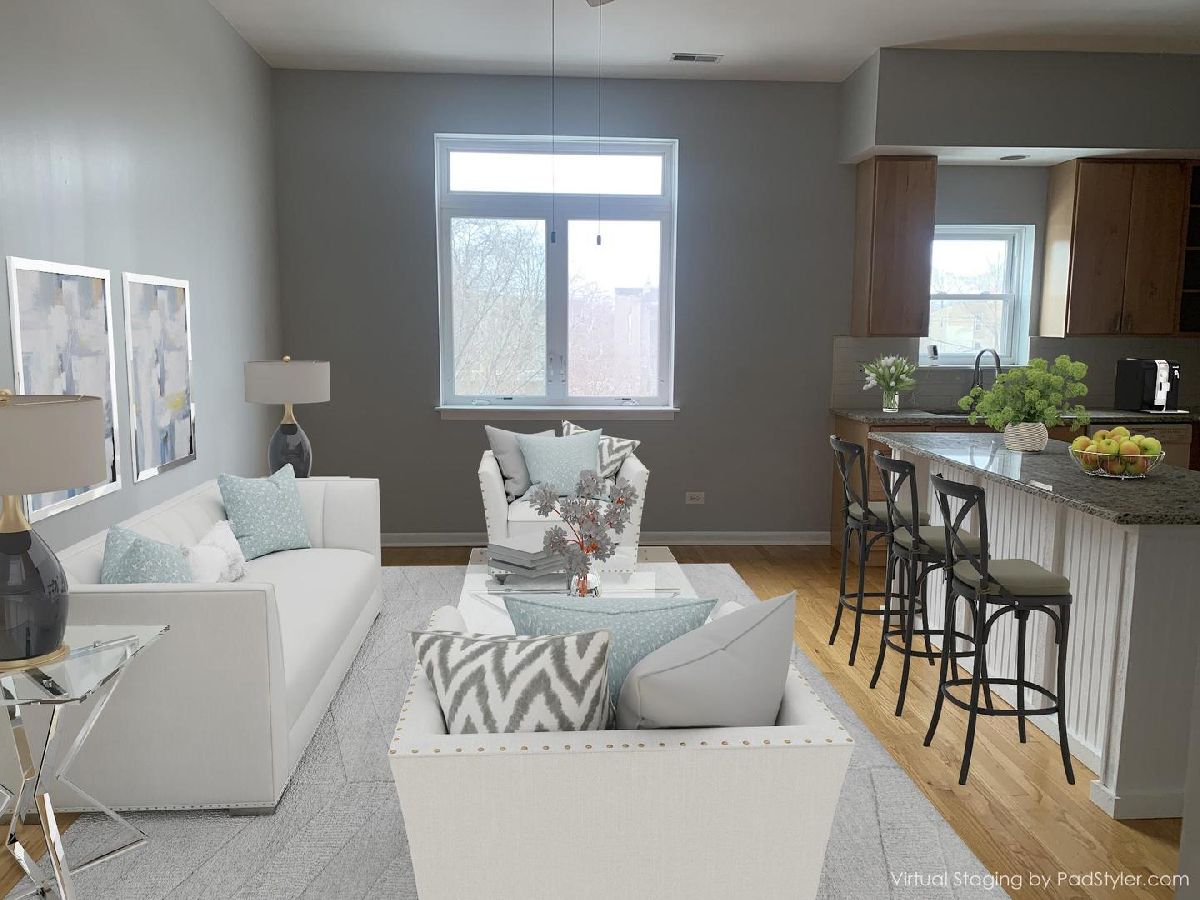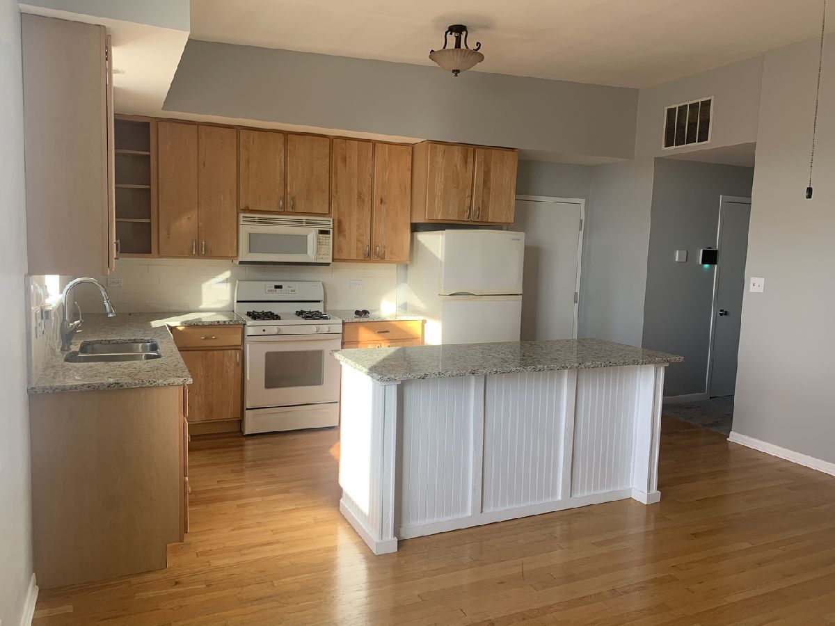 Beautiful and spacious 3 Bedroom 2 Bath Condo located in the Bronzeville neighborhood. This third floor unit has a large master bedroom suite/ full master bedroom bath w/double vanity sinks. There are two additional bedrooms with the third bedroom currently used as a den/office space perfect for distant learning or home office setting. Open concept living room/kitchen is divided by a large island for additional seating and entertaining. Plenty of closets plus additional storage space are included. OTHER FEATURES INCLUDE: Granite Counters, New Sinks, Vanity and Subway Tile Backsplash. In-unit washer and dryer, new carpet, 1 car garage space and gated entrance make this condo a home. New construction right across the street, not far from expressway and public transportation.