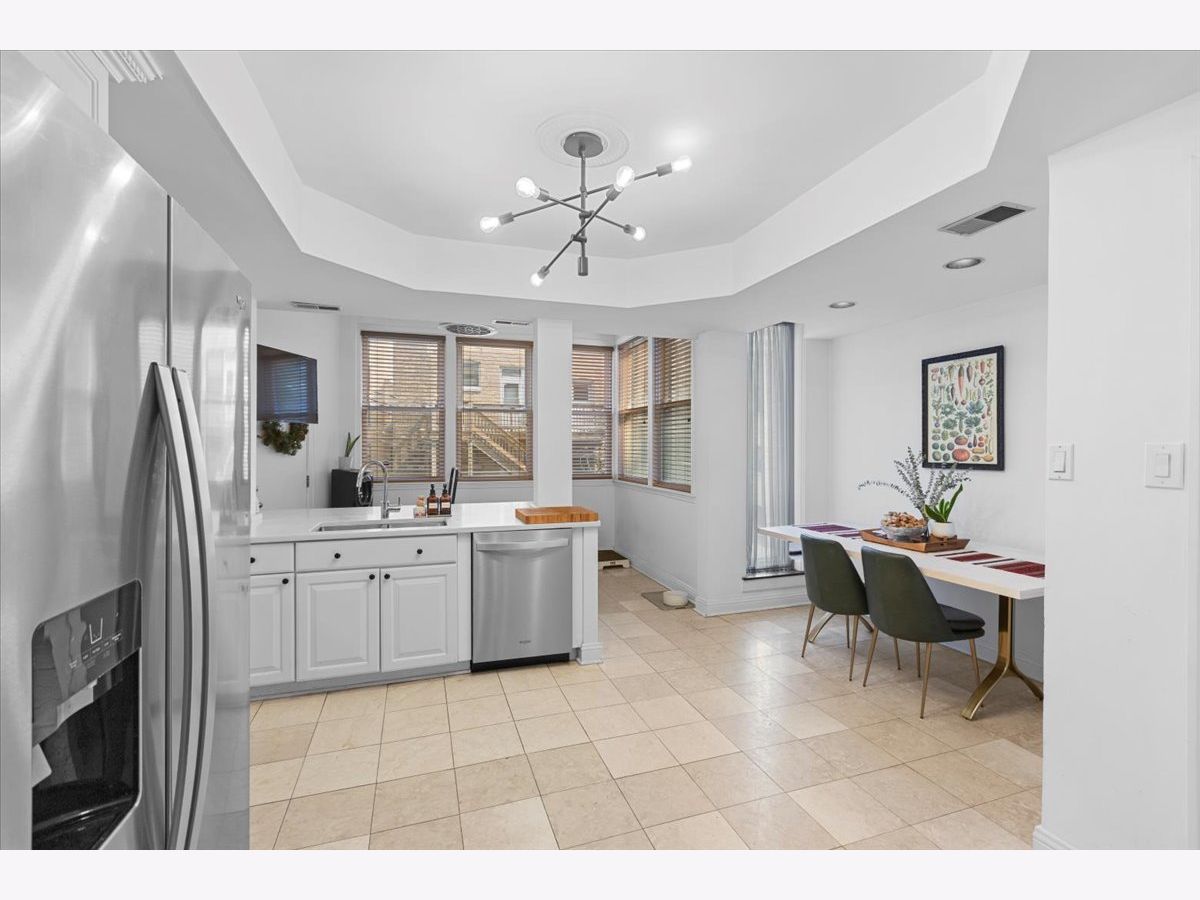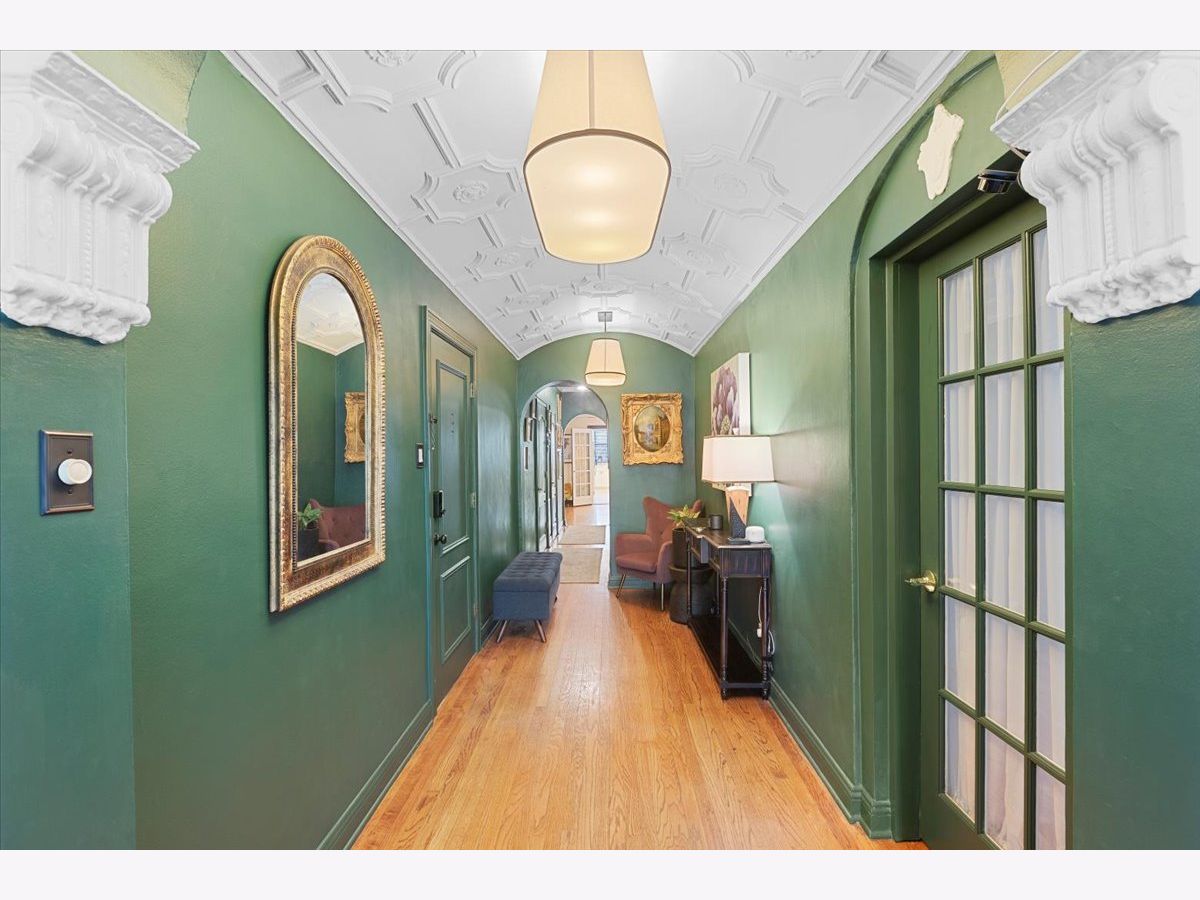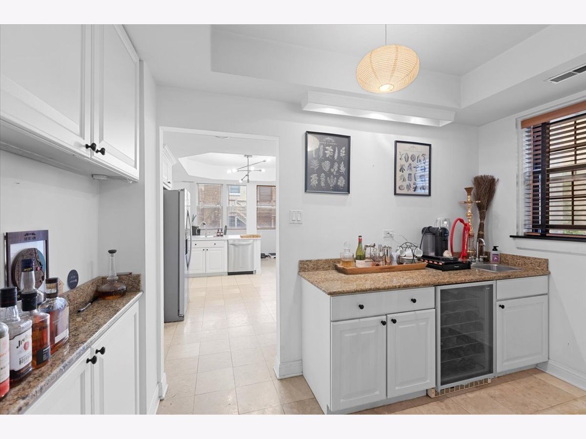 Vintage charm meets modern design creating a one of a kind 2 bedroom/2 bath home. Features include a barrel vaulted foyer ceiling with original detailing, expansive living room with decorative fireplace that flows into a spacious formal dining room ideal for dinner parties, butler's pantry with wet bar and storage, beautifully renovated 2019 open kitchen with all white cabinetry, polished quartz counters, and lounge area. The generous primary bedroom with coffered ceiling and en-suite bath has a whirlpool tub, sparkling white fixtures and stone tiles. An enormous second bedroom allows for additional occupants, an oversized home office/library or music/game room. Fine honey toned hardwood flooring, arched doorways, high ceilings, custom upgraded light fixtures, crown molding, wood blinds, extra storage locker and in unit laundry. Just 2 residences per floor offers ultimate privacy. Boutique pre-war elevator building where you can relax with your guests on the inviting common sundeck. Premier East Lakeview location close to the finest shopping, commuter buses, Red/Brown/Purple lines, Divvy bike station, lush parks, Belmont Harbor and the lakefront. Transferable rental parking available next to 444.