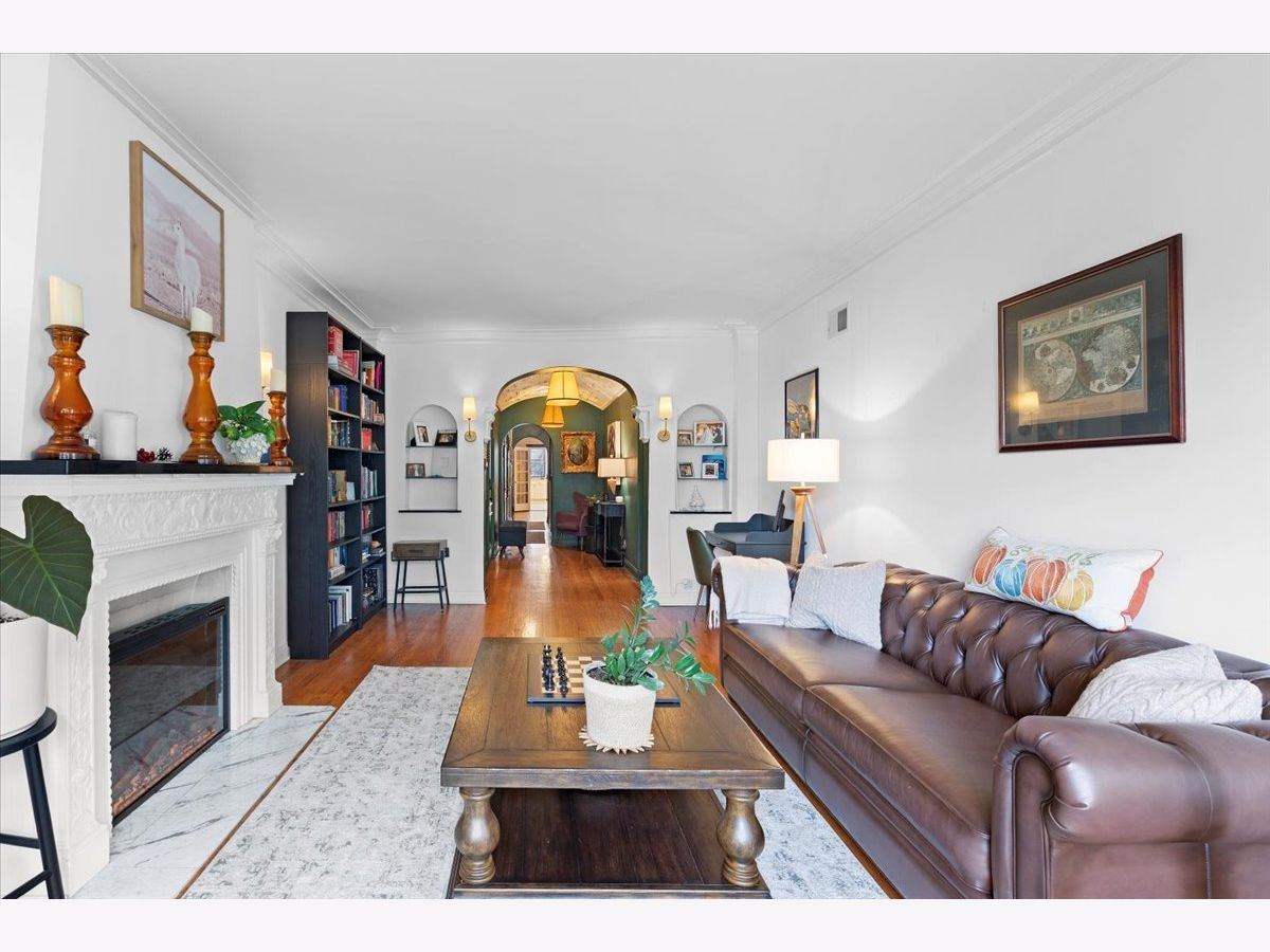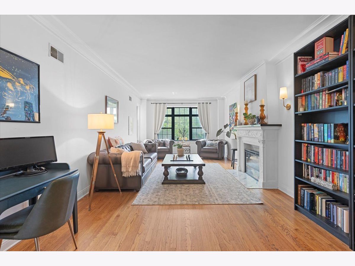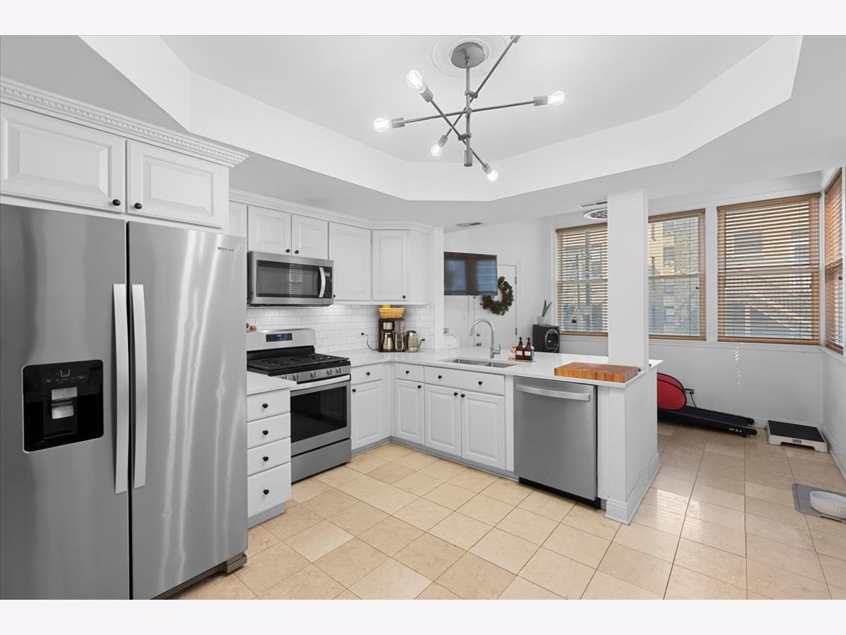 Vintage charm meets modern design creating a one of a kind 2 bedroom/2 bath home. Features include a barrel vaulted foyer ceiling with original detailing, expansive living room with decorative fireplace that flows into a spacious formal dining room ideal for dinner parties, butler's pantry with wet bar and storage, beautifully renovated 2019 open kitchen with all white cabinetry, polished quartz counters, and lounge area. The generous primary bedroom with coffered ceiling and en-suite bath has a whirlpool tub, sparkling white fixtures and stone tiles. An enormous second bedroom allows for additional occupants, an oversized home office/library or music/game room. Fine honey toned hardwood flooring, arched doorways, high ceilings, custom upgraded light fixtures, crown molding, wood blinds, extra storage locker and in unit laundry. Just 2 residences per floor offers ultimate privacy. Boutique pre-war elevator building where you can relax with your guests on the inviting common sundeck. Premier East Lakeview location close to the finest shopping, commuter buses, Red/Brown/Purple lines, Divvy bike station, lush parks, Belmont Harbor and the lakefront. Transferable rental parking available next to 444.