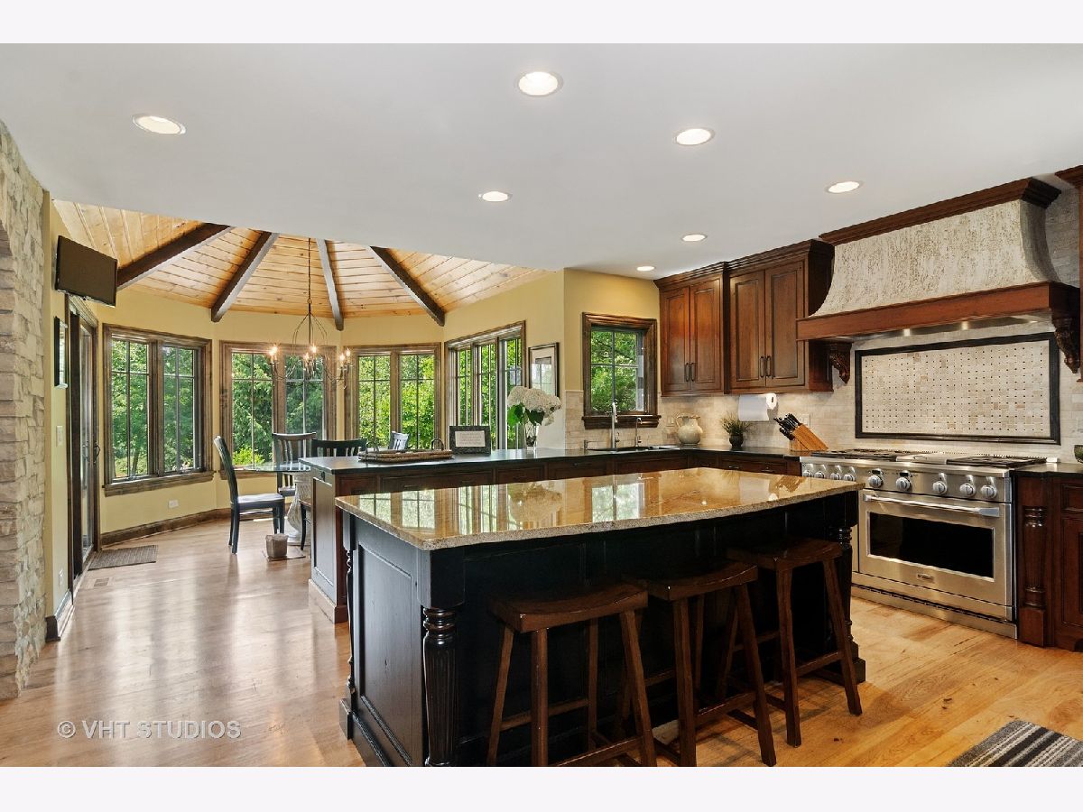 IMPECCABLY MAINTAINED, WELL APPOINTED, EXECUTIVE BUILT, CUSTOM HOME describes this magnificent property, both interior and exterior. Situated on a gorgeous, 1.85 acre wooded lot with fantastic views and a bubbling pond. This property has undergone a complete professional architectural remodel by Bob Mifflin in 2012 and is simply amazing! Designed to bring nature right into your home, there is a 3 season porch with a full, 2 sided stone fireplace and soaring windows to expose the views from every room. 1st floor master suite is a dream with luxury bath, heated floors, soaking tub & double shower. New Chef's kitchen with stainless steel, top of the line appliances: GE Monogram cooking range, 6 burner w/griddle, microwave & warming drawer. New matching custom iron work chandeliers in the foyer, family room and kitchen. Fall in love with the vaulted, solid beamed ceiling, wine bar & 2-sided fireplace. New roof, hot water heaters, energy efficient windows, Character Knotty Alder doors, 6" plank hickory flooring, custom hardware & lighting throughout. Minutes from the tollway interchange, METRA, shopping, dining, schools and park. Don't miss this fabulous property.