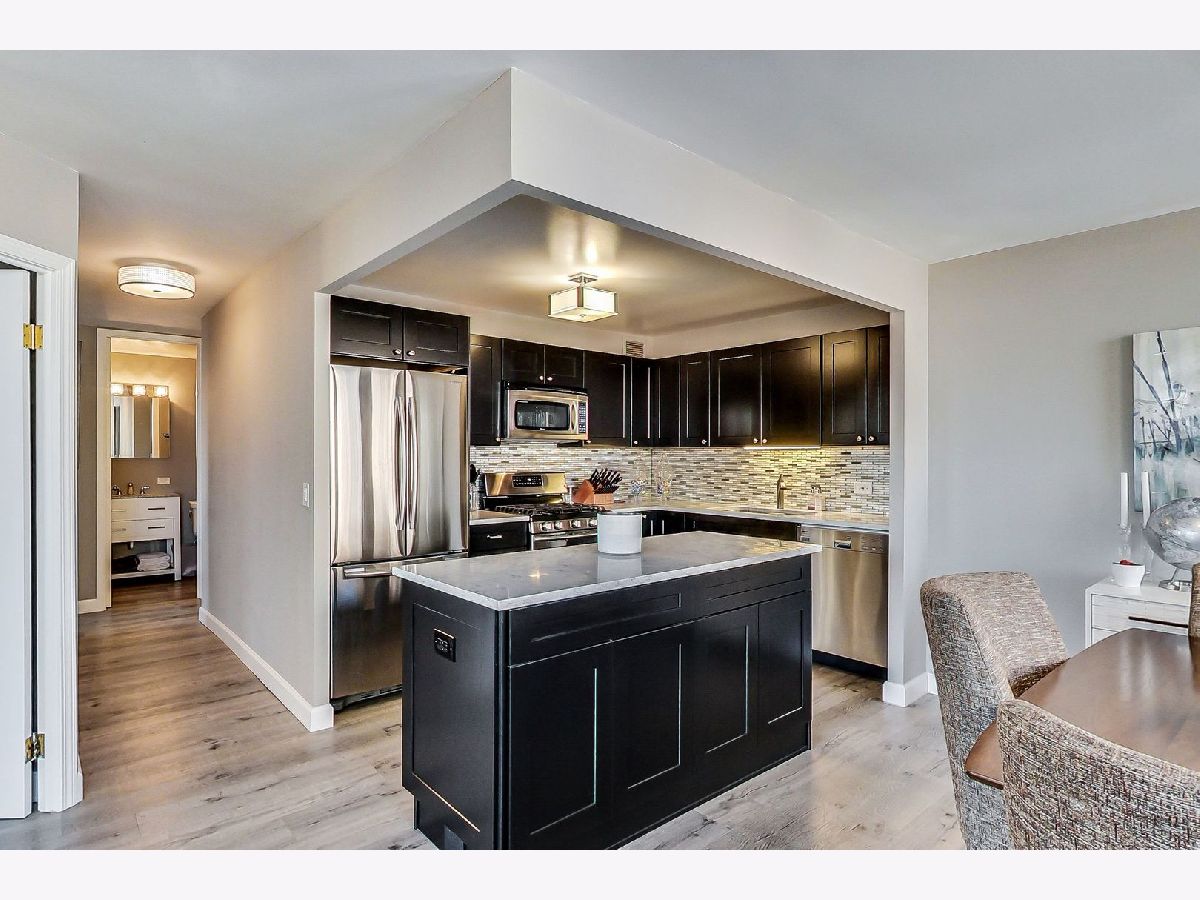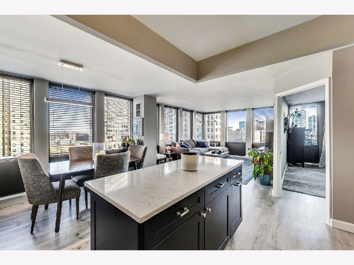 A beautiful, fully renovated (nearly $63,000 in 2016), corner unit! 2 bed, 1.5 bath condo with sensational skyline views! Walk into an open concept space with engineered hardwood floors throughout and abundant natural light. Flow into a beautiful kitchen boasting stainless steel appliances, quartz counter tops, a large island and a sleek, modern back splash. Relax after a long day's work in spacious bedrooms with custom California closets featuring built in shelving. A rare find with in-unit, stackable washer/dryer. 1 premium garage space can be purchased separately ($20,000). Investors and owner occupants alike will favor this unit: no rental caps and few pet restrictions. Steps from restaurants, bars, shopping, Lake Michigan and all that Lincoln Park East has to offer! See floor plan and virtual walkthrough for further details.
