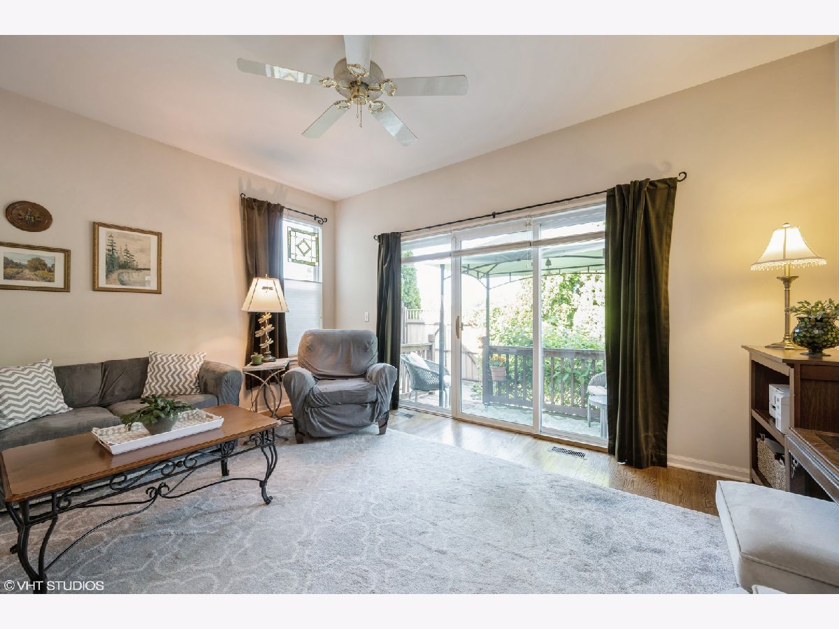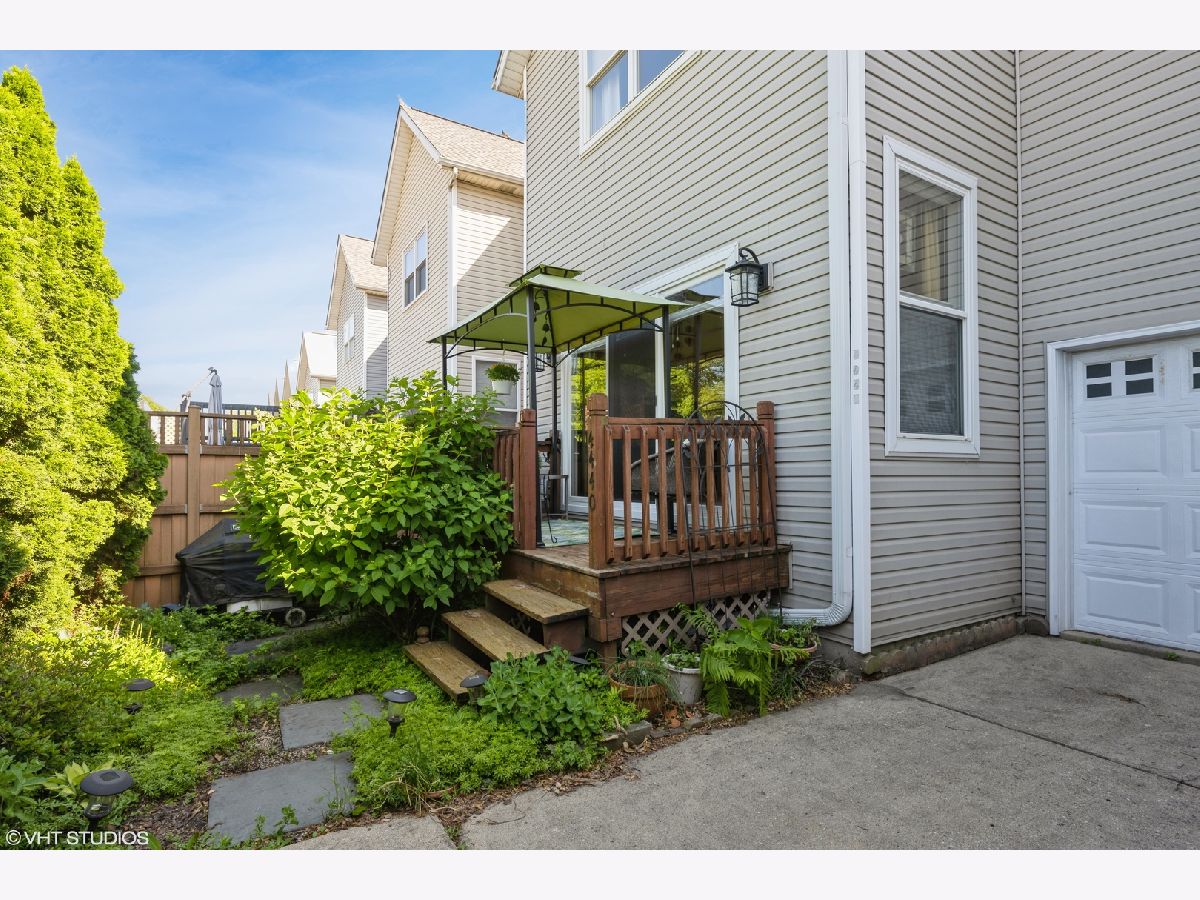 This stunning and sophisticated 3 bed 2.5 bath townhome in the premier pocket of the Terraces of Old Irving Park comes complete with space for a fourth bedroom ensuite ready to be added. This townhome lives like a single family home with over 2000 sq. feet of living space and has been meticulously maintained by its one owner. Situated mid block on a one way street surrounded by lush greenery, this home offers privacy and tranquility. Walk up and enjoy the newer (2018) maintenance free composite stairs and deck to enter your new home. You will be delighted by the open airy living room along with a beautiful gas fireplace. The home boasts almost 9' ceilings throughout making this amazing space feel quite grand. The first floor has a powder room, dining area, beautiful kitchen with white cabinetry featuring solid lower cabinets with custom pull out drawers and beautiful showcase glass cabinets above. The kitchen faces the family room area which leads to your private deck. The composite fence in the back area of the home gives you total privacy. The upstairs has three large bedrooms, one of which has a wall of beautiful built-in cabinetry, and 2 full baths including a primary suite that is grand in every way. The primary bedroom features an impressive cathedral ceiling, space large enough for a king size bed, a huge walk-in closet and massive en-suite bathroom complete with tub and shower. While natural light flows in this home, the primary bedroom is a respite where your Graber black out shades ensure you can sleep in. In fact, the home has Graber shades throughout. The lower level is as impressive with new flooring in the main family room area, a den/flex space which is currently being used as a workout room, mechanical room and a large storage area in the back which has been roughed out for a fourth bedroom including additional plumbing for another en-suite set up. This home has unparalleled storage space throughout with large closets in almost every room of the home. This home has it all, from low assessments to a new roof and gutters (2021) and a newer Furnace (2015) so you can enjoy carefree living. Enjoy a full sized washer and dryer in your home, plus, the attached one car garage means you never ever brave the Chicago elements again. This private tucked away subdivision of the city offers a nature trail, basketball and tennis courts and is near parks, restaurants, shops and public transportation. You won't want to miss this rare opportunity to own this phenomenal Old Irving Park home!