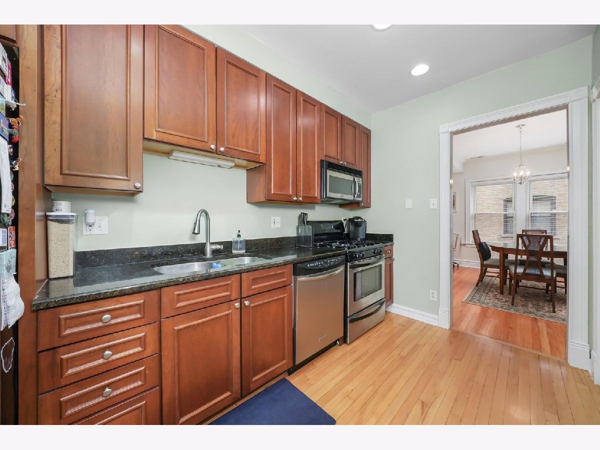 Welcome to 4446 N Wolcott Ave Unit 2B, a beautifully updated and meticulously maintained 1 bed+dining room/1 bath condo in the heart of Ravenswood. This sunny south facing inviting residence offers a perfect blend of modern amenities and classic charm. As you step inside, you'll be greeted by a bright and spacious living room and separate dining room boasting hardwood floors and large windows that flood the space with natural light. The well-appointed kitchen features granite countertops, stainless steel appliances, and ample cabinet space for all your culinary needs. Step outside to your large private deck, or access through the separate stairwell, perfect for enjoying your morning coffee or evening sunsets. With in-unit laundry, extra storage and central heating and cooling, this home checks all the boxes. Conveniently located just steps away from the Montrose Brown Line and with close proximity to Metra, parks, restaurants, cafes, boutiques and more. Don't miss the opportunity to make 4446 N Wolcott Ave Unit 2B your new home. Schedule a showing today and experience city living at its best!